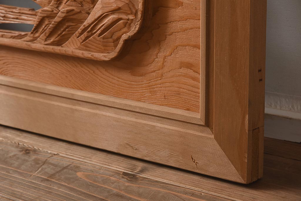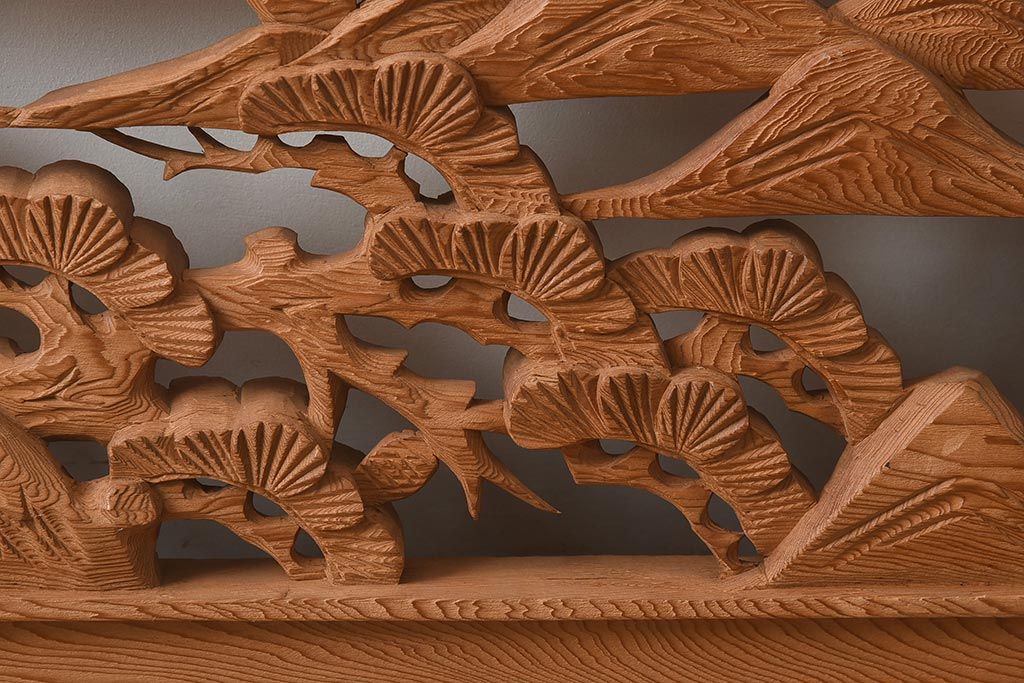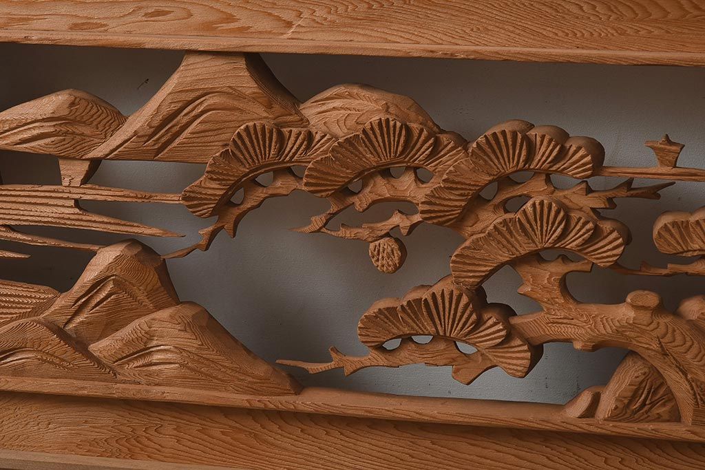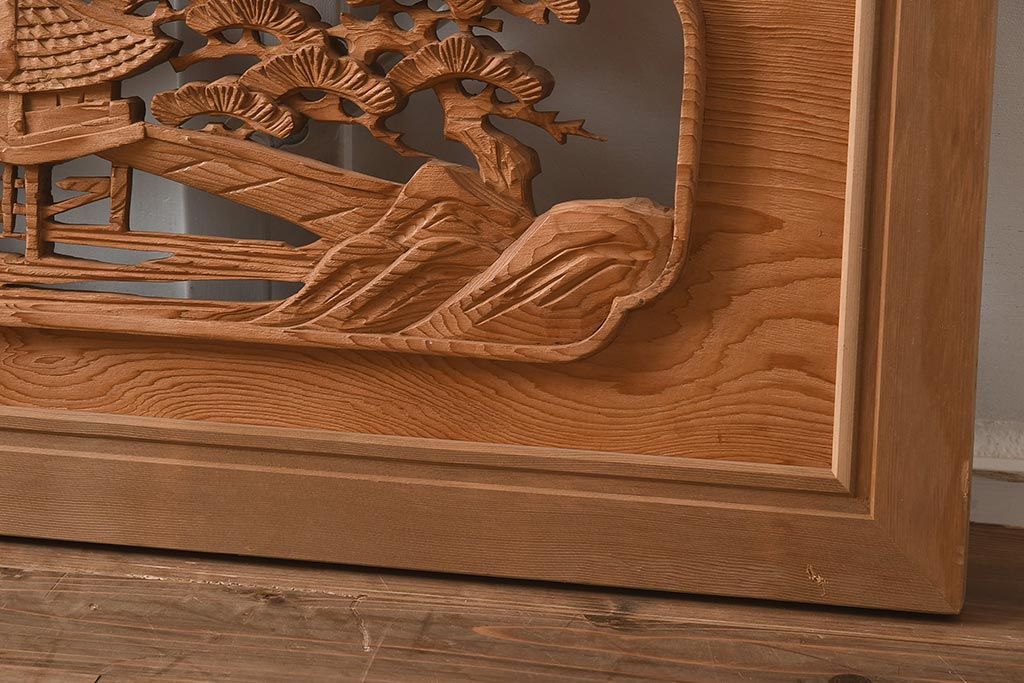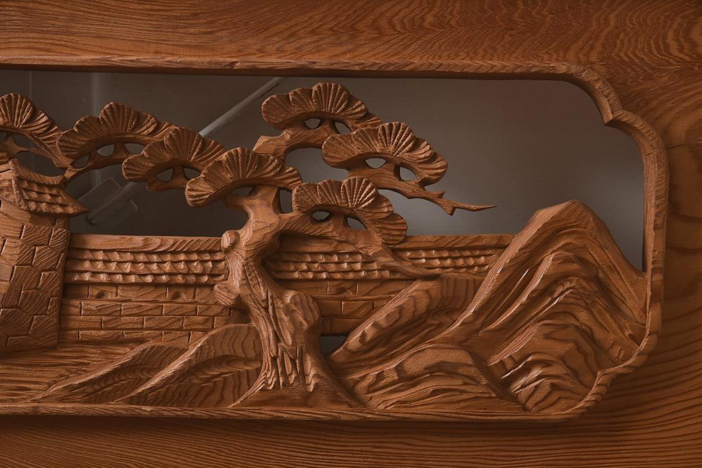 ビンテージ家具 昭和中期 近江八景 情緒溢れる彫刻欄間(明り取り、明かり取り、ガラス無し)(R-040657)