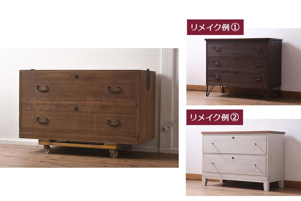 シンプルで素朴な作りが味わい深い桐箪笥です。