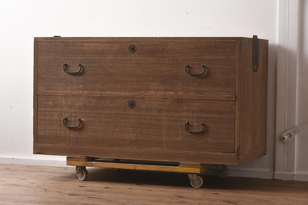 和箪笥> 衣装箪笥 > レトロ家具 昭和中期 桐材 シンプルで素朴な箪笥2段(ローボード、テレビ台、チェスト、引き出し、桐箪笥、桐たんす)(R-040300)
