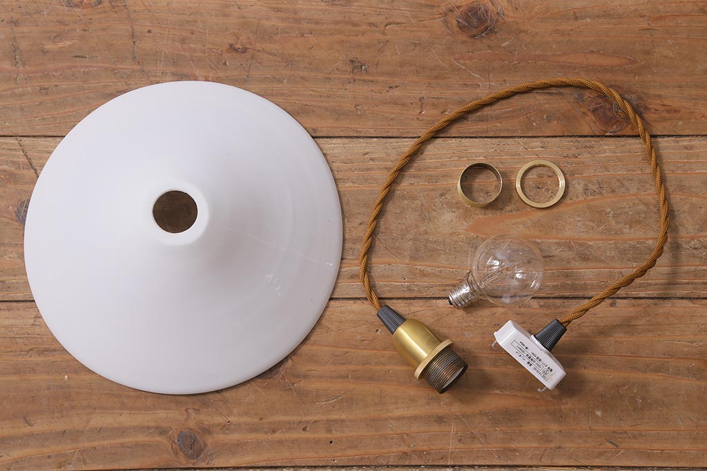 アンティーク照明 シンプルなデザインが取り入れやすいミルクガラスのペンダントライト(天井照明、シェード)(R-040691)