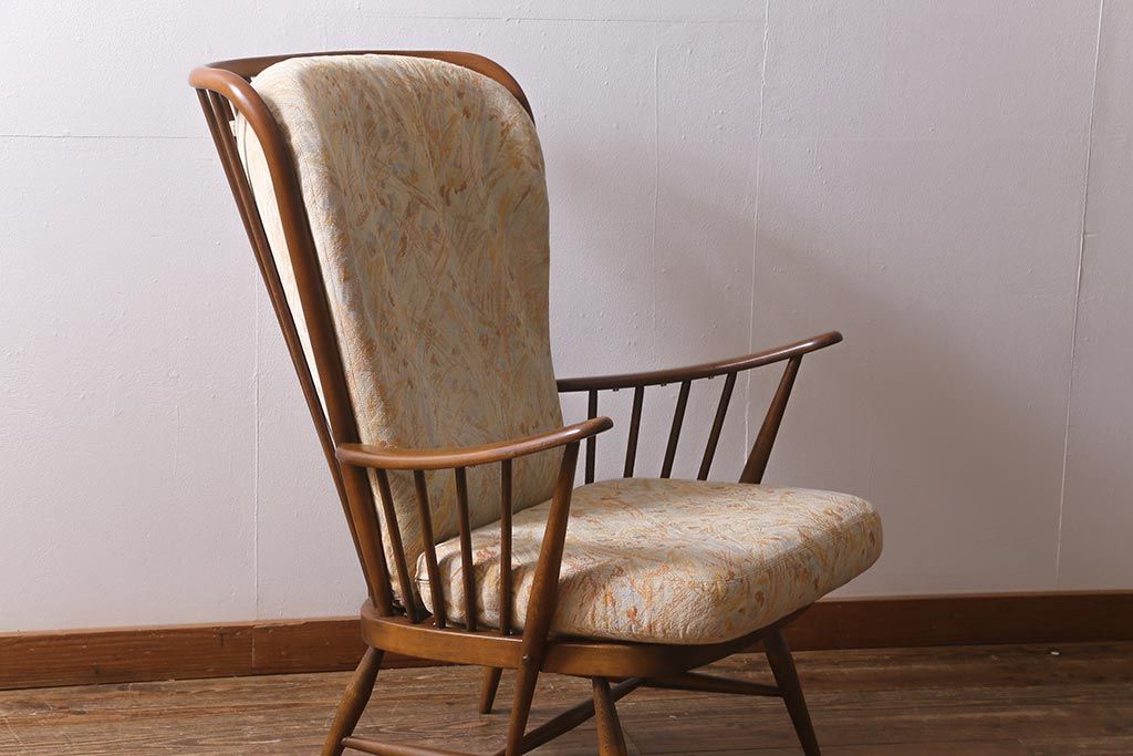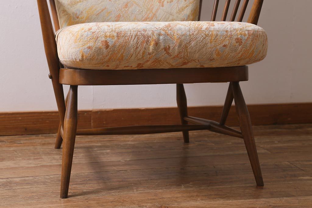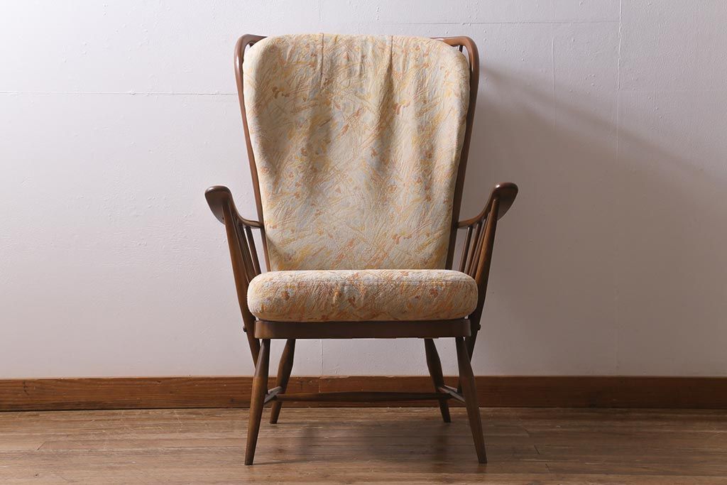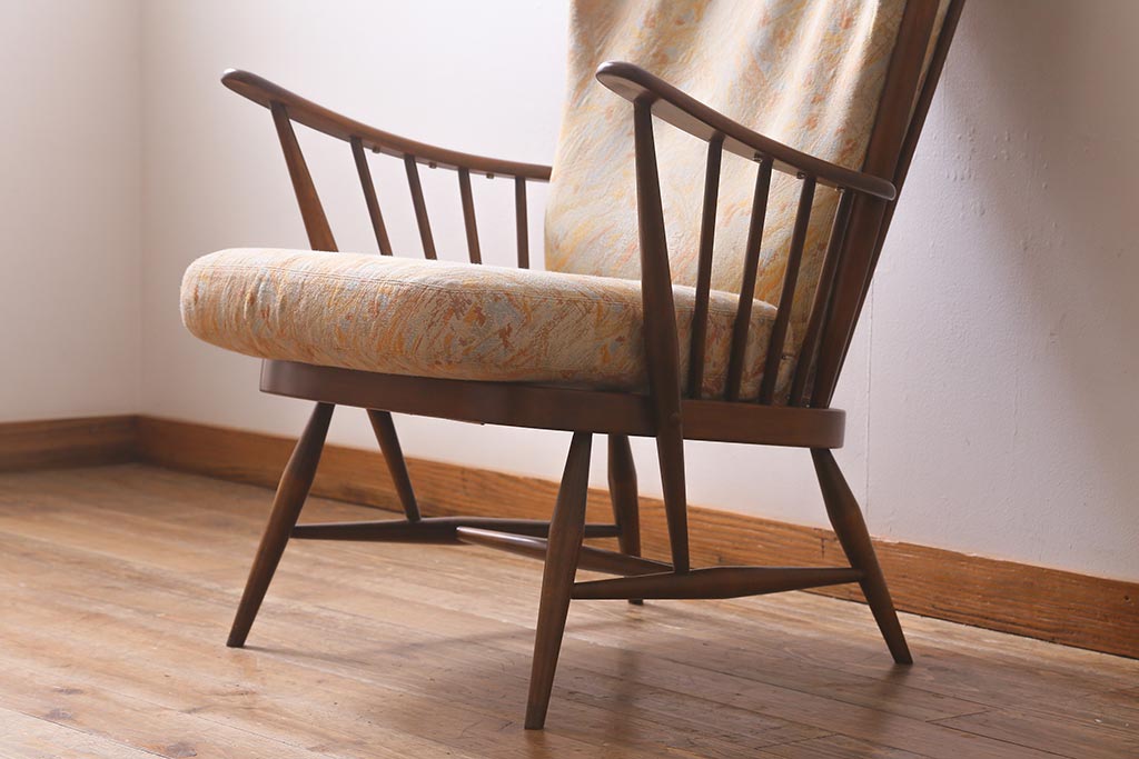 椅子・ベンチ> アームチェア > ヴィンテージ家具 ERCOL(アーコール) エバーグリーン エレガントな雰囲気漂う1人掛けイージーチェア(ラウンジチェア、アームチェア、椅子、ソファ、ビンテージ)(R-040772)