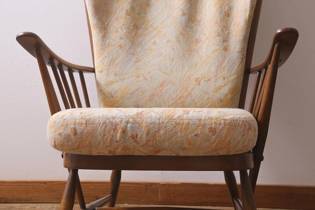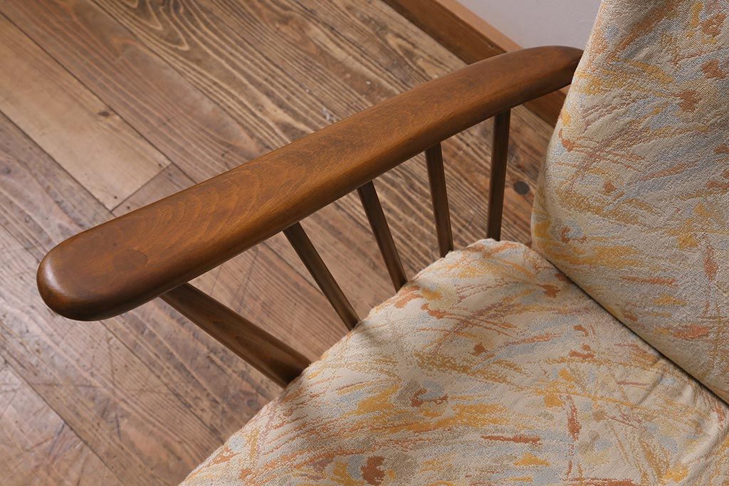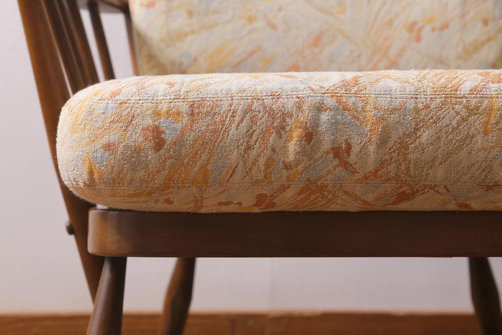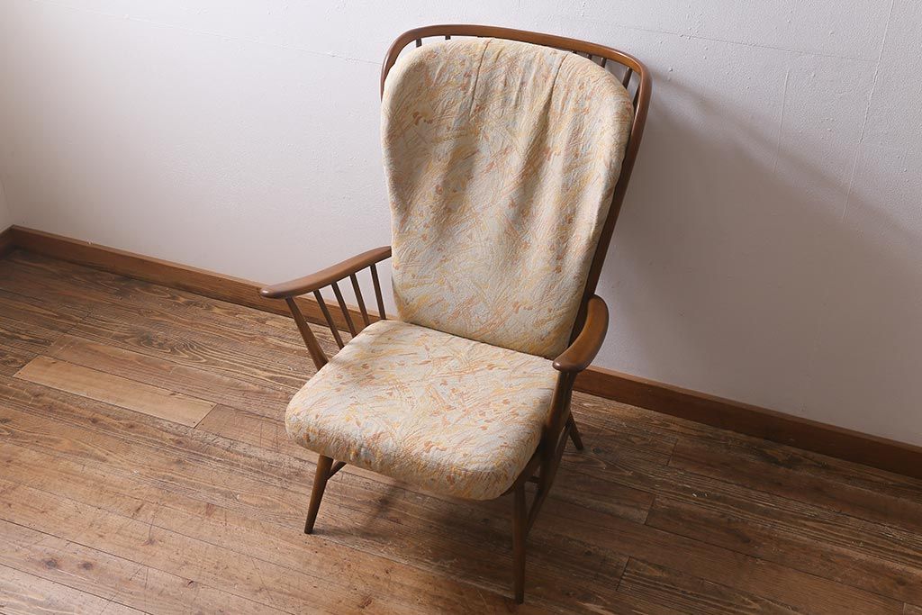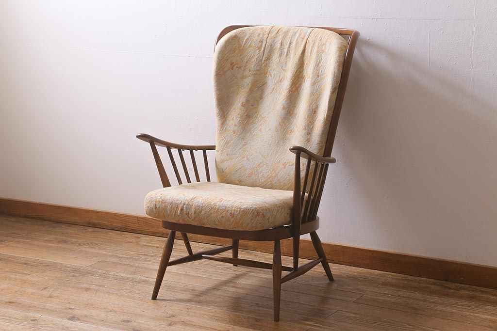 椅子・ベンチ> アームチェア > ヴィンテージ家具 ERCOL(アーコール) エバーグリーン エレガントな雰囲気漂う1人掛けイージーチェア(ラウンジチェア、アームチェア、椅子、ソファ、ビンテージ)(R-040772)