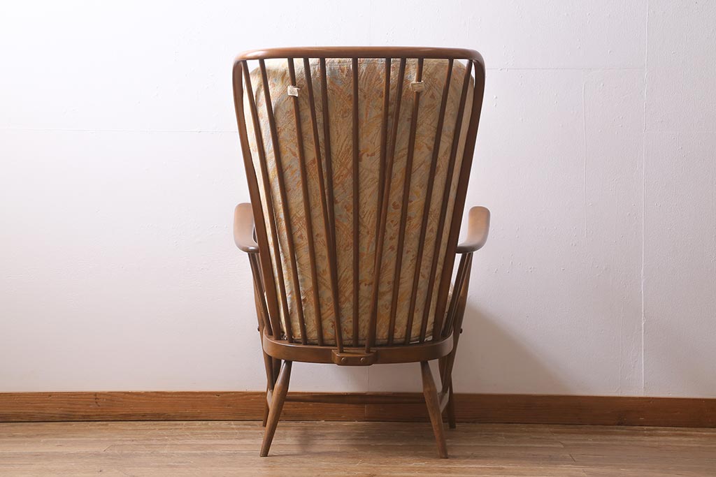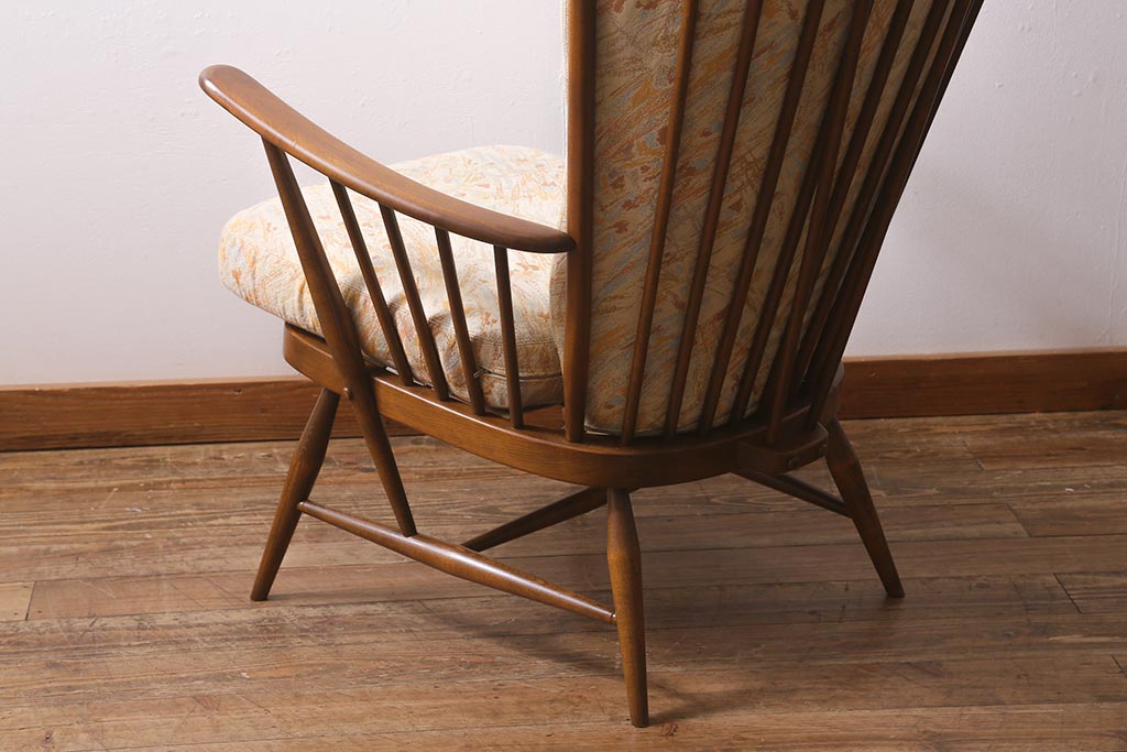 ヴィンテージ家具 ERCOL(アーコール) エバーグリーン エレガントな雰囲気漂う1人掛けイージーチェア(ラウンジチェア、アームチェア、椅子、ソファ、ビンテージ)(R-040772)