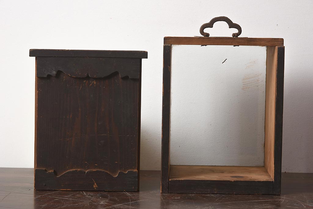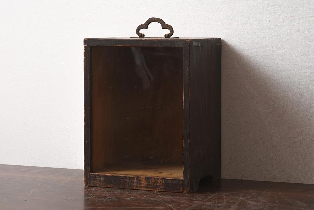 小物収納・トランク > 【簡易リペア限定品】アンティーク建具 持ち手付き レアもの 木味が魅力の小さなショーケース(人形ケース、木箱、ディスプレイ)(R-040715)