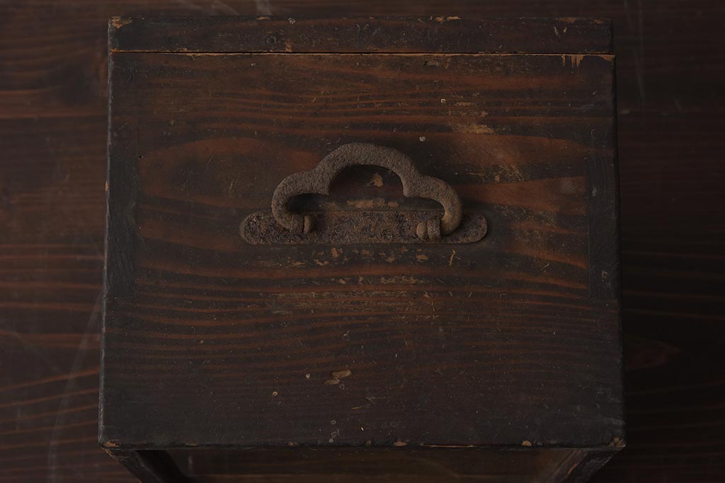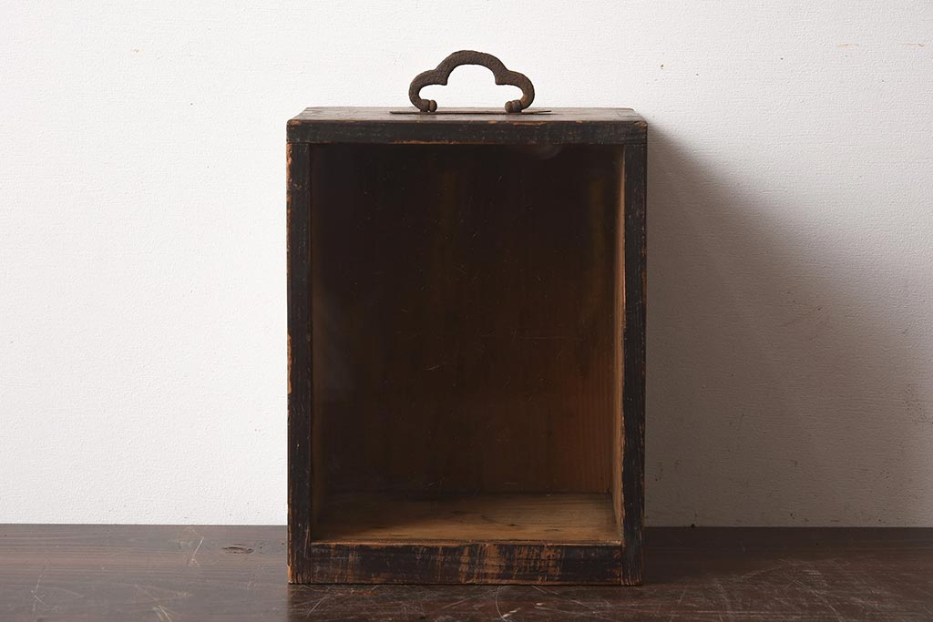 小物収納・トランク> 木箱 > 【簡易リペア限定品】アンティーク建具 持ち手付き レアもの 木味が魅力の小さなショーケース(人形ケース、木箱、ディスプレイ)(R-040715)