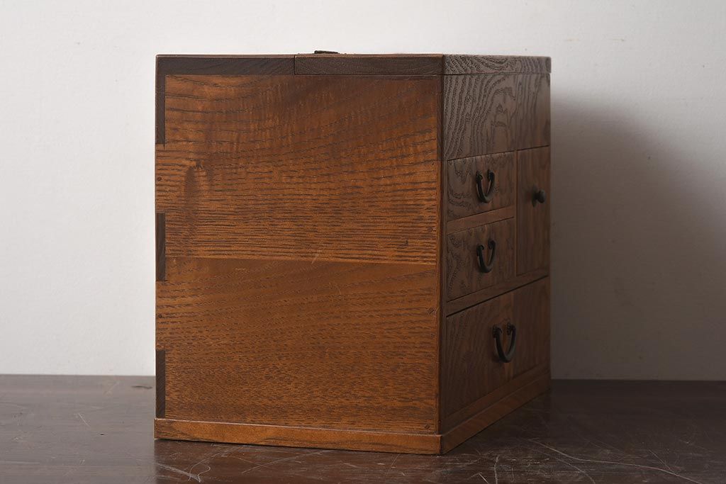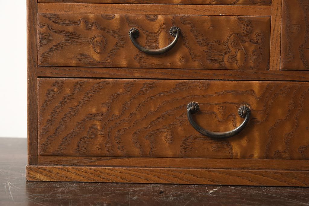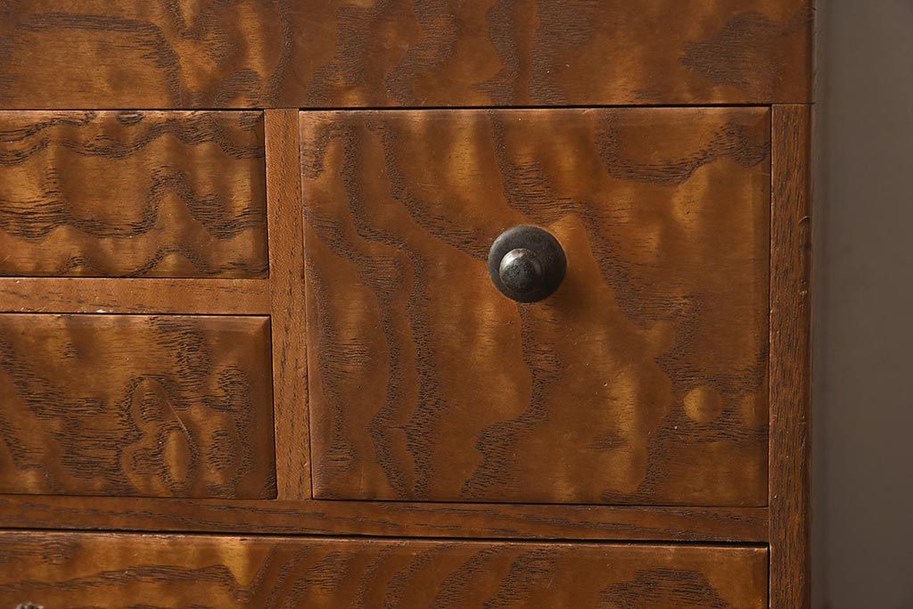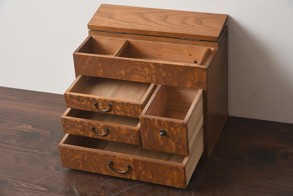 アンティーク家具 タモ材 玉杢が存在感を引き立てる裁縫箱(ソーイングボックス、小引き出し)(R-040718)