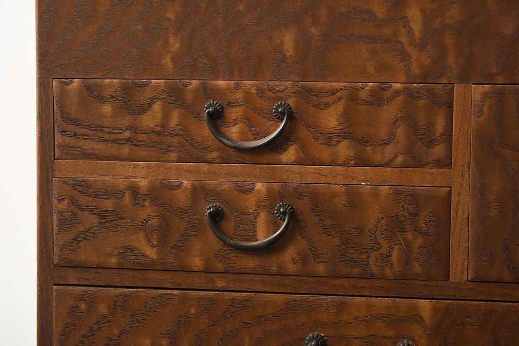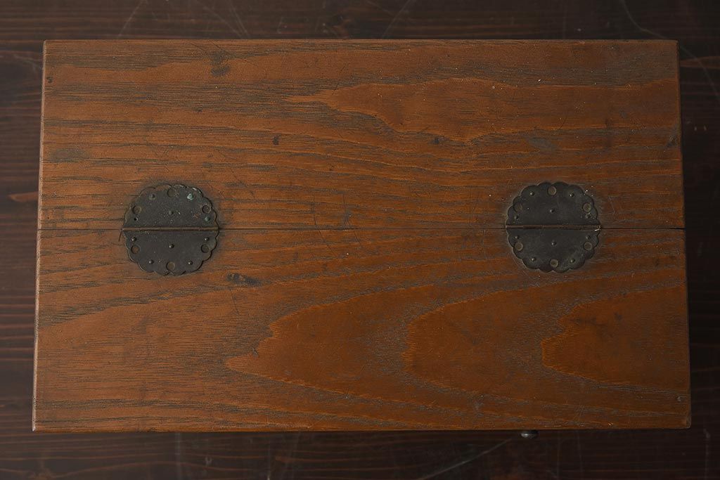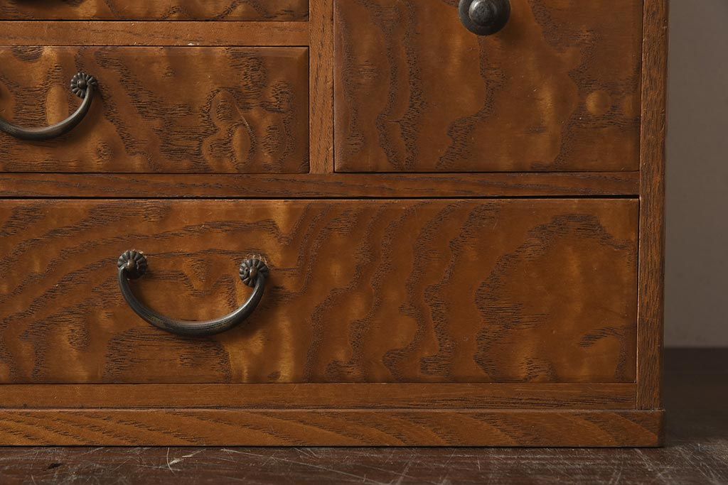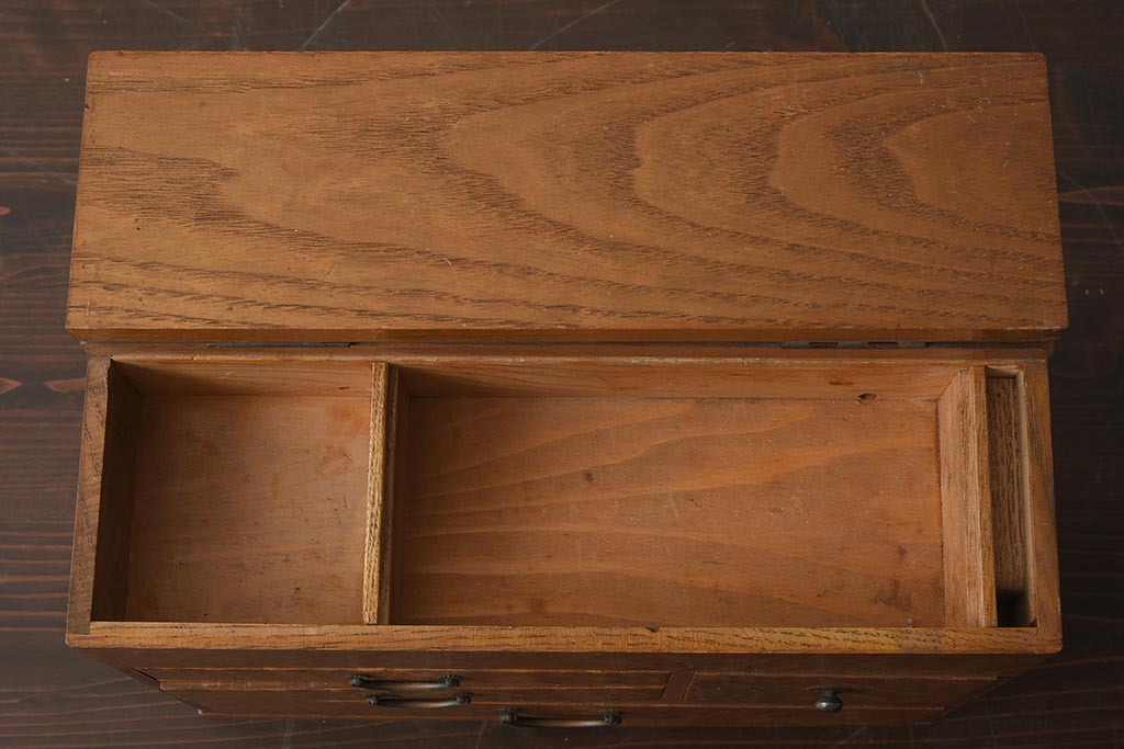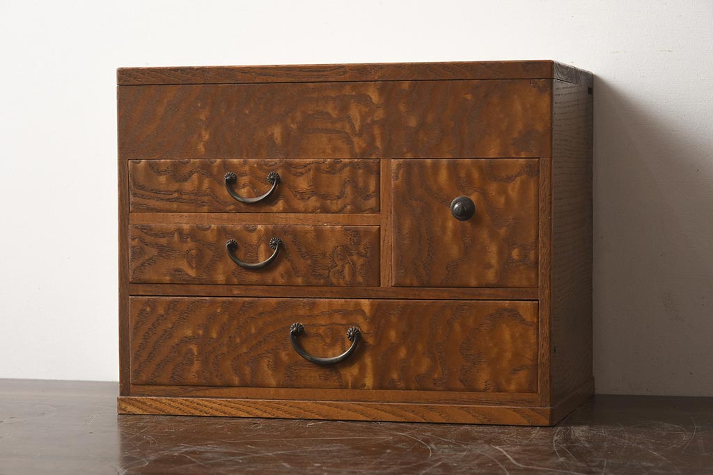 アンティーク家具 タモ材 玉杢が存在感を引き立てる裁縫箱(ソーイングボックス、小引き出し)(R-040718)