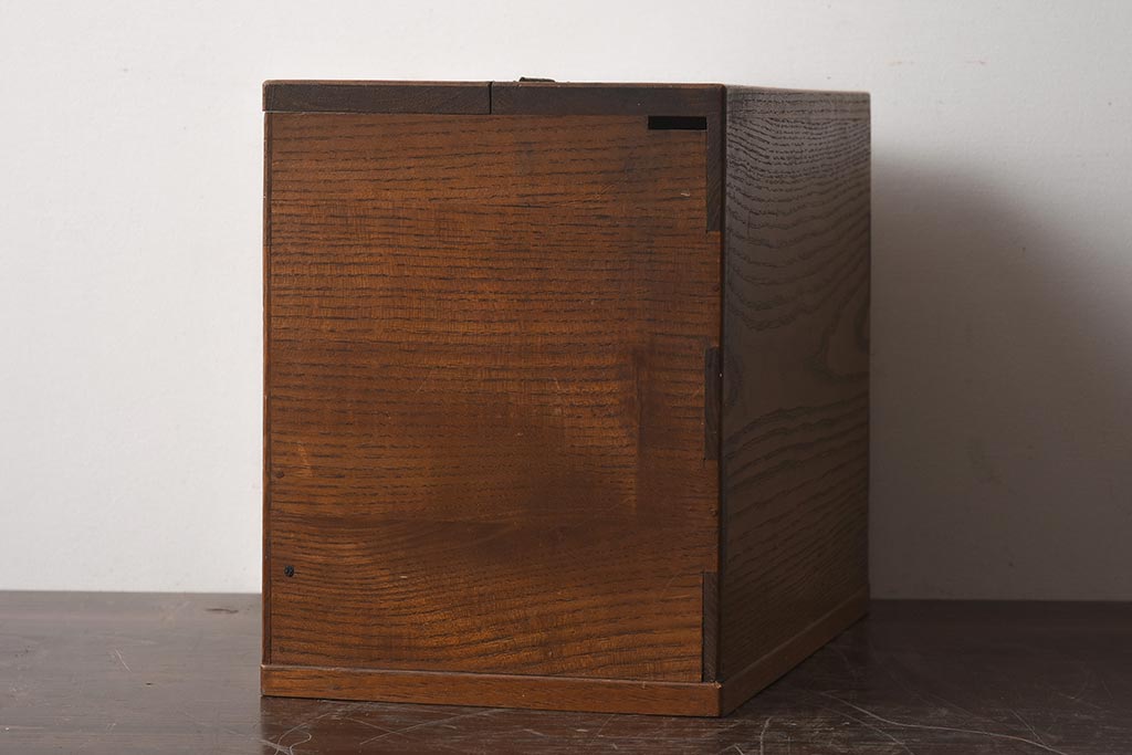 アンティーク家具 タモ材 玉杢が存在感を引き立てる裁縫箱(ソーイングボックス、小引き出し)(R-040718)です。
