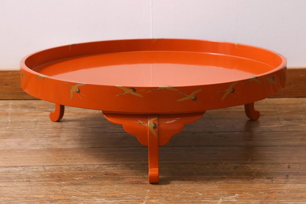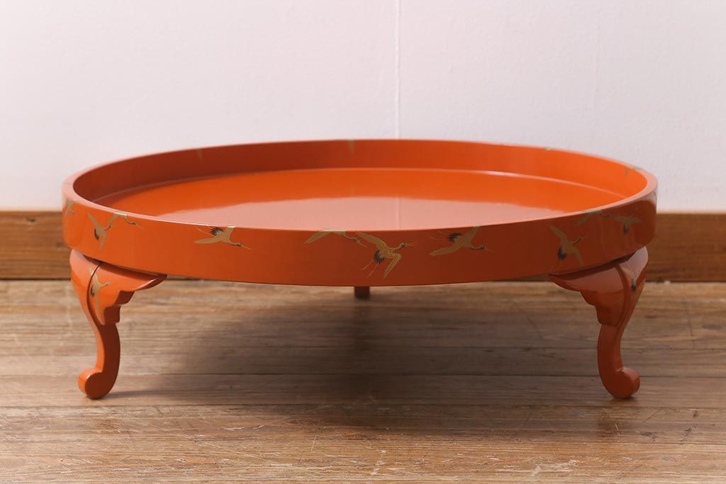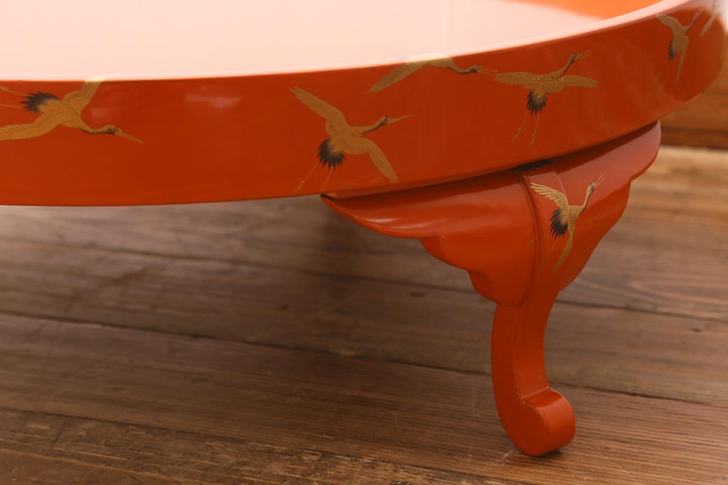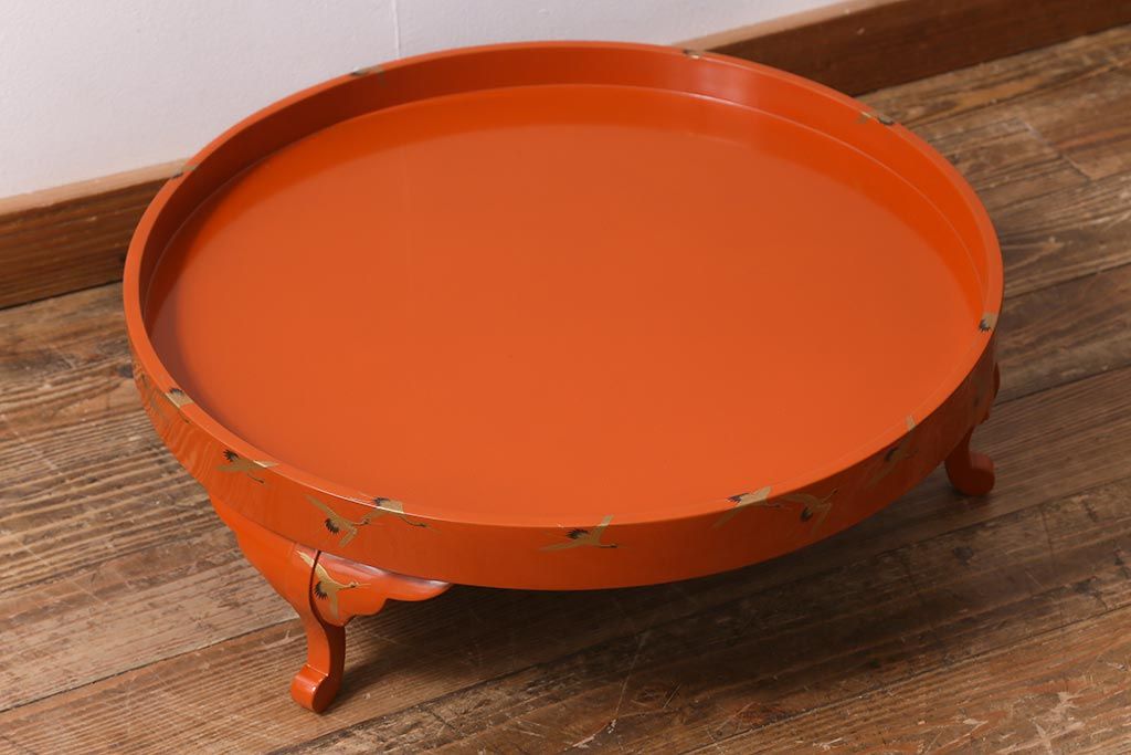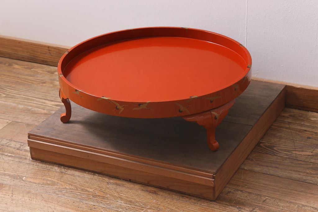 アンティーク雑貨 明治大正 輪島塗 千羽鶴蒔絵丸膳(木製漆器)(R-040132)