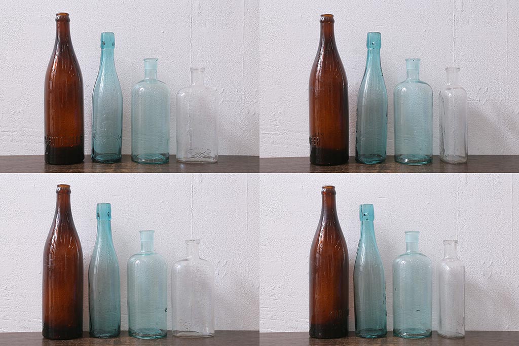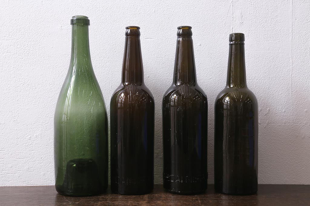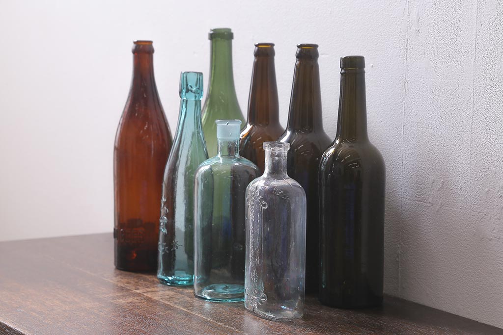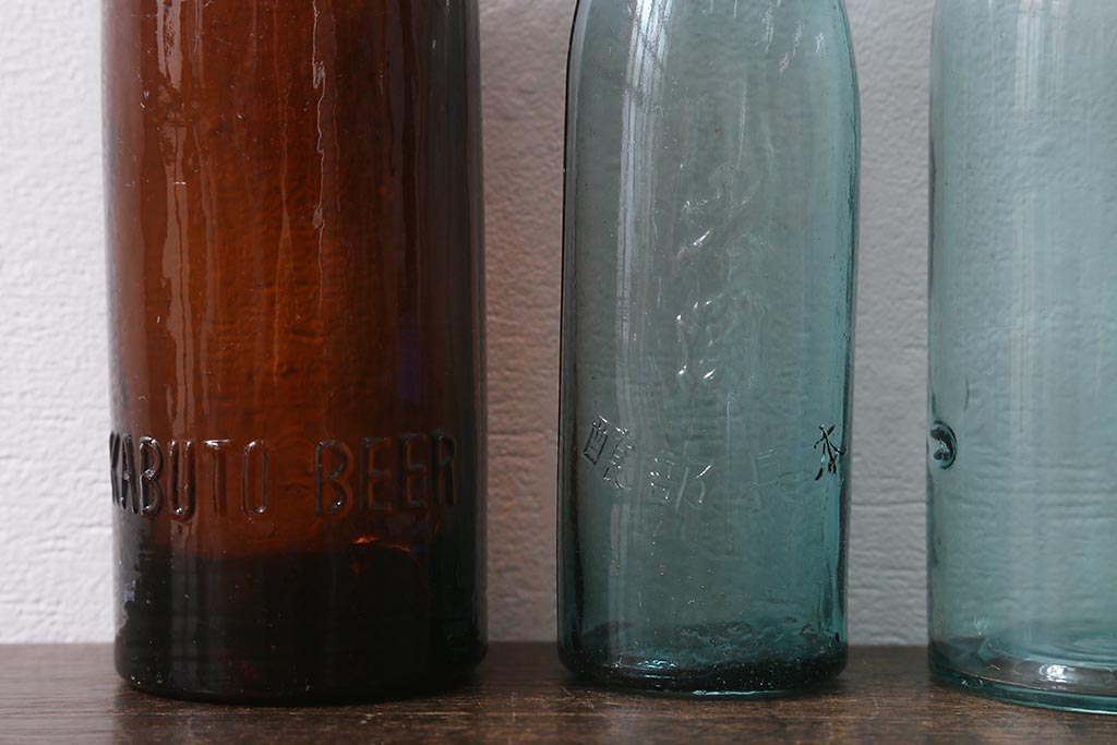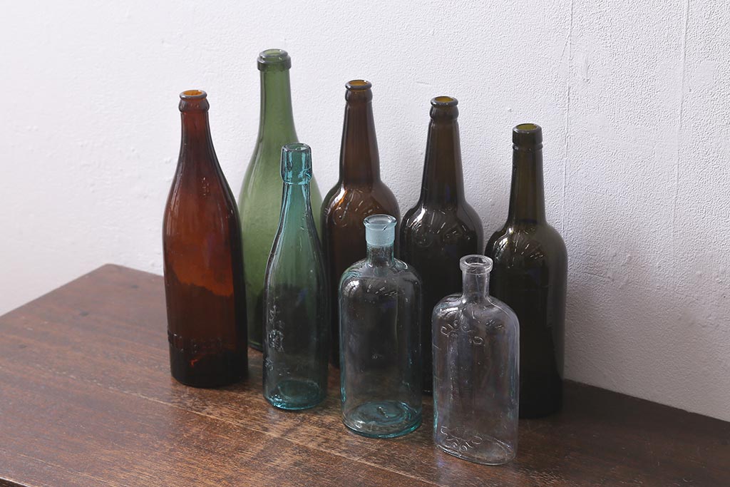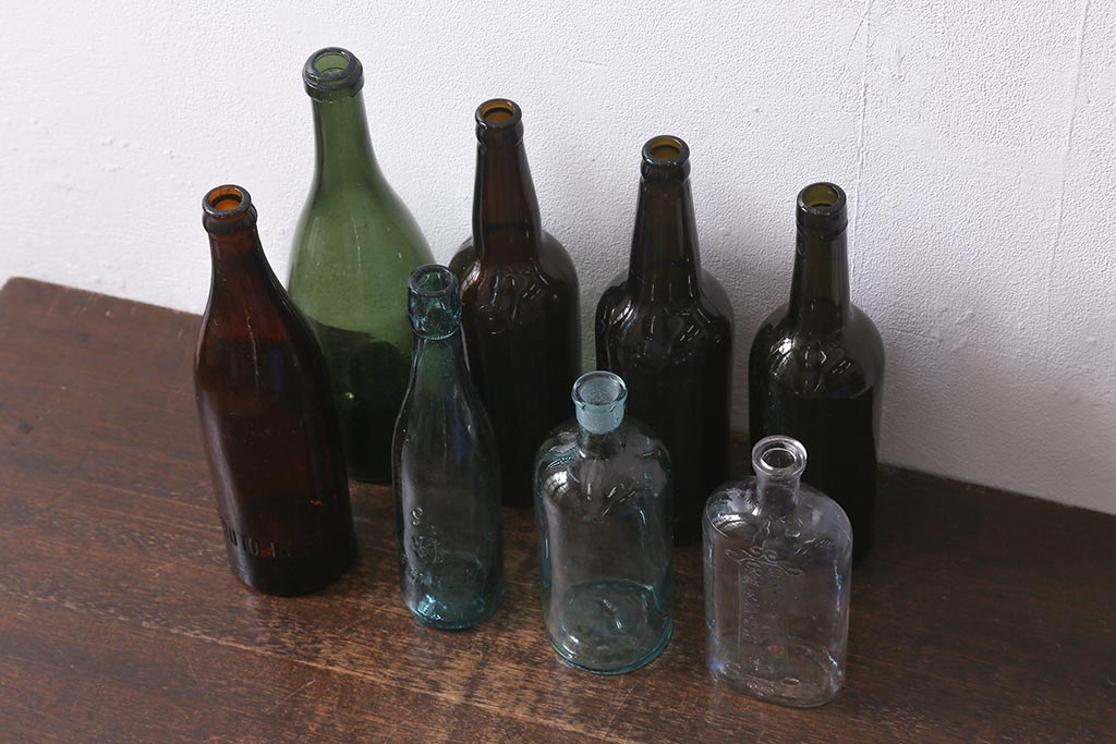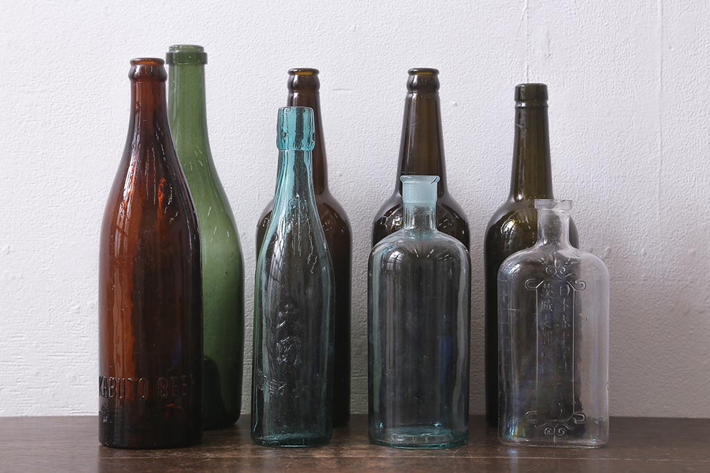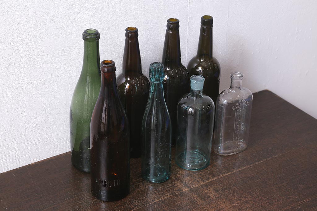 アンティーク雑貨 大正昭和初期 カブトビール 大関赤十字など古いガラス瓶8本(ビン)(R-040557)