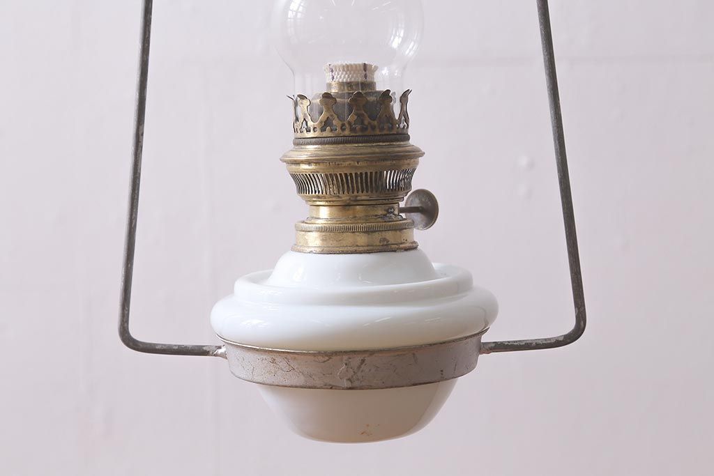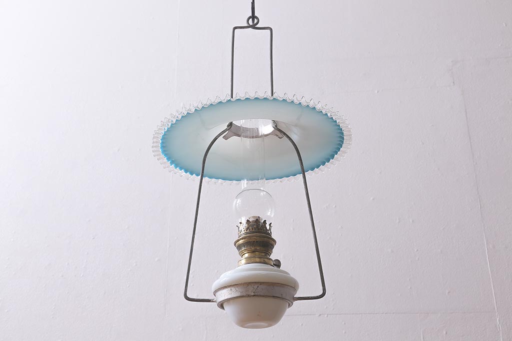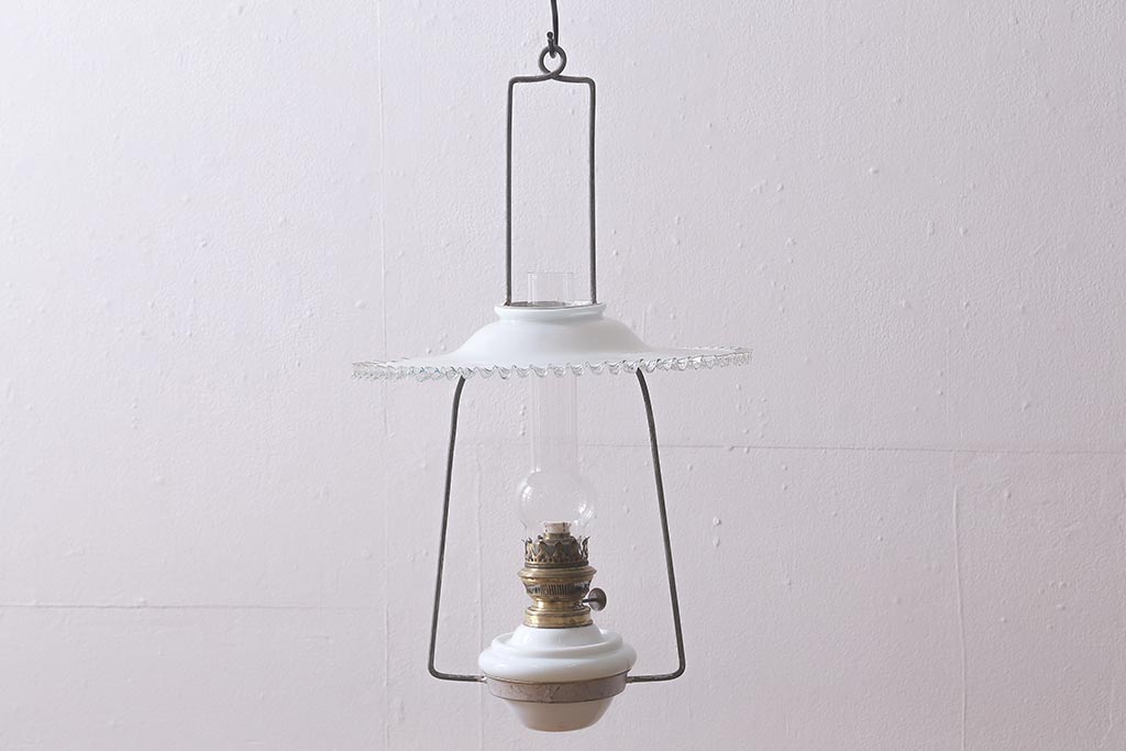 アンティーク雑貨 日本製 ASAHI 巻き芯14番 フリルシェードがおしゃれな吊り下げ式オイルランプ(ランタン、ハンギングランプ)(R-040687)です。