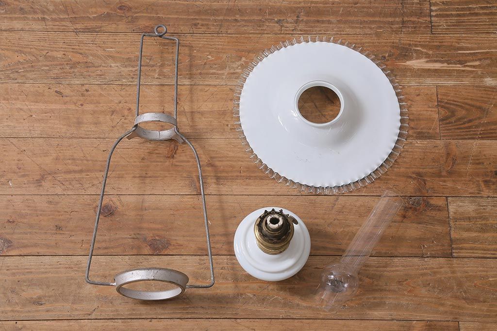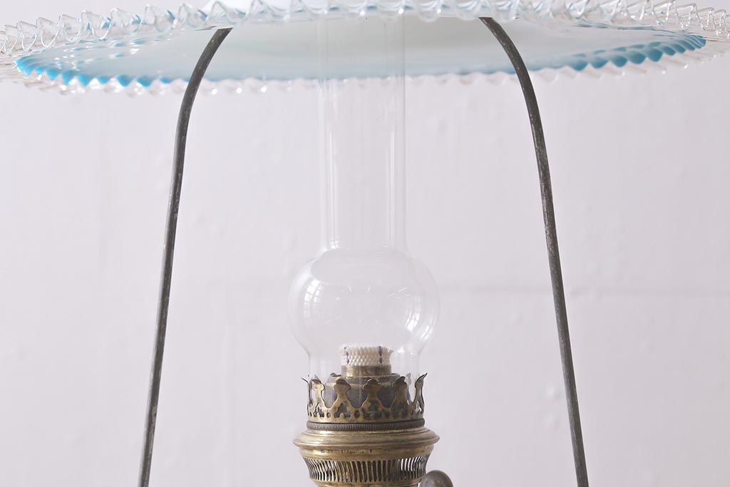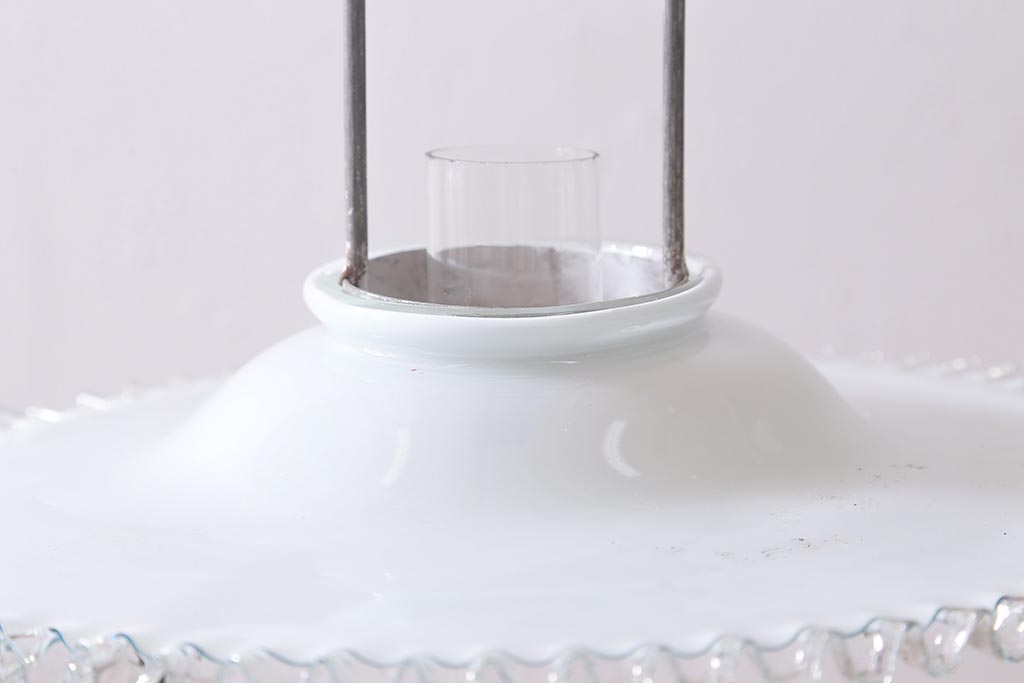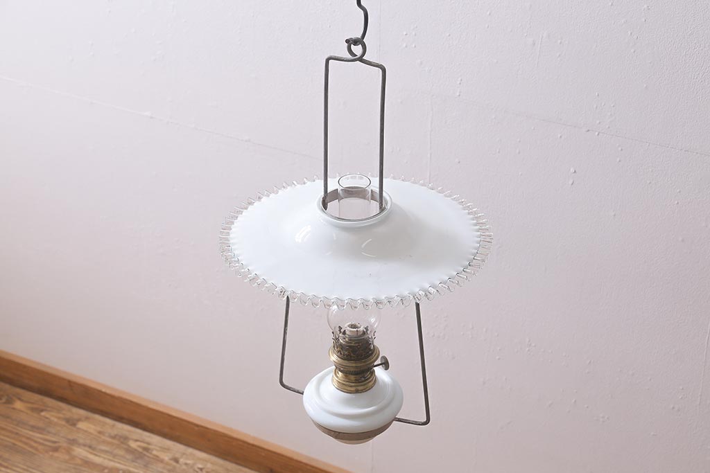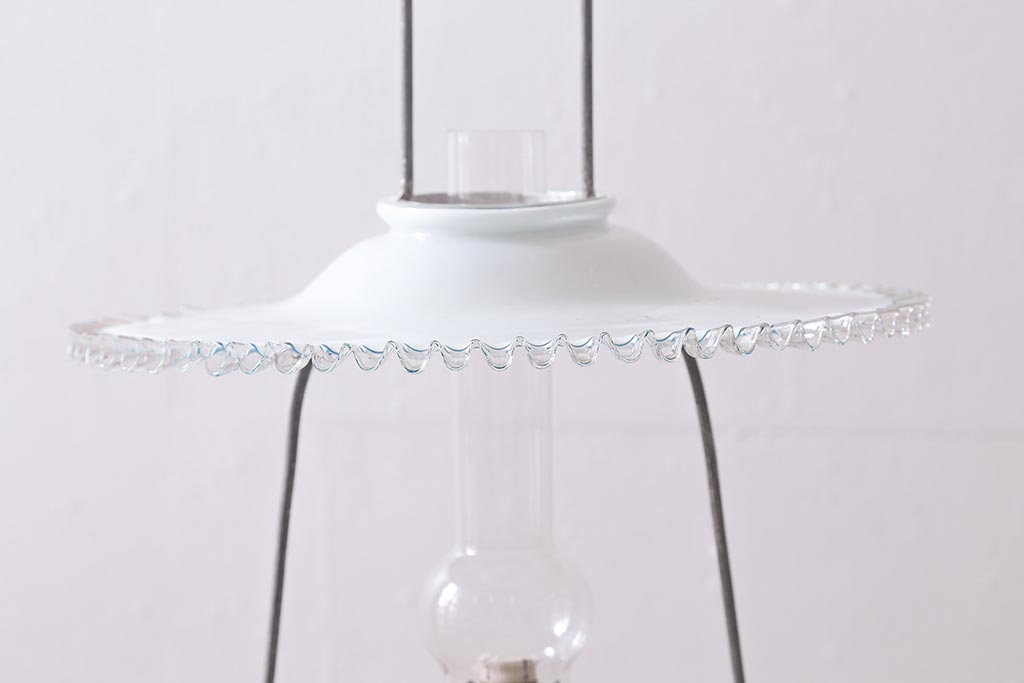 アンティーク雑貨 日本製 ASAHI 巻き芯14番 フリルシェードがおしゃれな吊り下げ式オイルランプ(ランタン、ハンギングランプ)(R-040687)