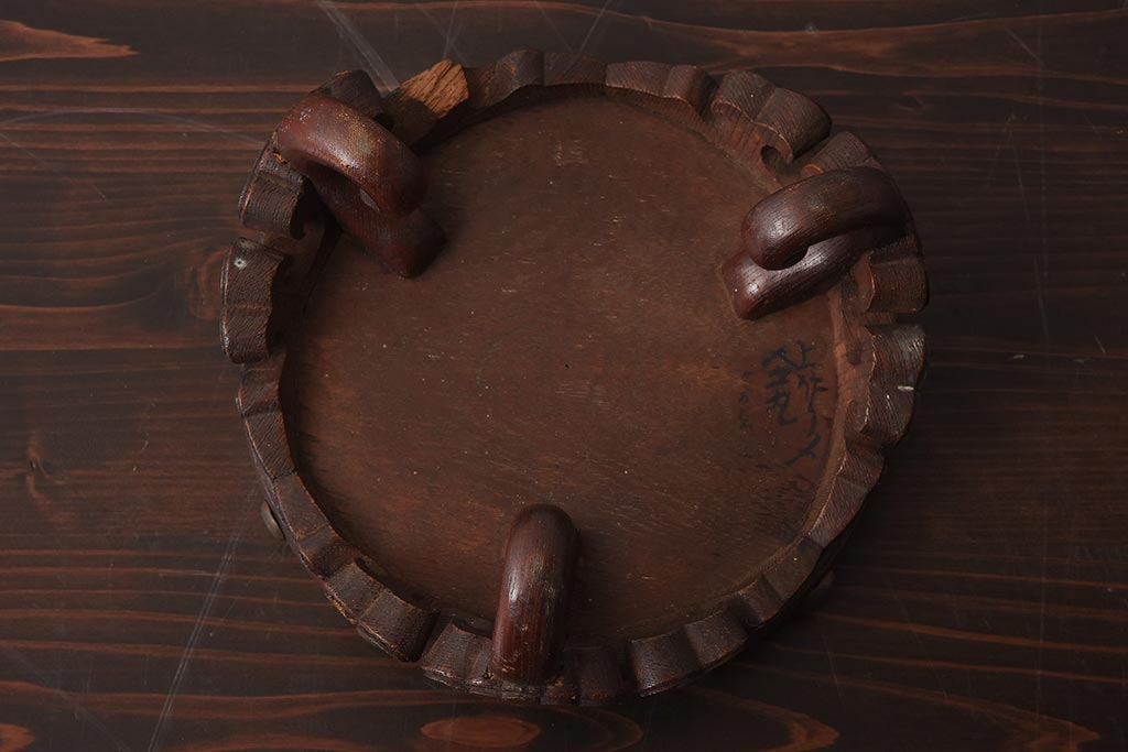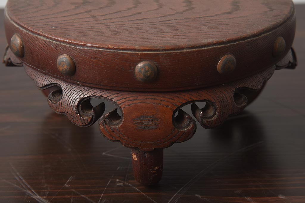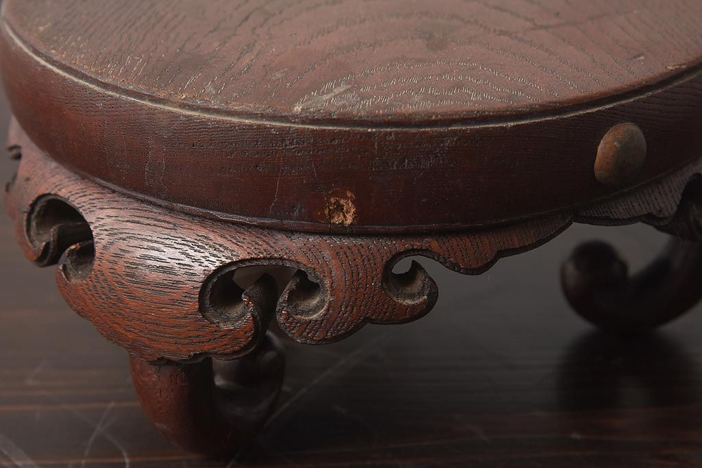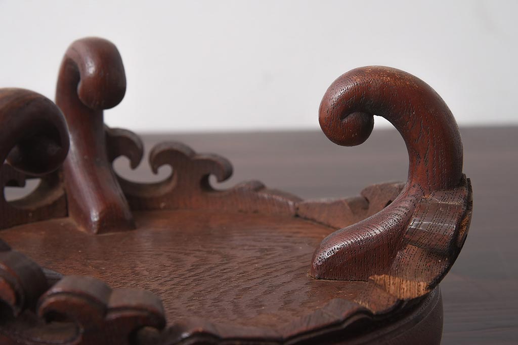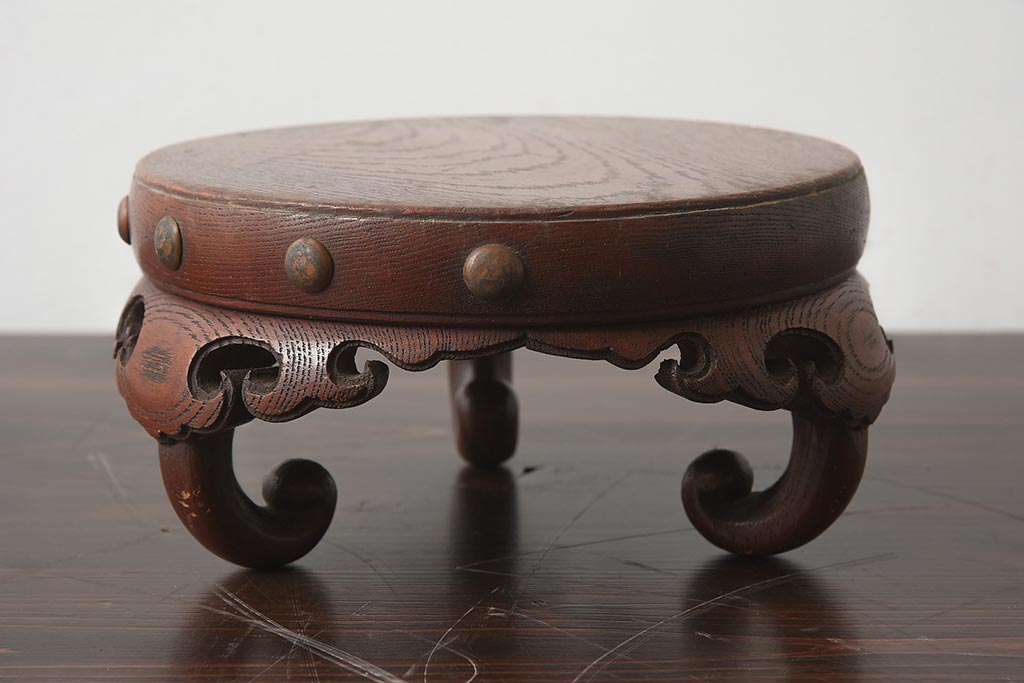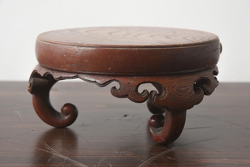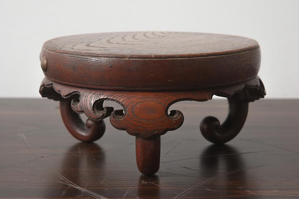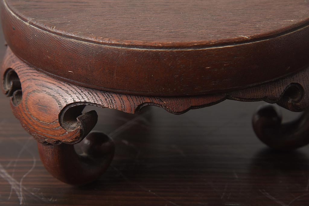 花台・飾り台 > アンティーク雑貨 上手物 総ケヤキ材 彫刻が目を引く丸型の花台(飾り台、盆栽卓)(R-040675)