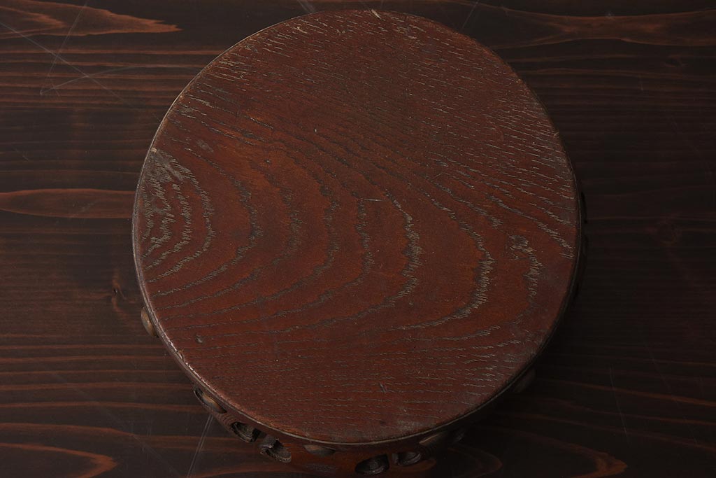 アンティーク雑貨 上手物 総ケヤキ材 彫刻が目を引く丸型の花台(飾り台、盆栽卓)(R-040675)