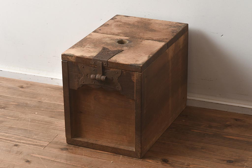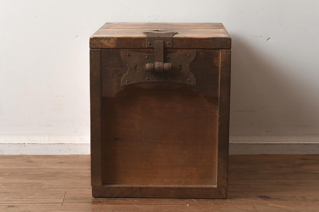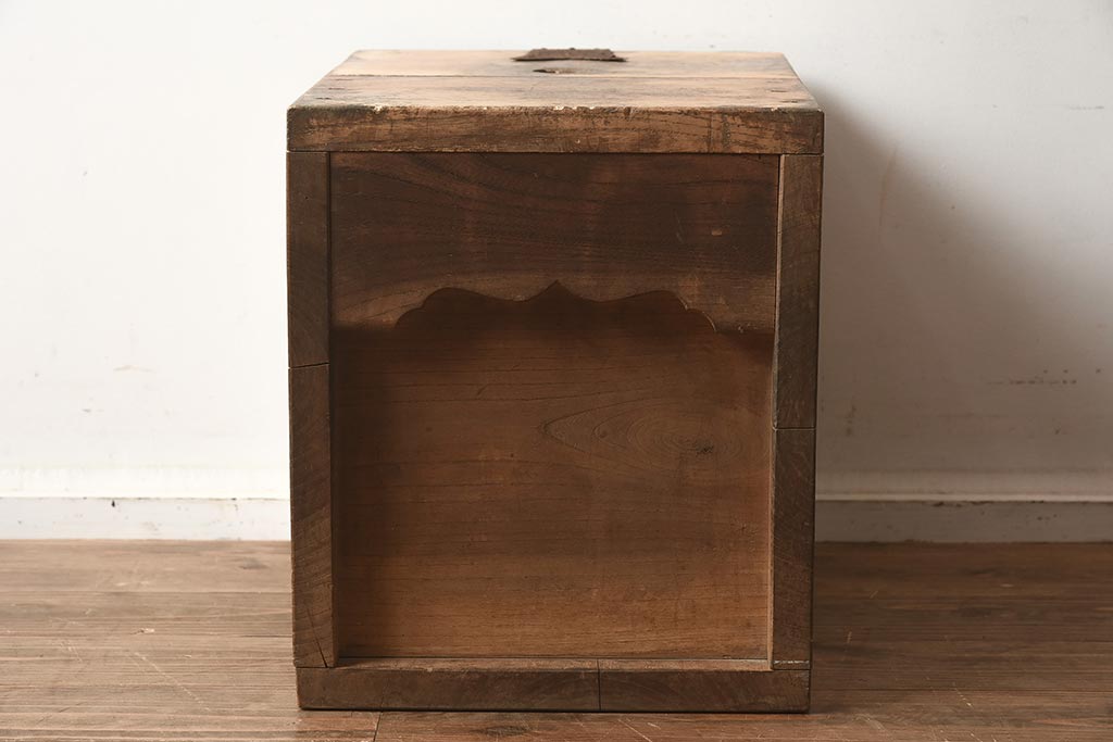 アンティーク雑貨 古民具・骨董 総ケヤキ材 古い質感が味わい深い銭箱(銭函)(R-040671)