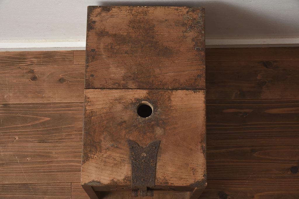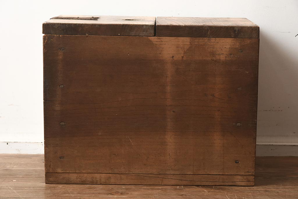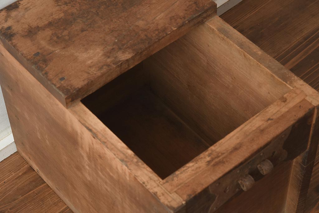古道具・古民具> 銭箱 > アンティーク雑貨 古民具・骨董 総ケヤキ材 古い質感が味わい深い銭箱(銭函)(R-040671)