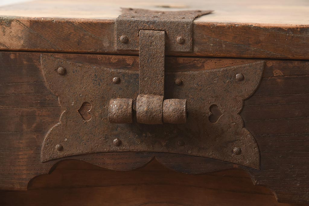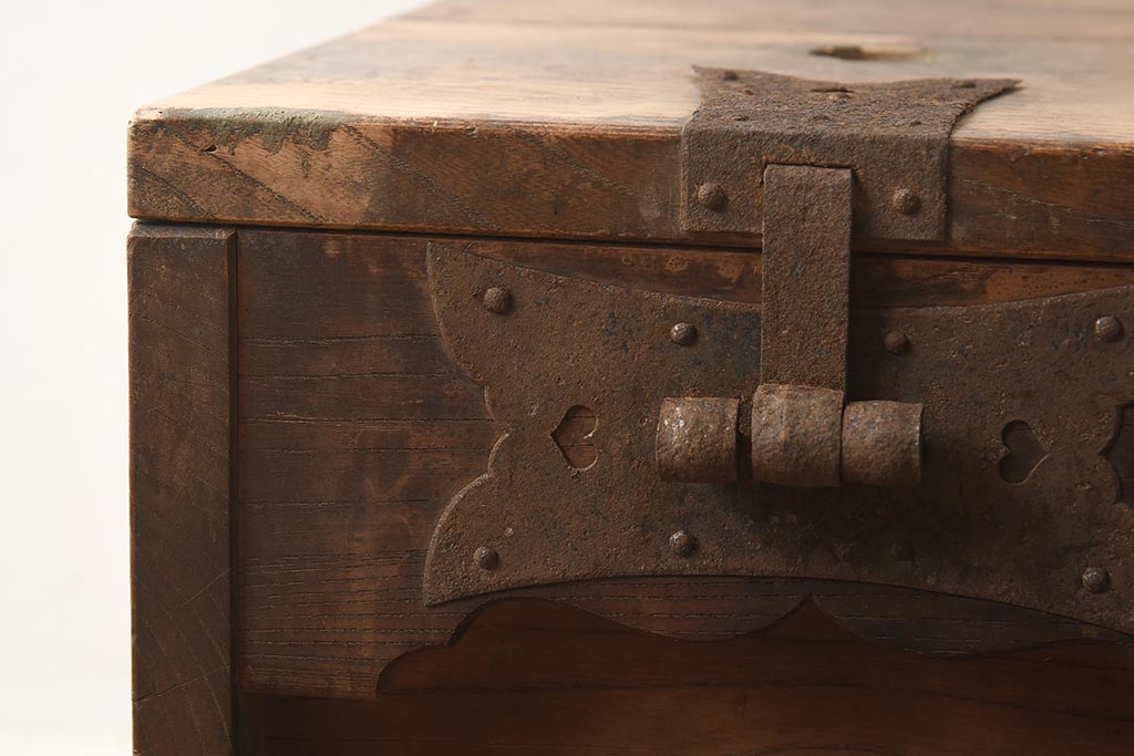 骨董・美術品 > アンティーク雑貨 古民具・骨董 総ケヤキ材 古い質感が味わい深い銭箱(銭函)(R-040671)