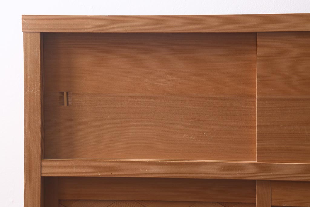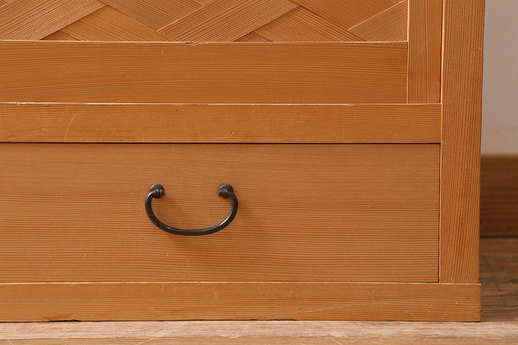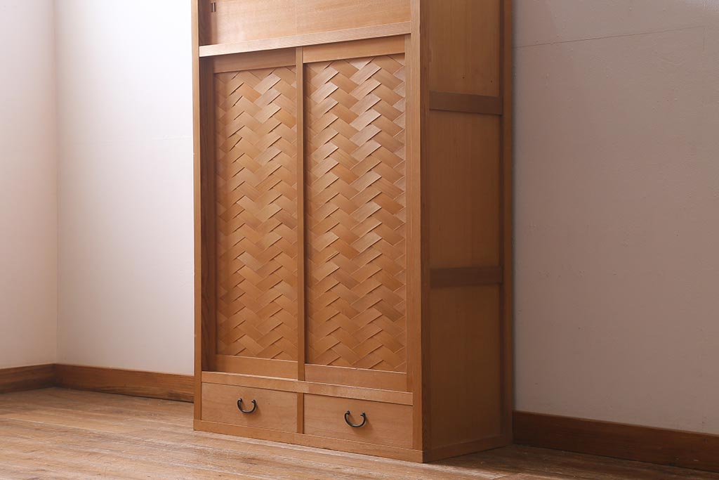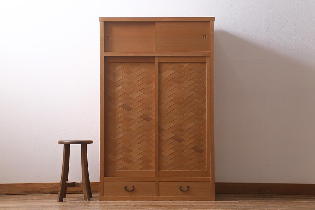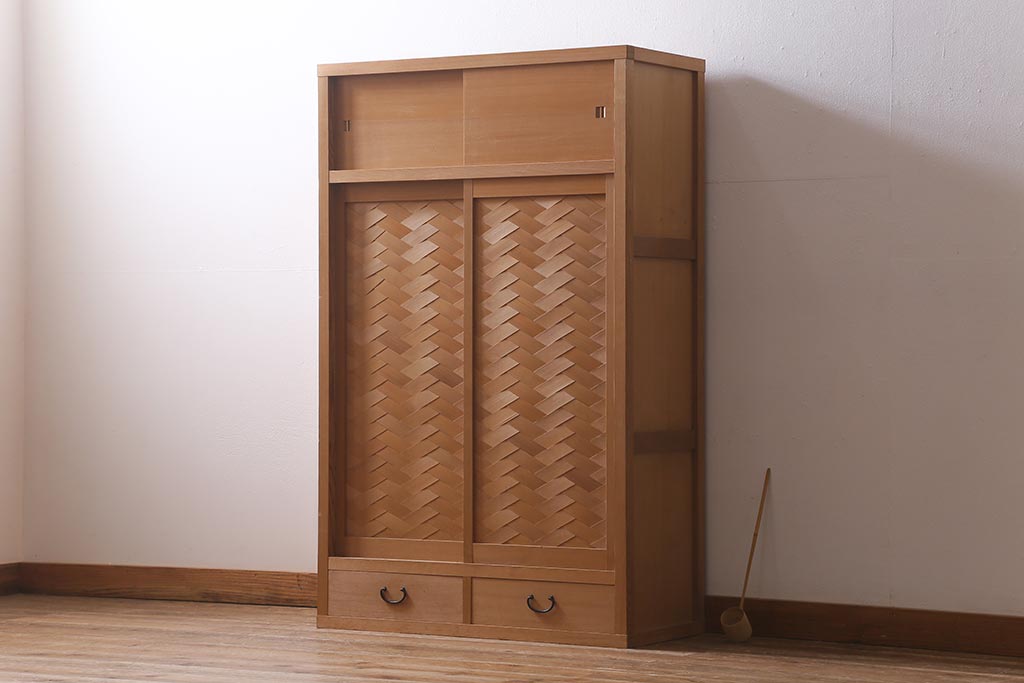 和箪笥> 水屋箪笥 > 中古 民芸家具 柄杓付き 網代編みの引戸が目を引く置水屋(置き水屋、茶水屋、茶道具、戸棚)(R-040699)