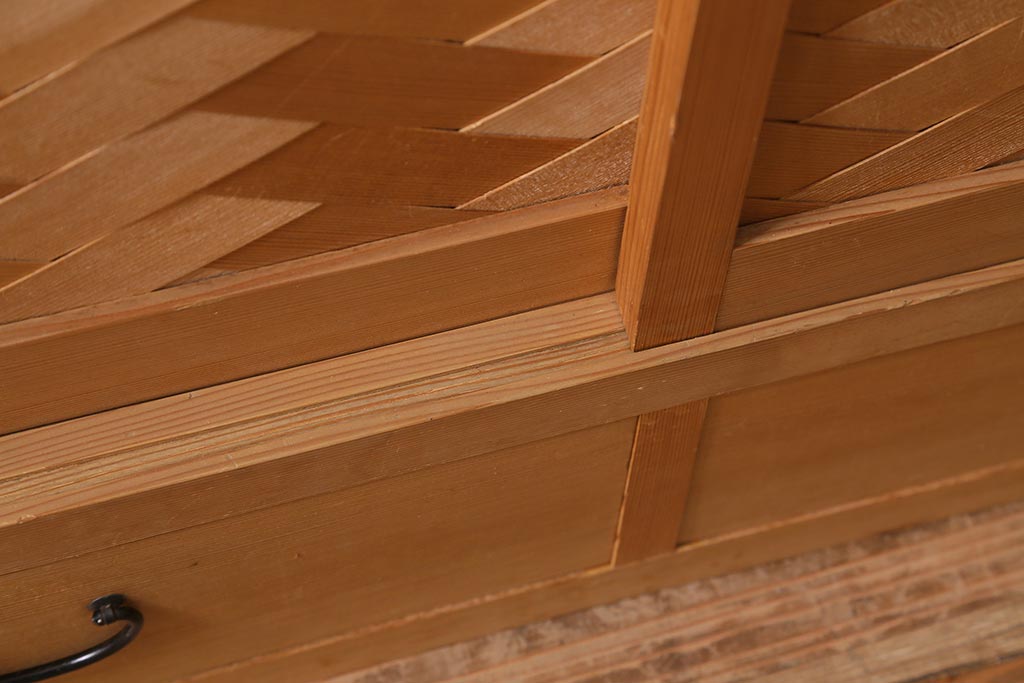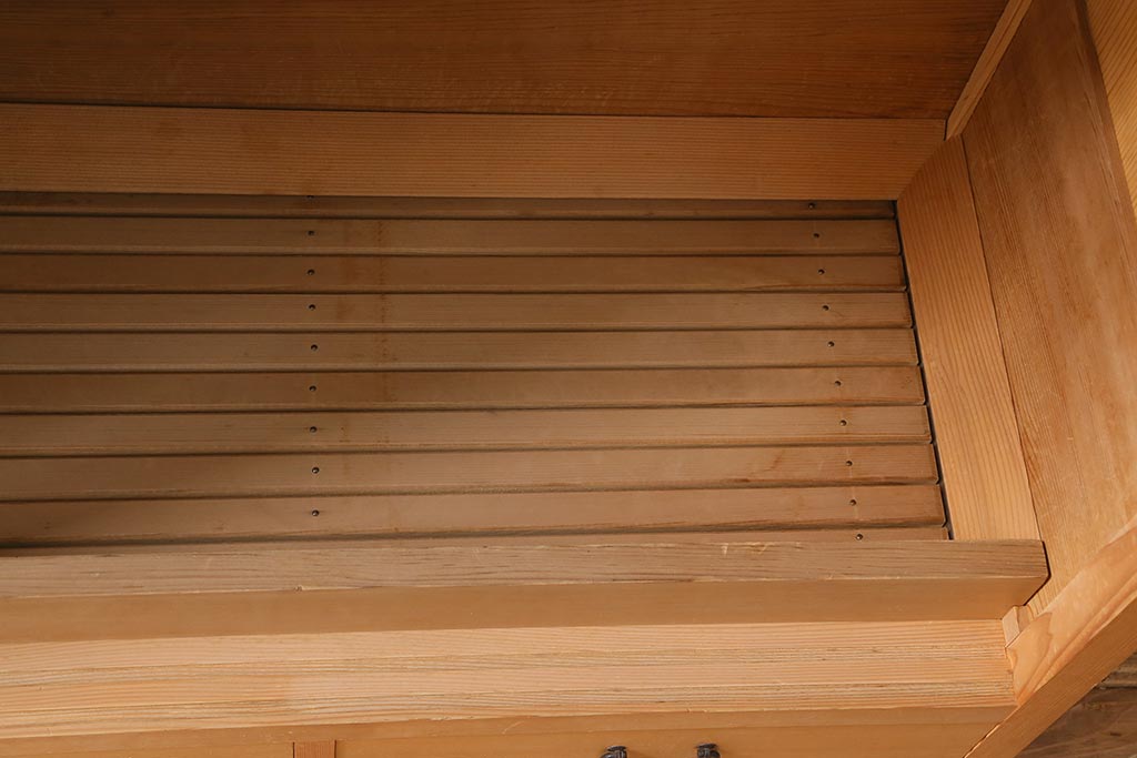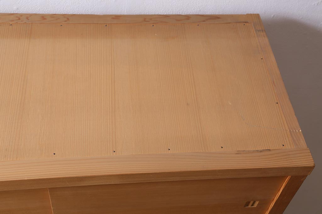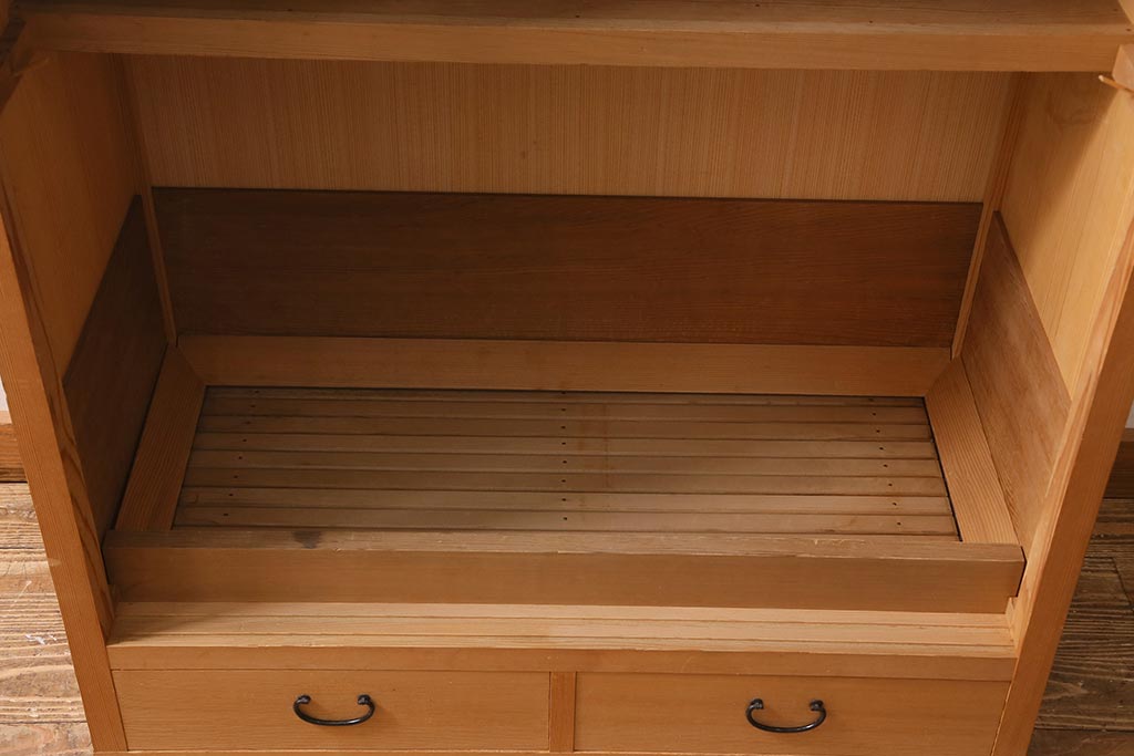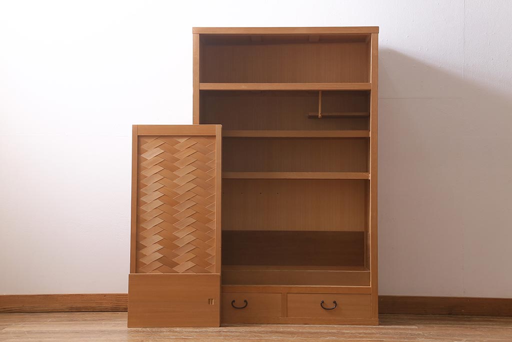 和箪笥> 水屋箪笥 > 中古 民芸家具 柄杓付き 網代編みの引戸が目を引く置水屋(置き水屋、茶水屋、茶道具、戸棚)(R-040699)