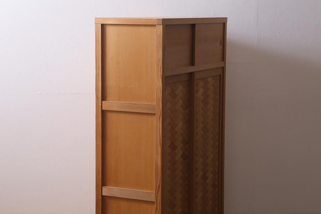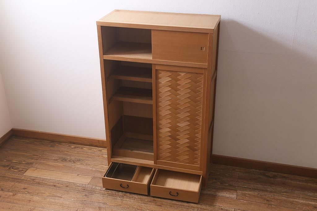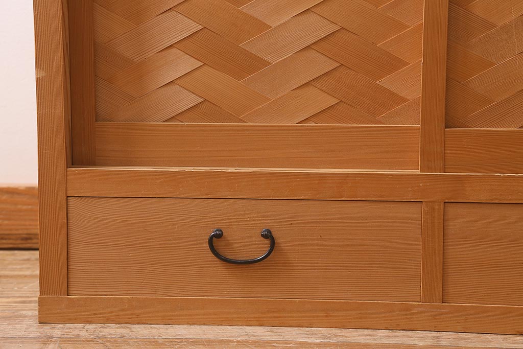 和箪笥 > 中古 民芸家具 柄杓付き 網代編みの引戸が目を引く置水屋(置き水屋、茶水屋、茶道具、戸棚)(R-040699)