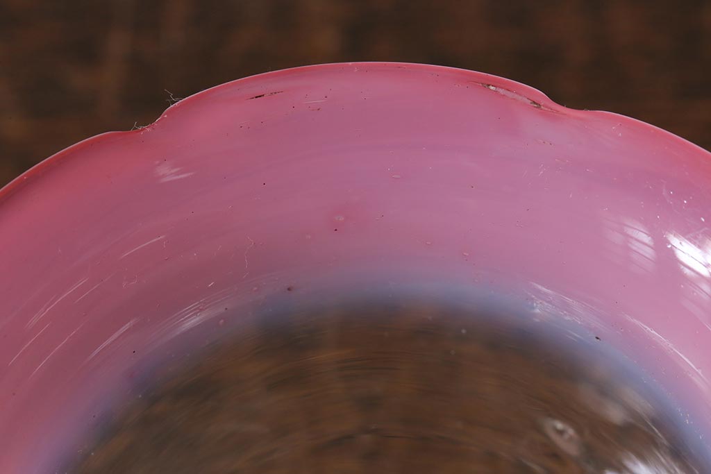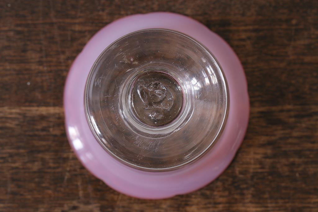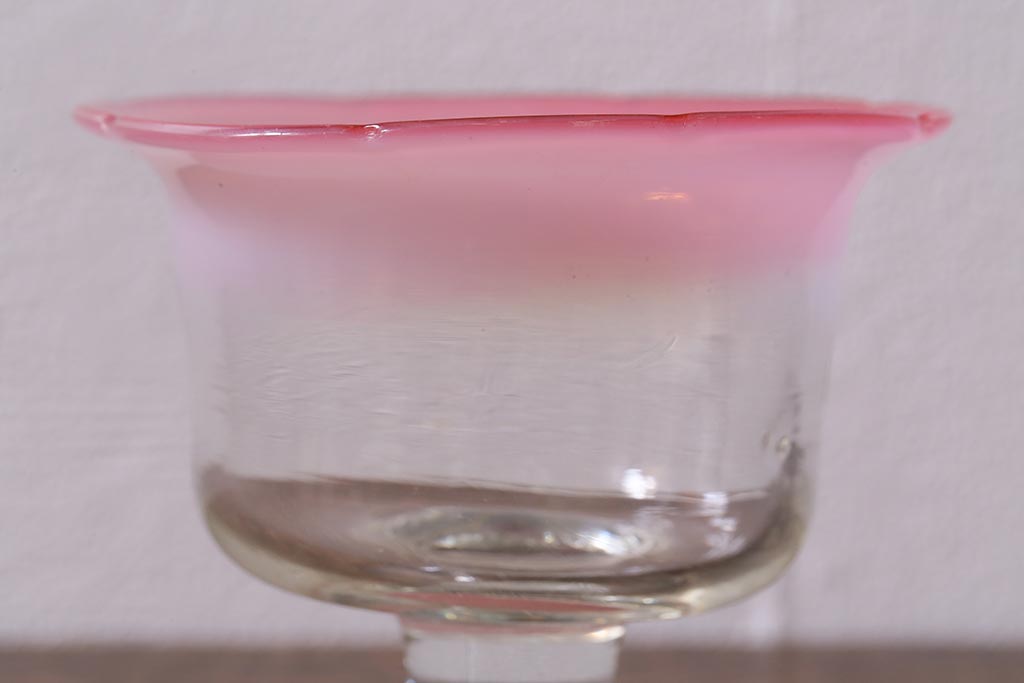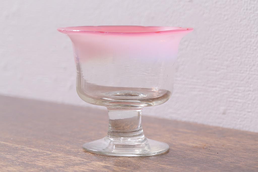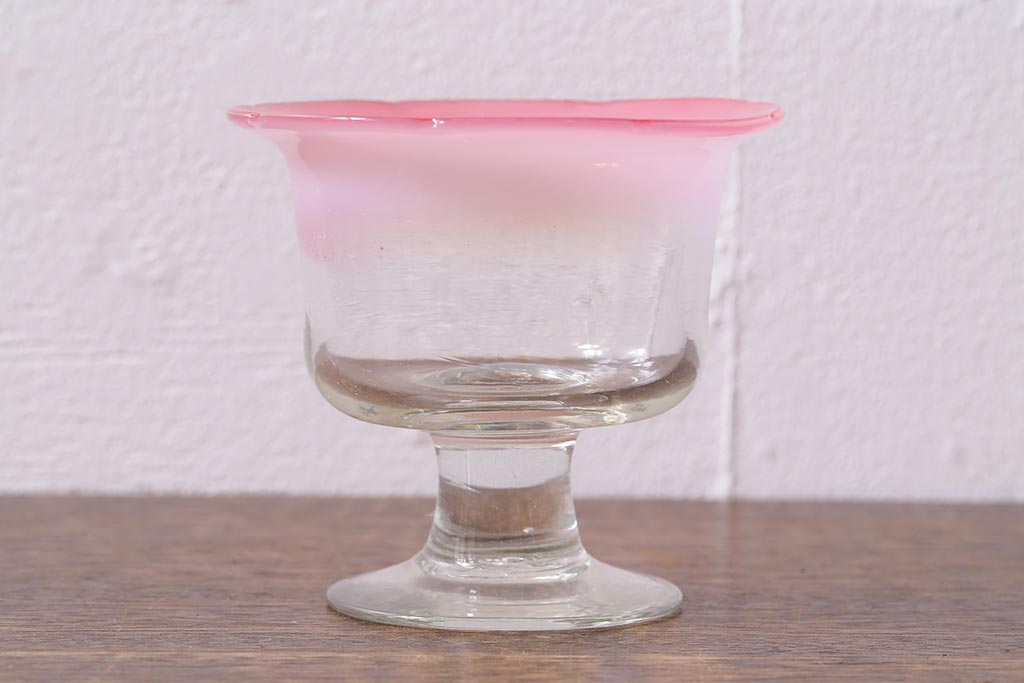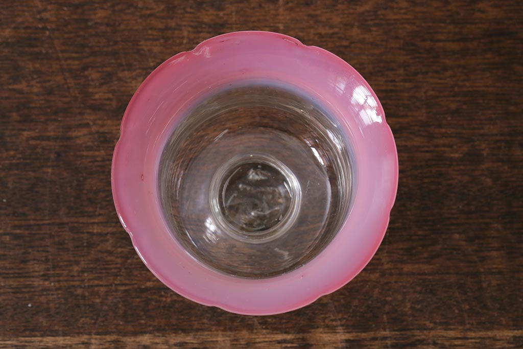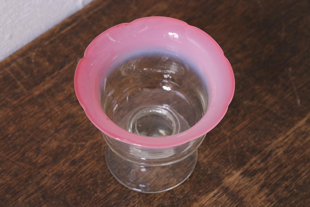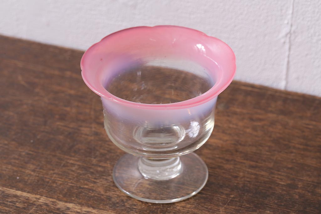 アンティーク雑貨 レトロ雑貨 大正期 ピンク縁 氷コップ(和ガラス、吹きガラス)(R-040122)