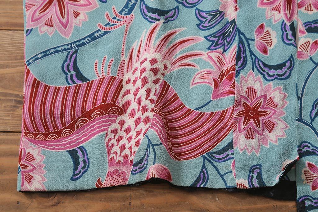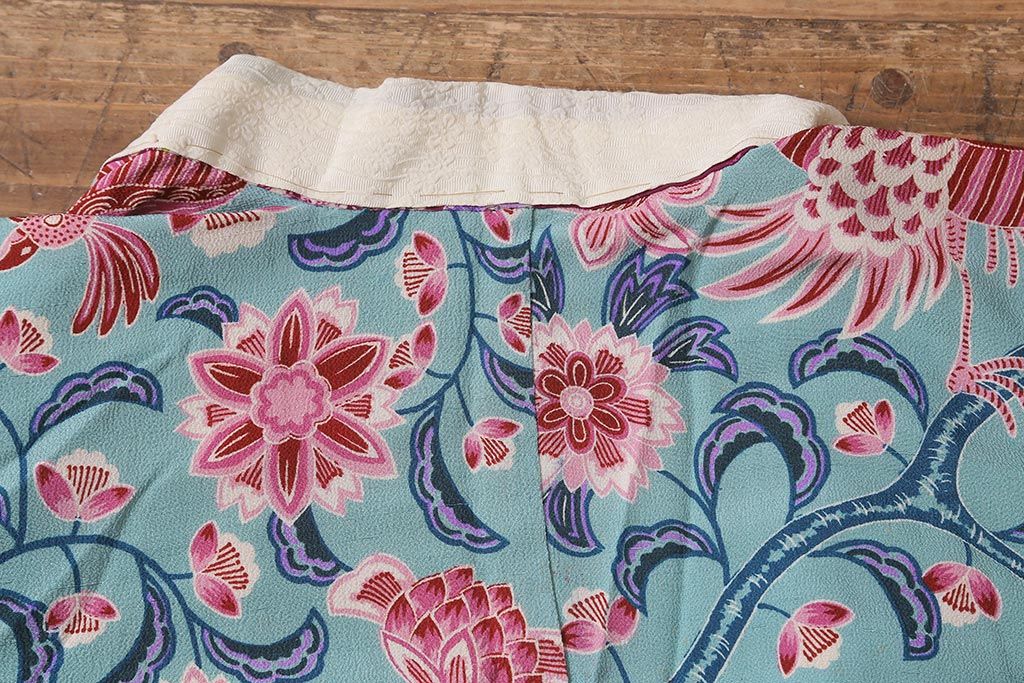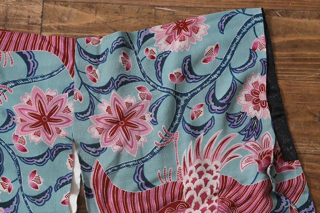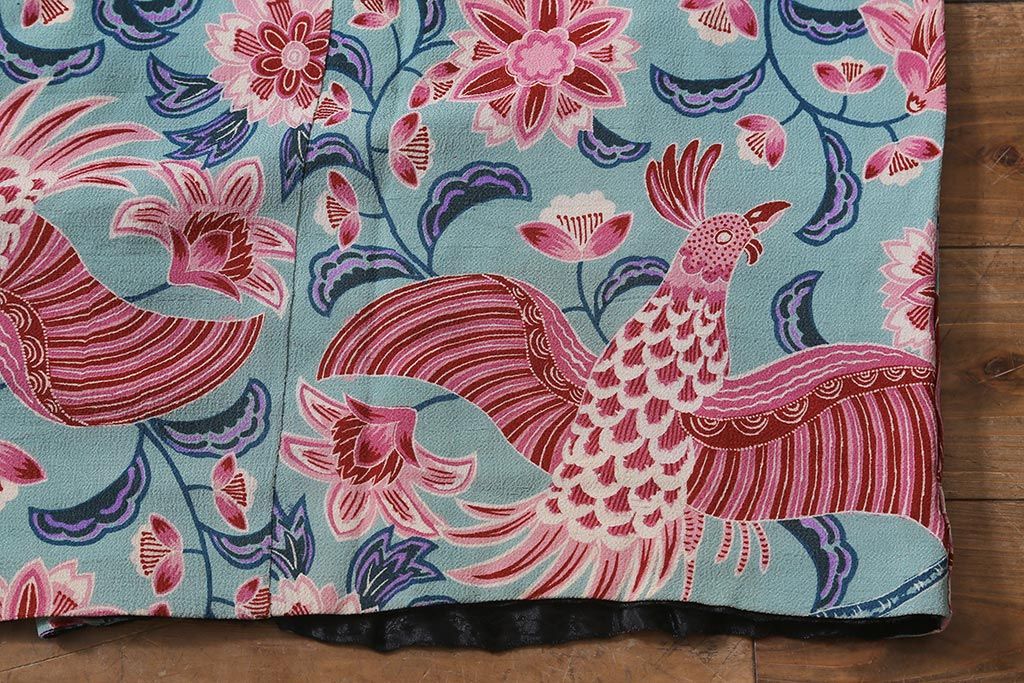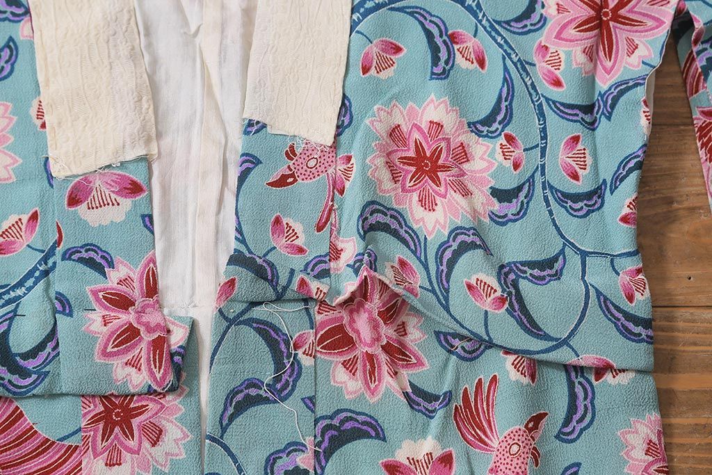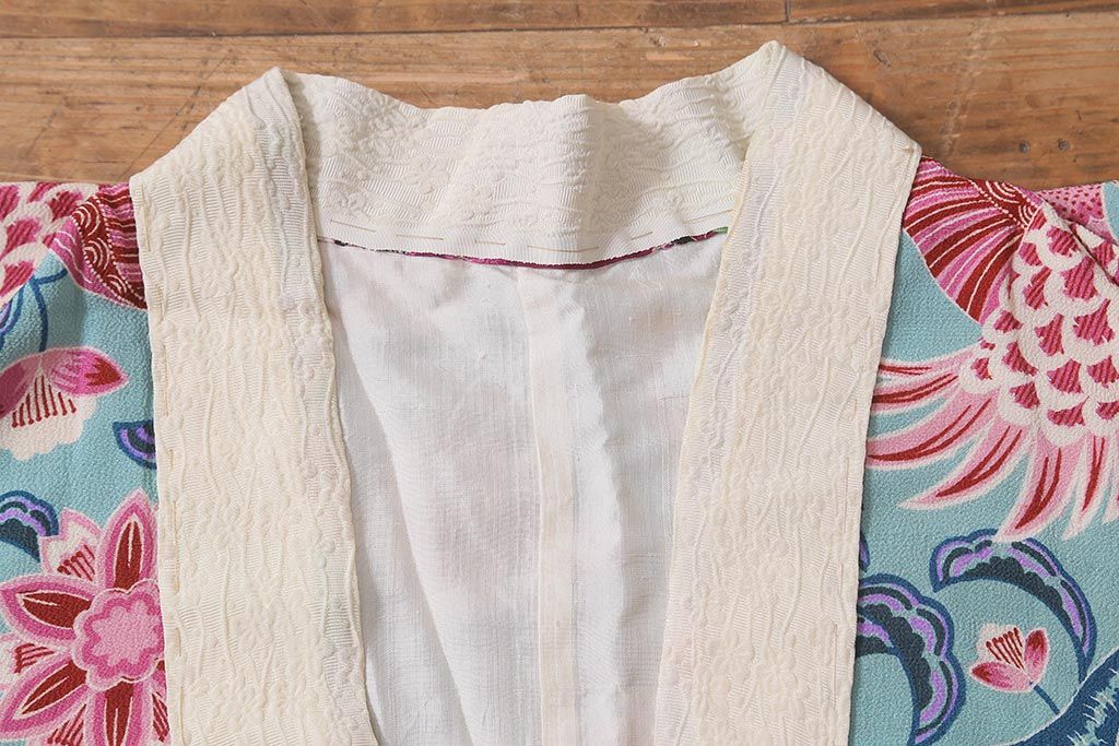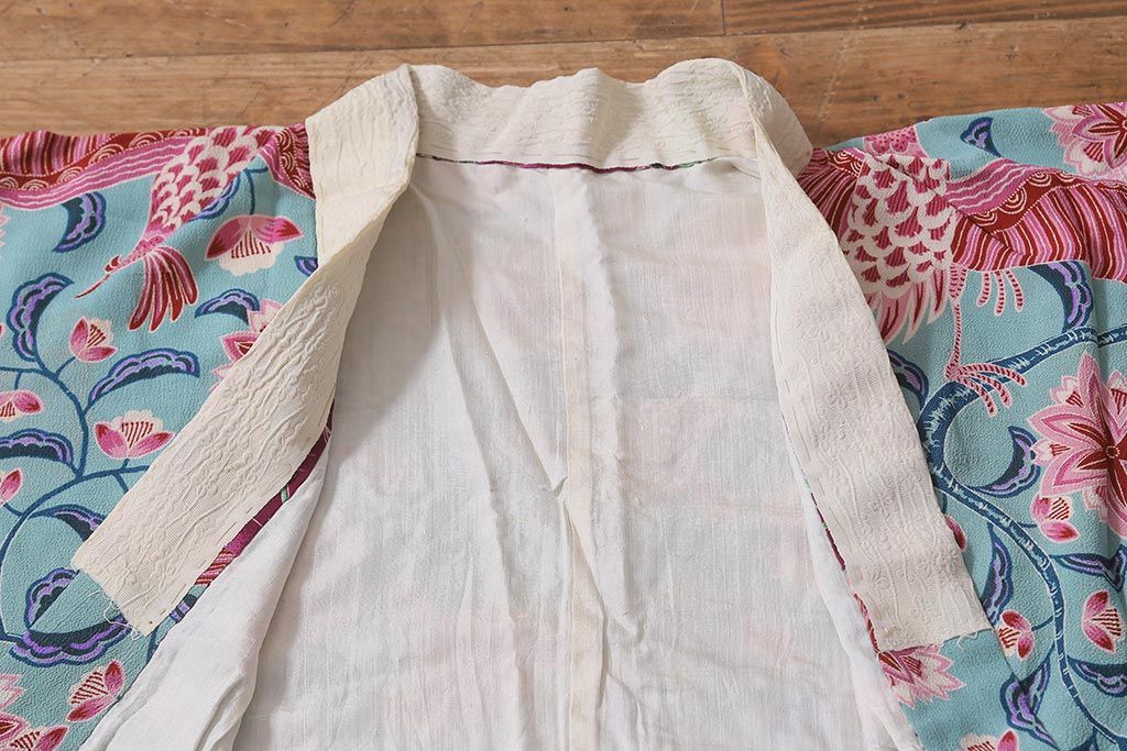 アンティーク雑貨 大正昭和初期 花鳥図 縮緬(ちりめん)長襦袢(古布正絹)(R-040129)