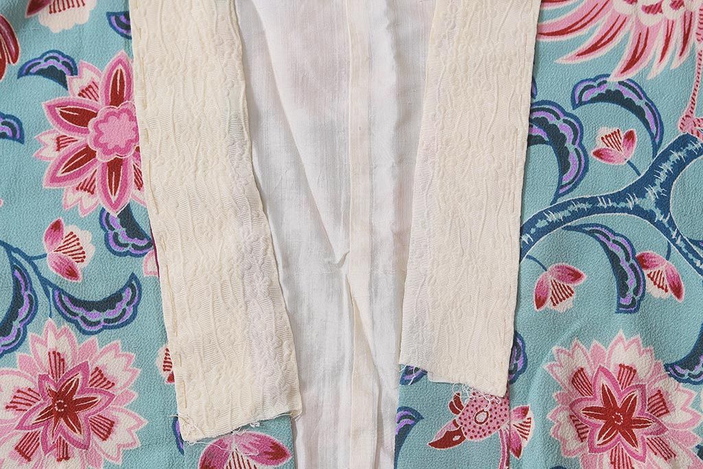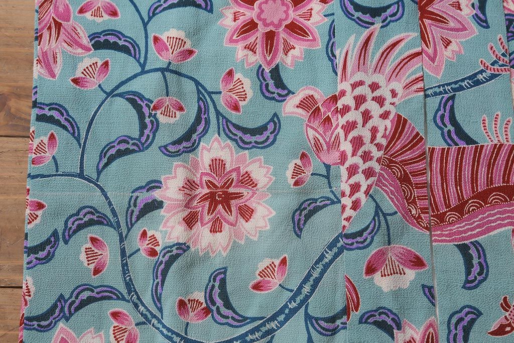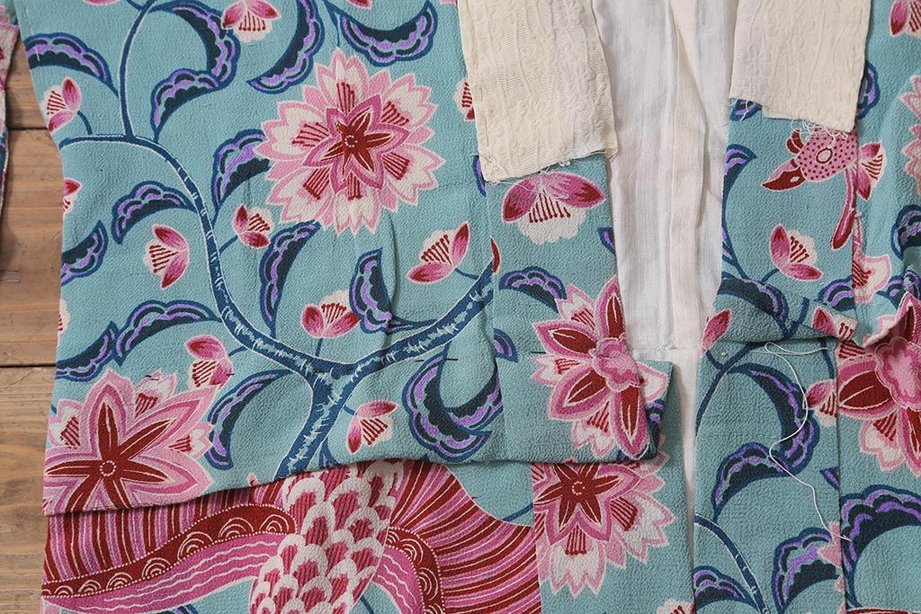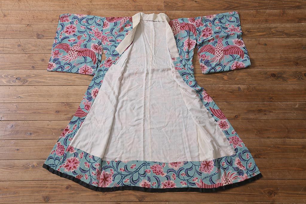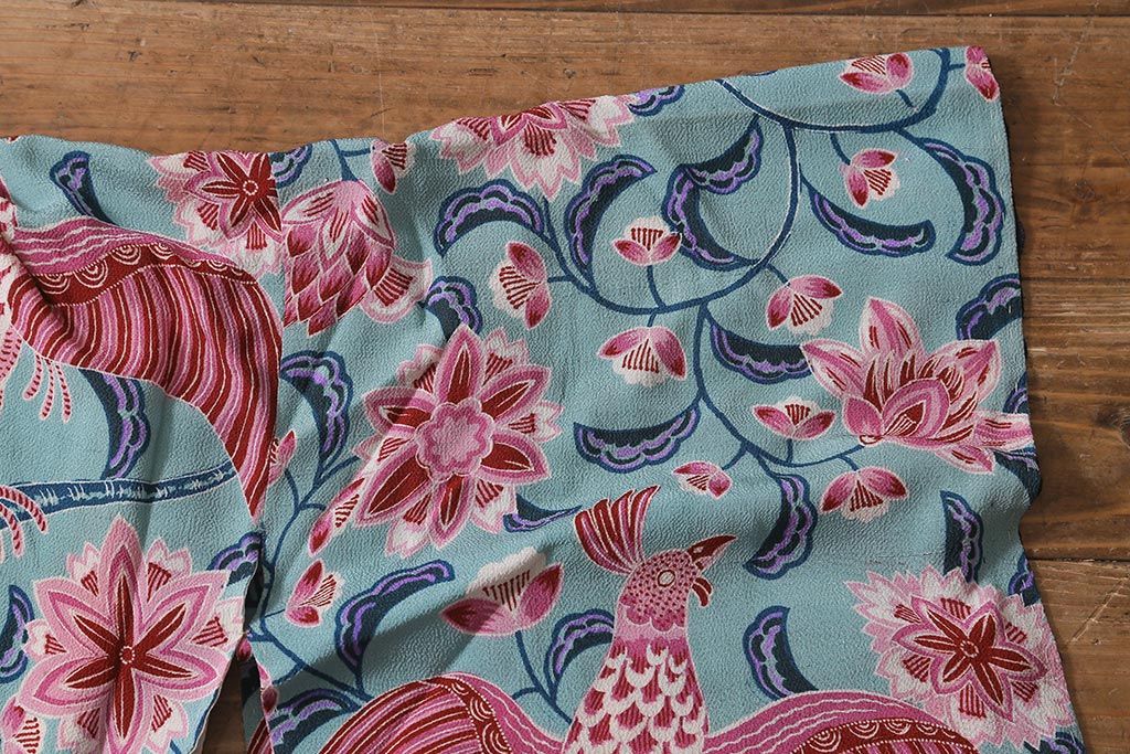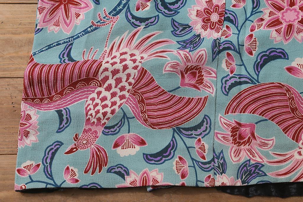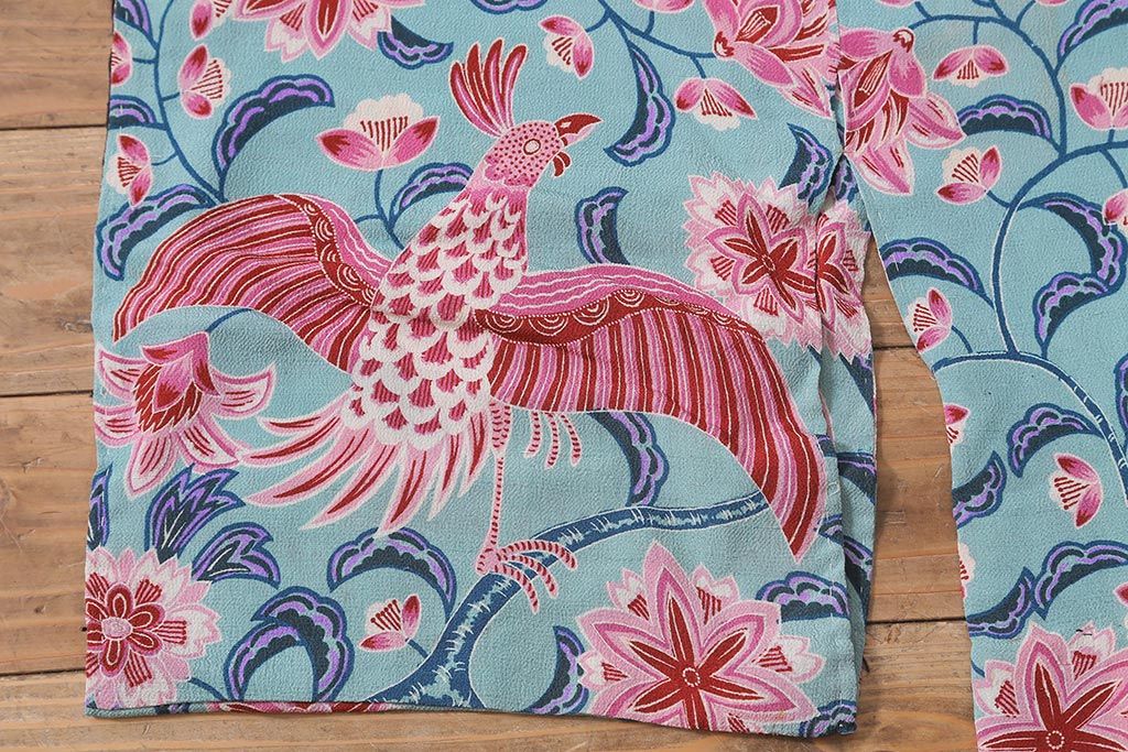 アンティーク雑貨 大正昭和初期 花鳥図 縮緬(ちりめん)長襦袢(古布正絹)(R-040129)