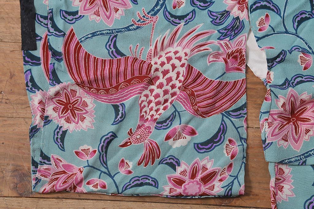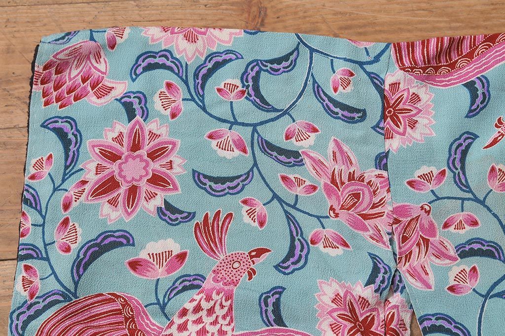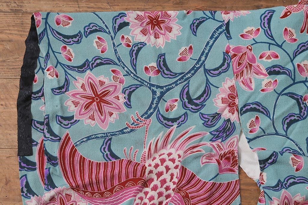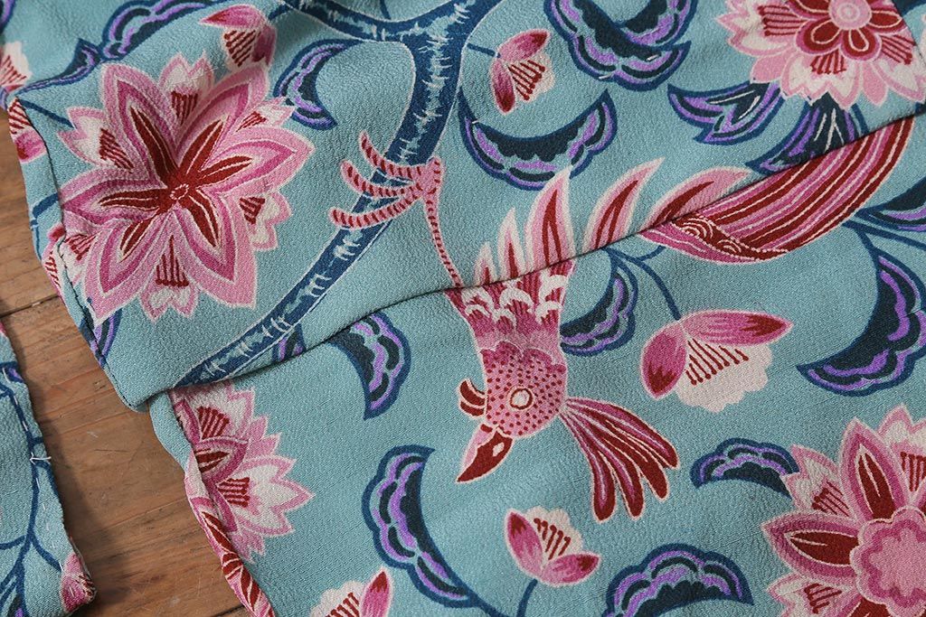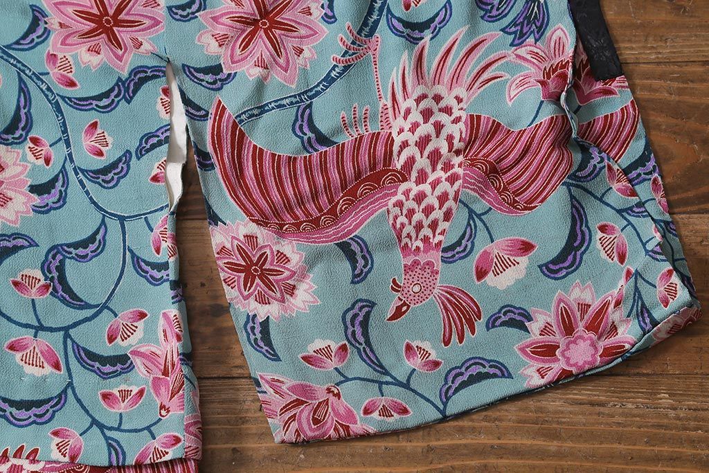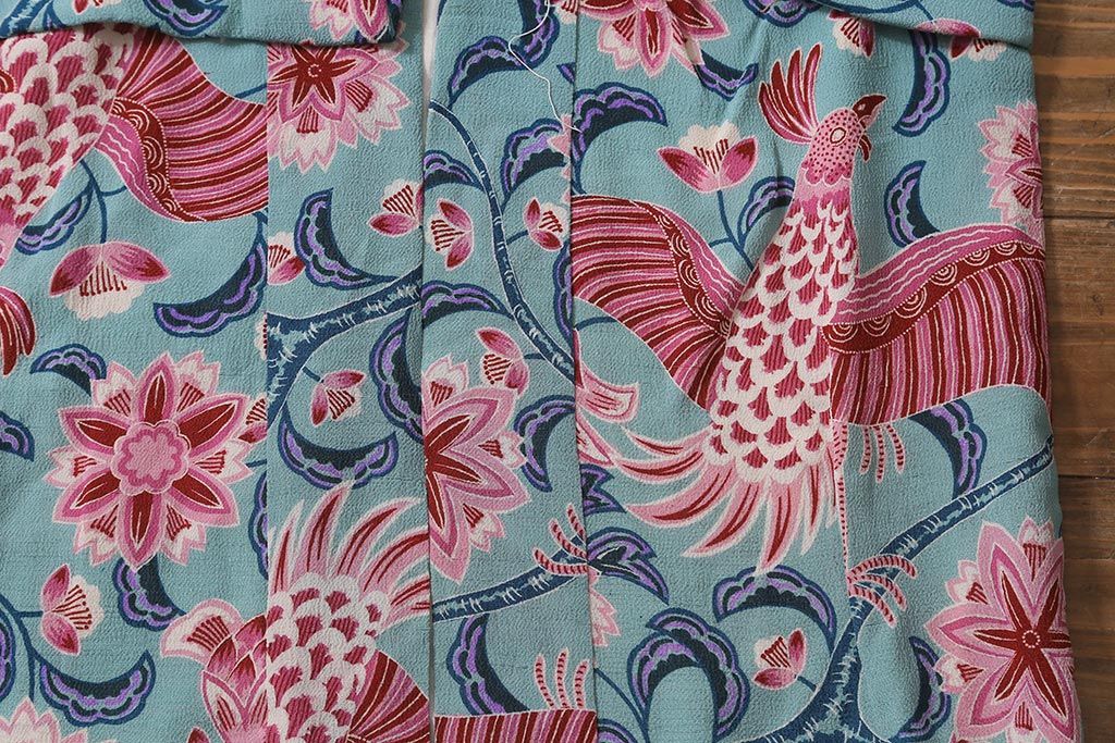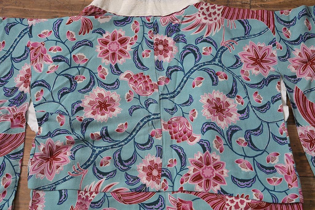 アンティーク雑貨 大正昭和初期 花鳥図 縮緬(ちりめん)長襦袢(古布正絹)(R-040129)