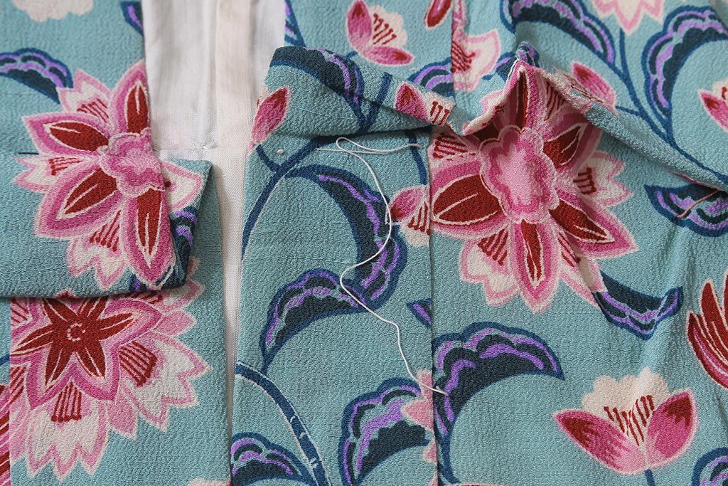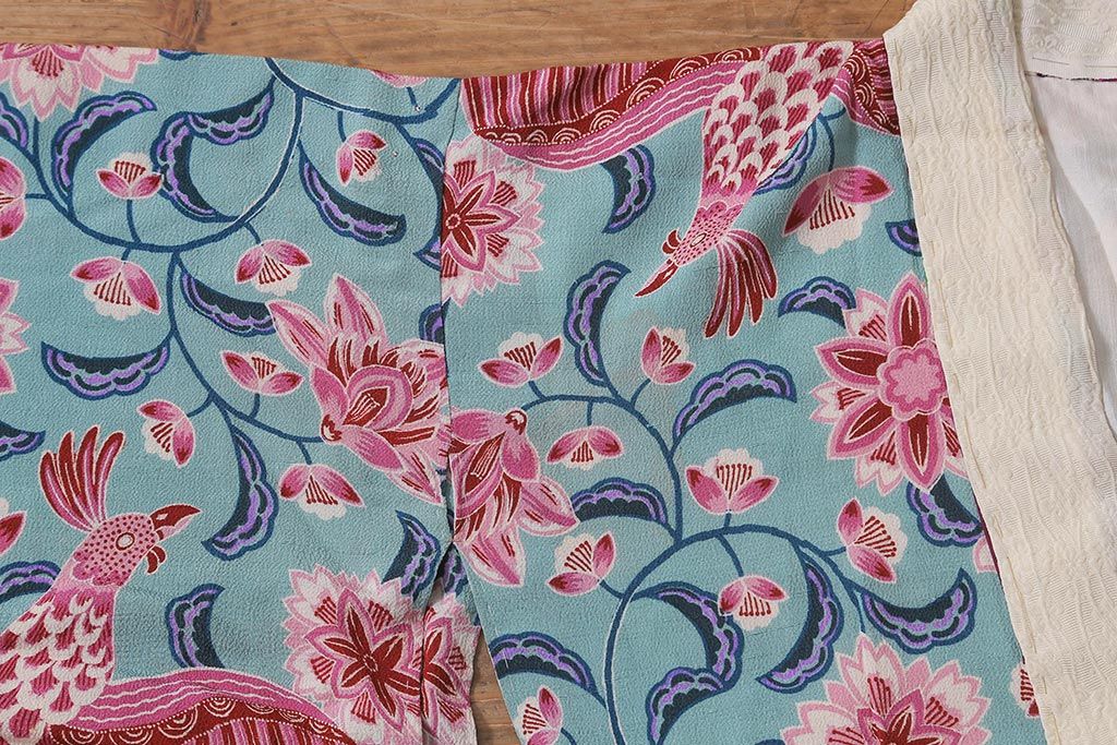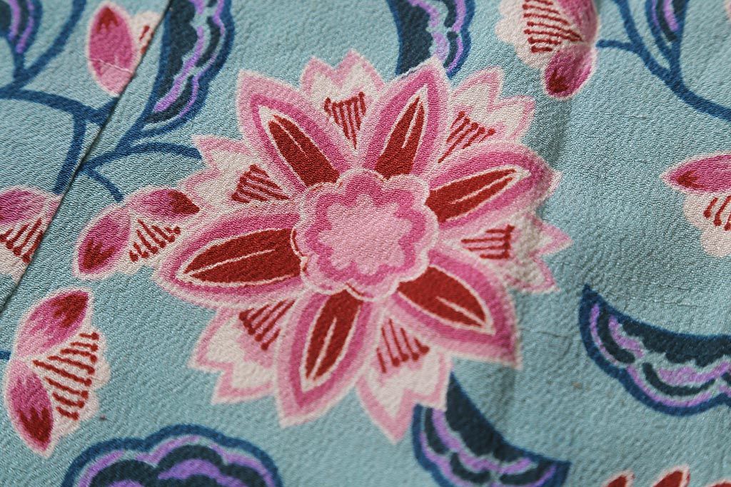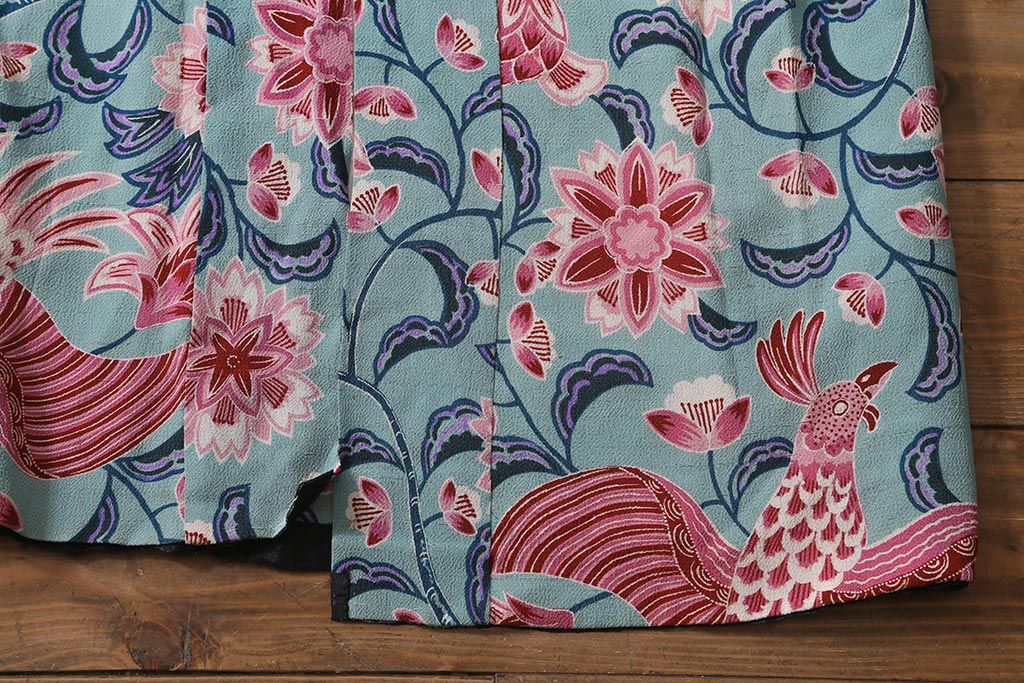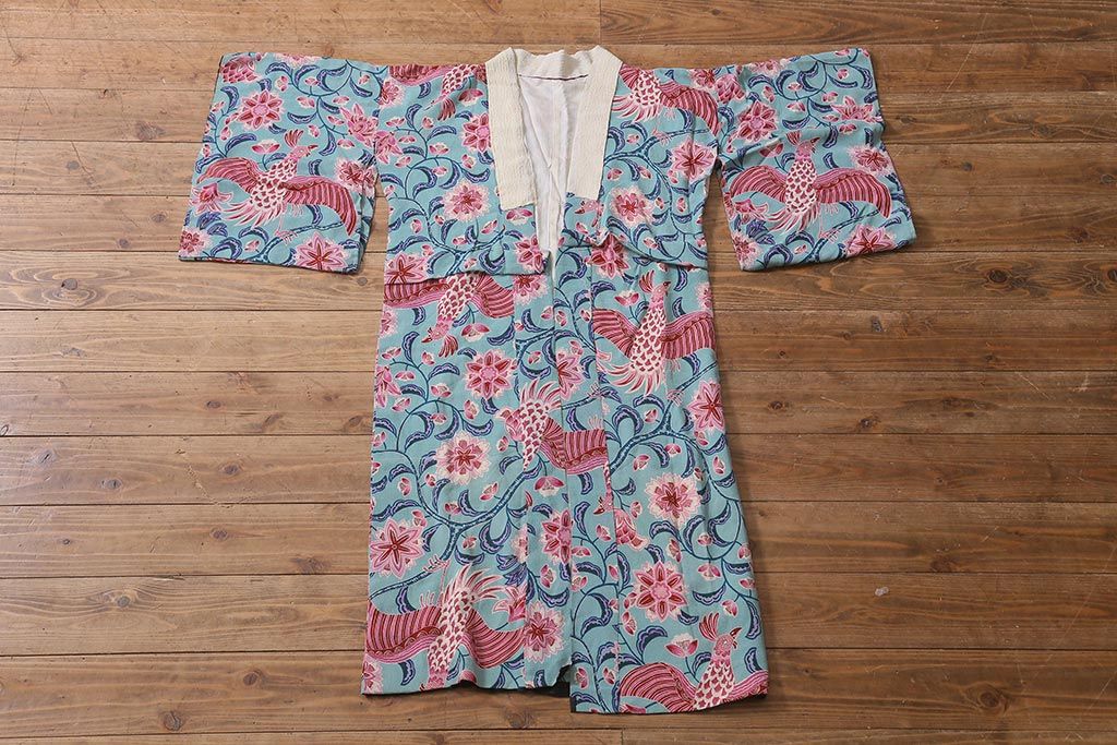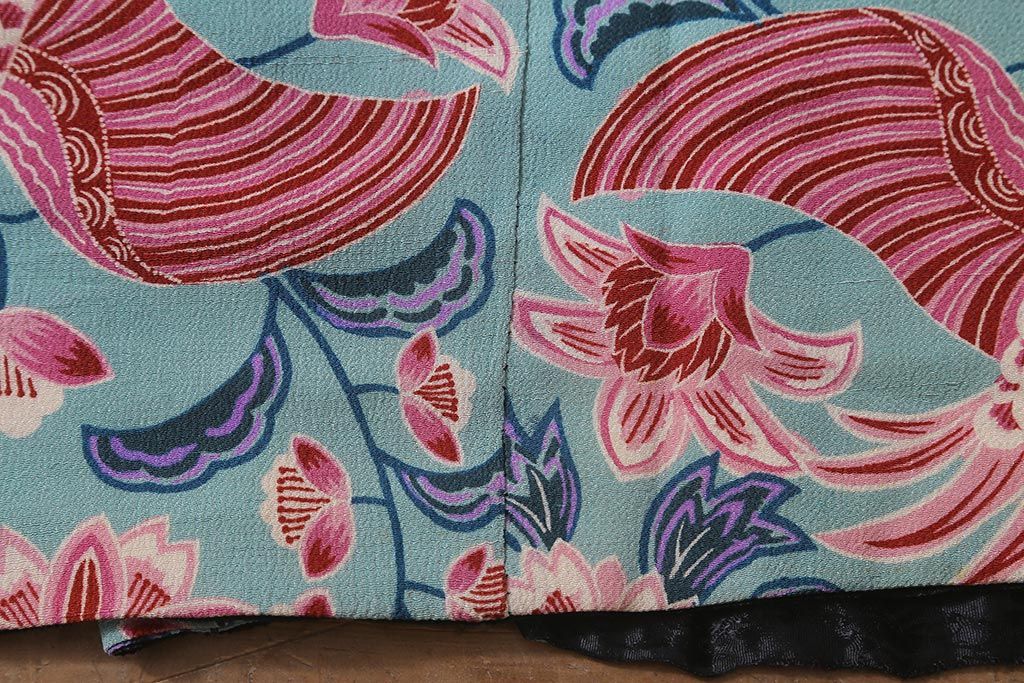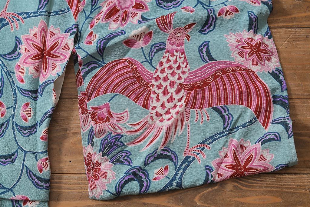 アンティーク雑貨 大正昭和初期 花鳥図 縮緬(ちりめん)長襦袢(古布正絹)(R-040129)