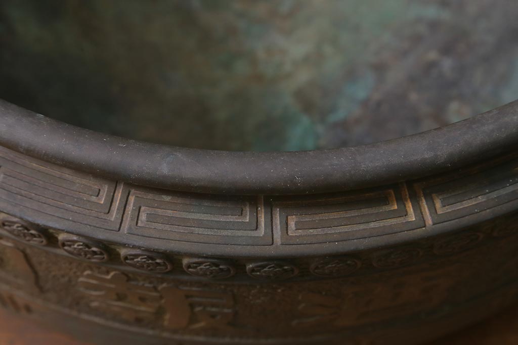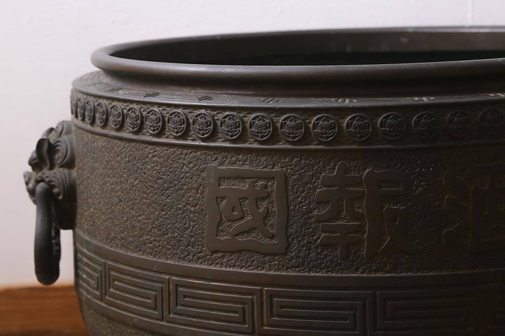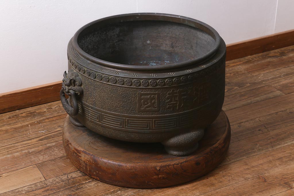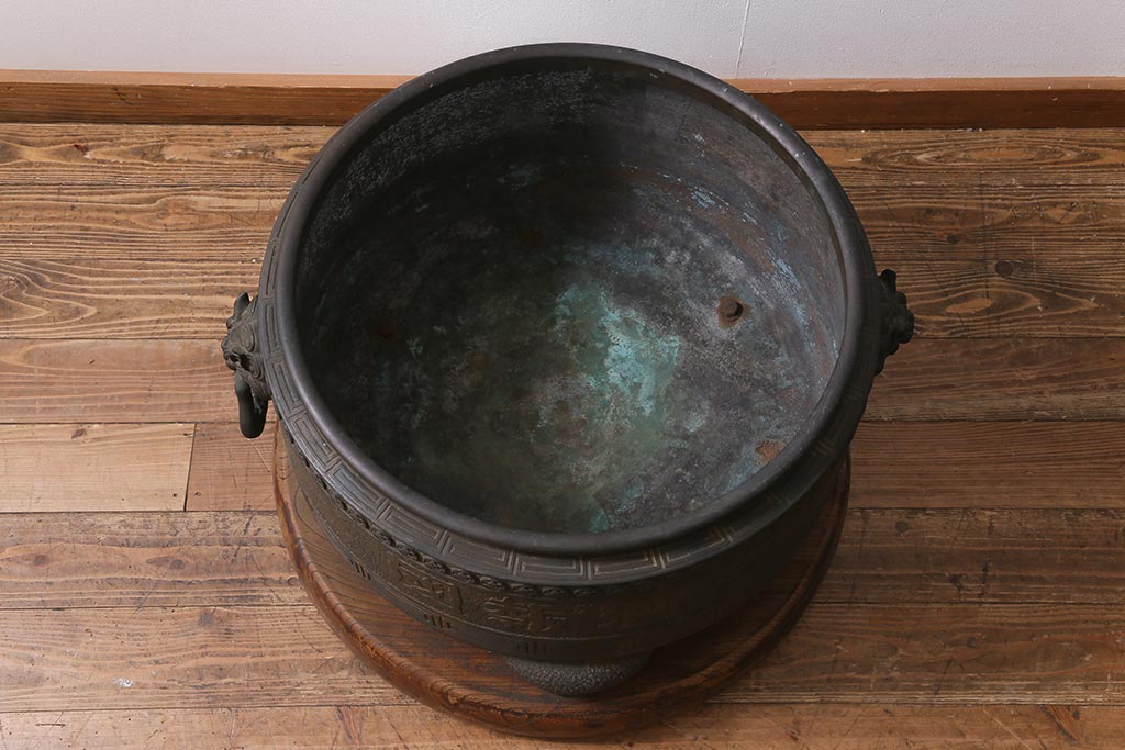 アンティーク雑貨 骨董 大正昭和初期 特大 銅火鉢 上手物(R-040190)