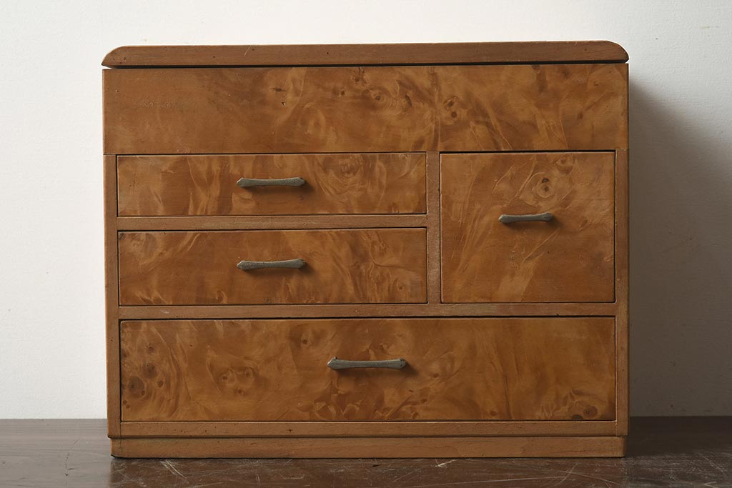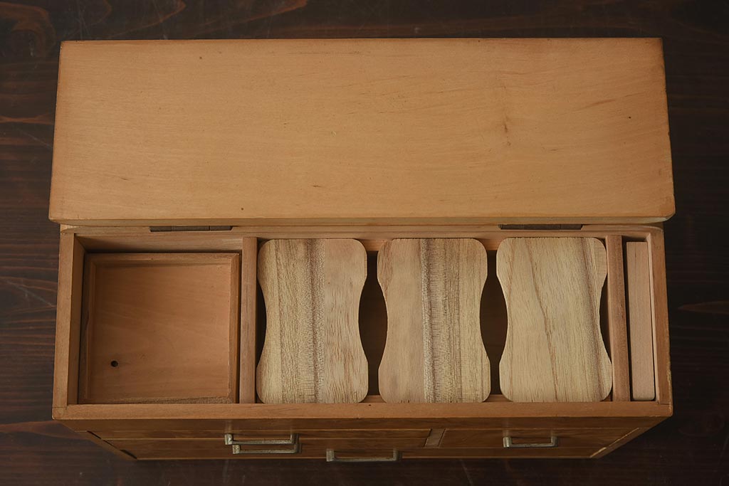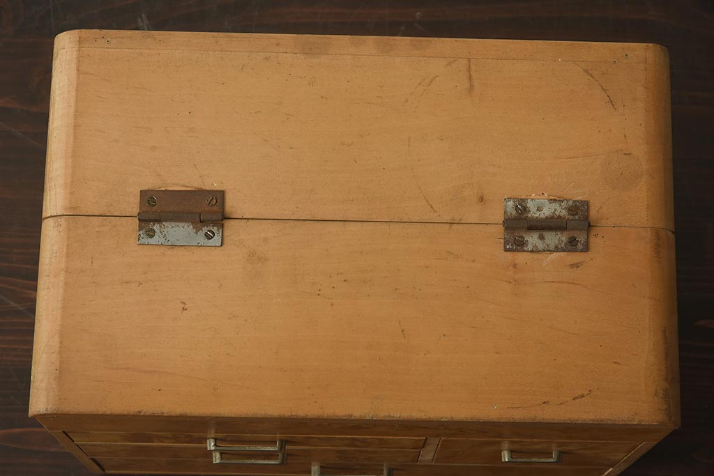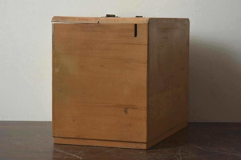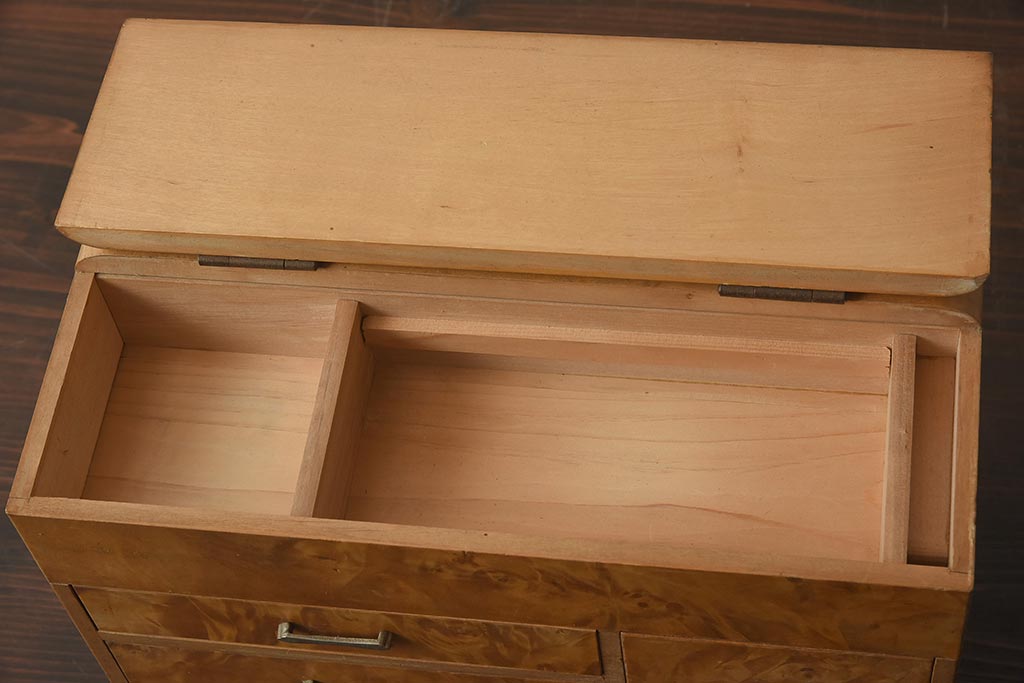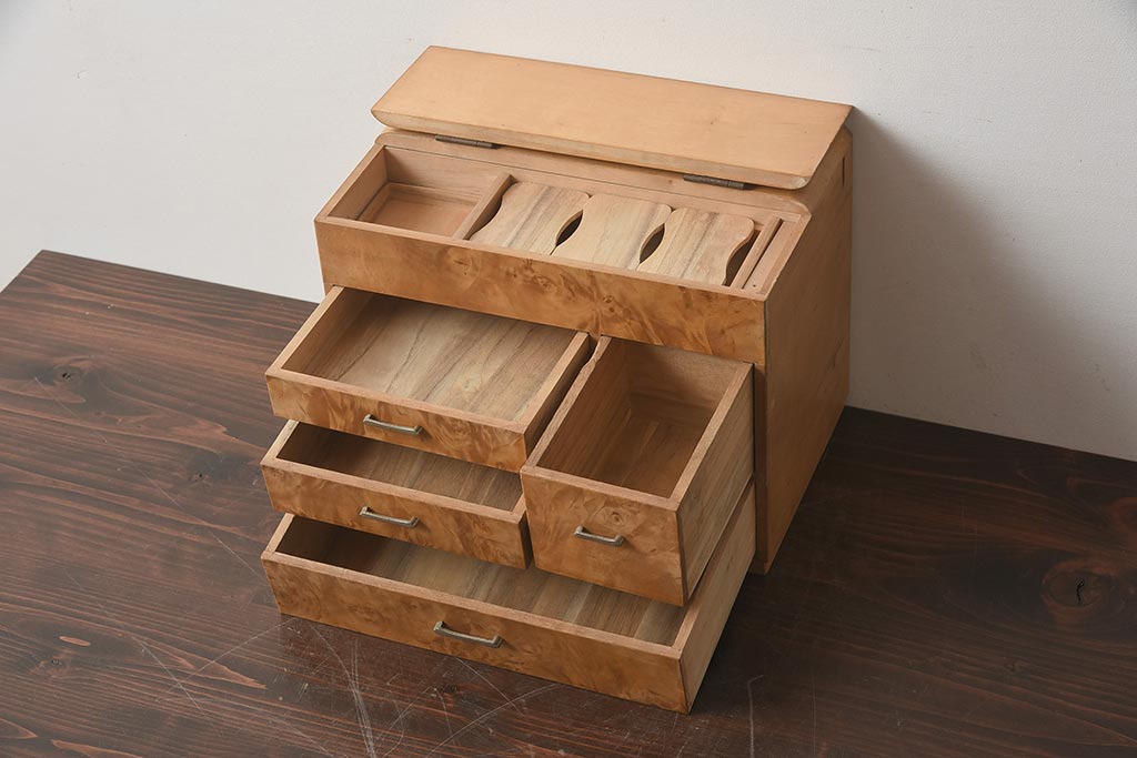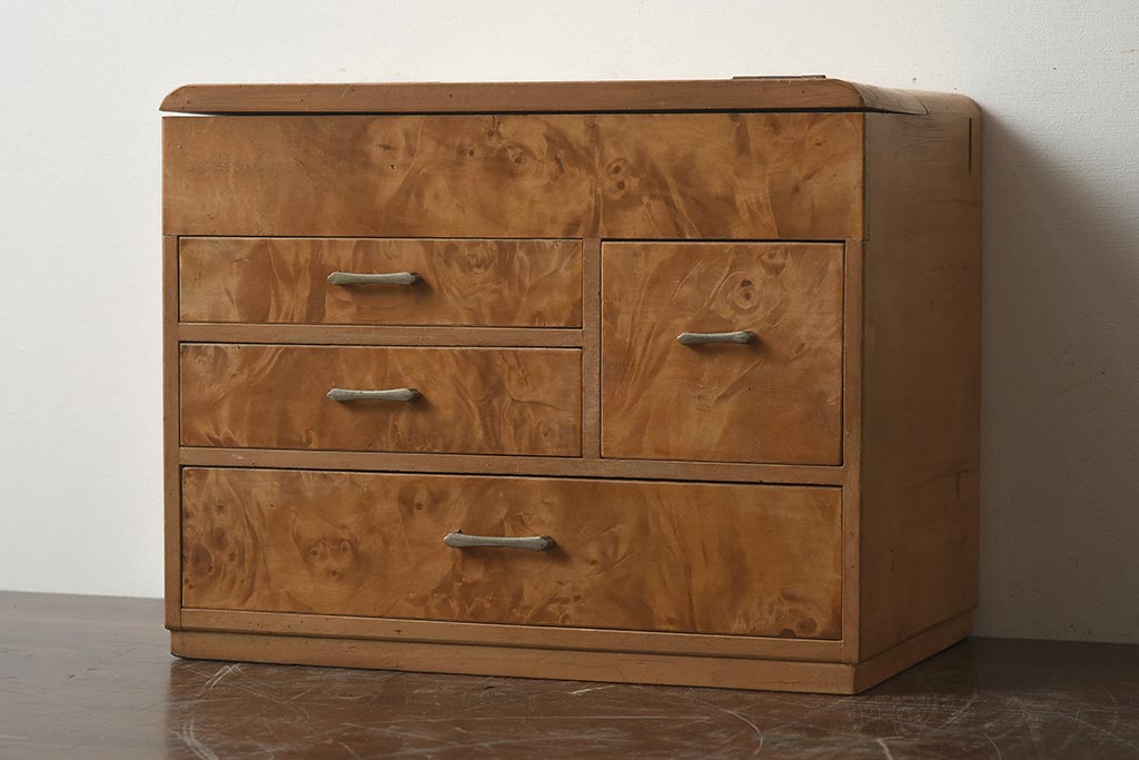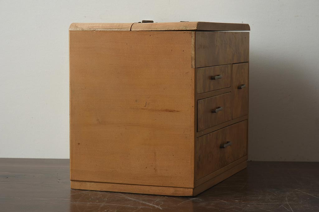 小物収納・トランク> 小引き出し > アンティーク雑貨 昭和中期 楓材・鳥眼杢 独特の木目が魅力のレトロな裁縫箱(ソーイングボックス、小引き出し、小物収納)(R-040712)
