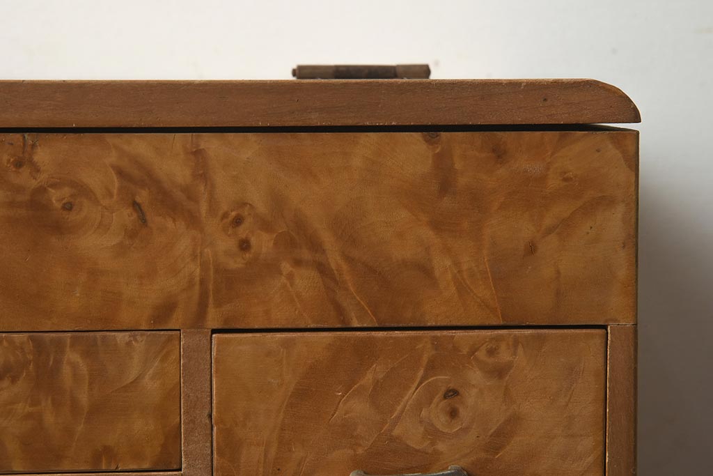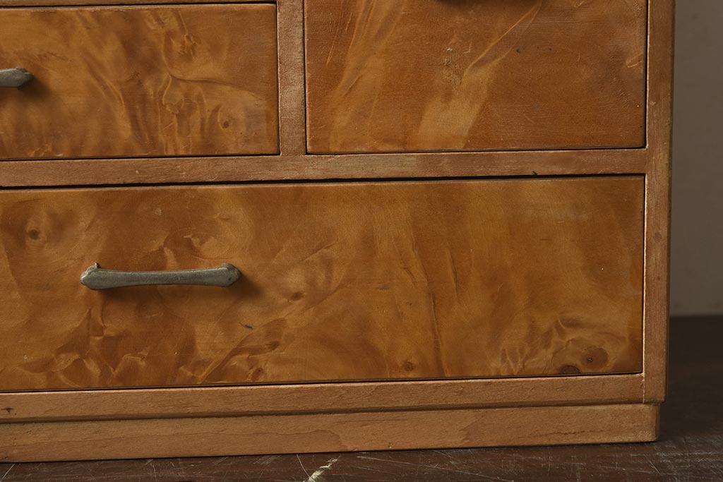 小物収納・トランク > アンティーク雑貨 昭和中期 楓材・鳥眼杢 独特の木目が魅力のレトロな裁縫箱(ソーイングボックス、小引き出し、小物収納)(R-040712)