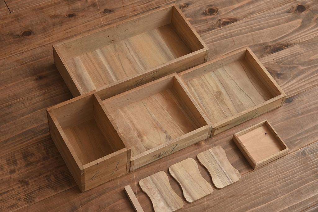 ・引き出し・引き戸・扉等の可動部分は調整してありますが、無垢材の特性として、湿度や気温などの変化によりきつくなったり緩くなったりする場合がございますので、ご理解の上お願いします。