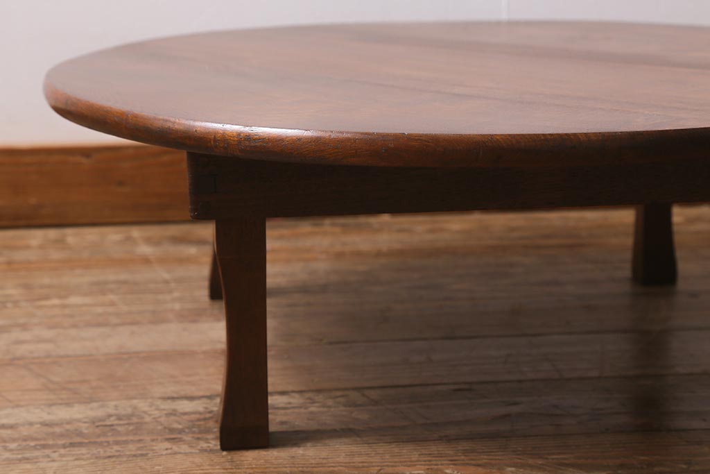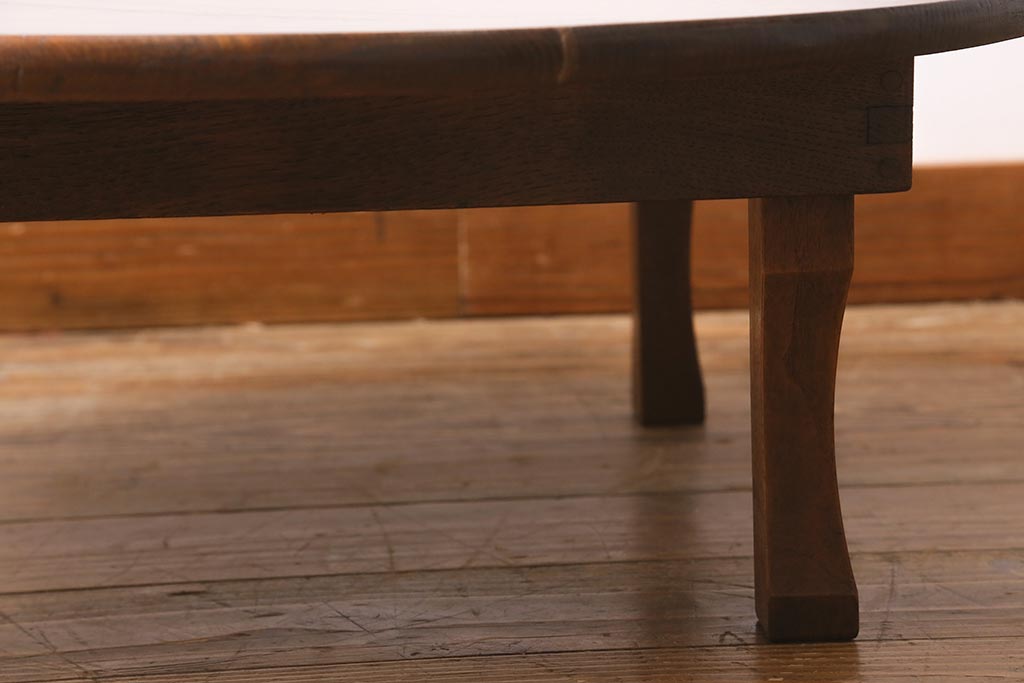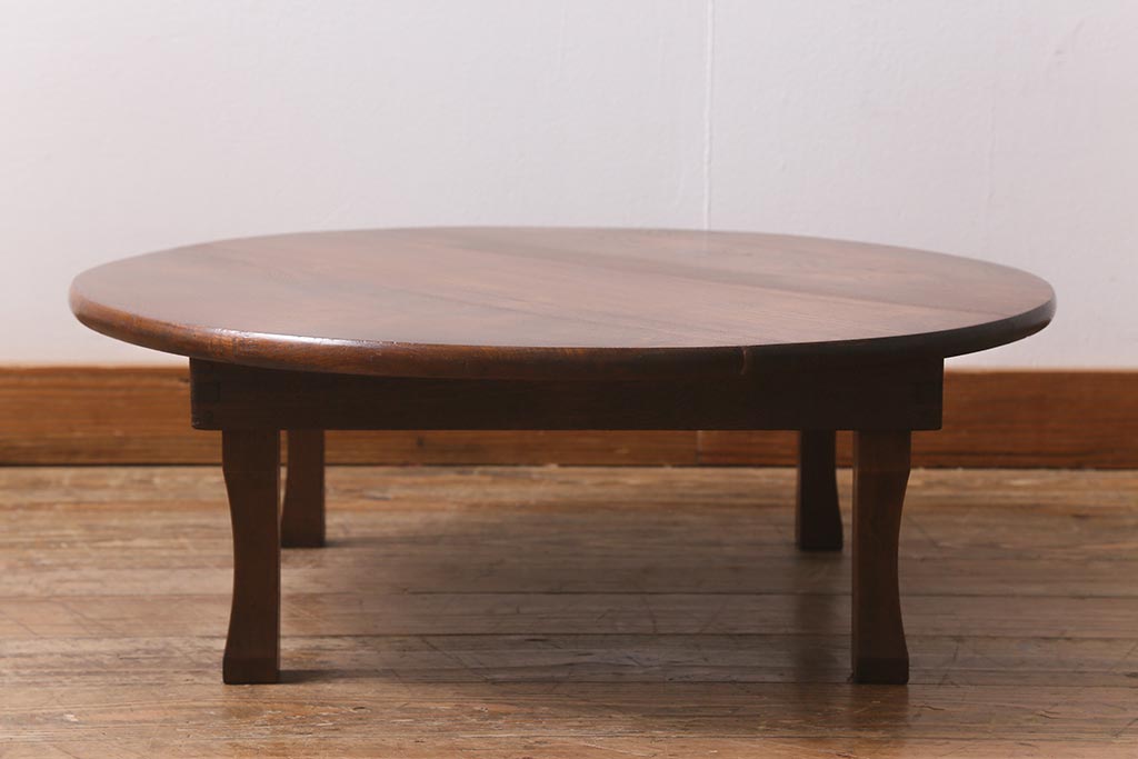 レトロ家具 昭和初期 栓材 温かみのある素朴な雰囲気が魅力の丸ちゃぶ台(折りたたみテーブル、座卓、ローテーブル)(R-040734)