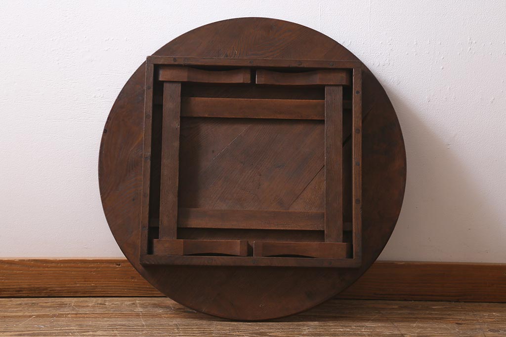 テーブル> おりたたみテーブル > レトロ家具 昭和初期 栓材 温かみのある素朴な雰囲気が魅力の丸ちゃぶ台(折りたたみテーブル、座卓、ローテーブル)(R-040734)