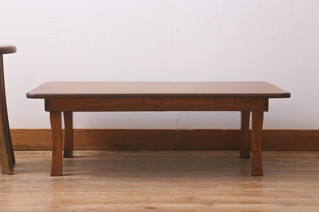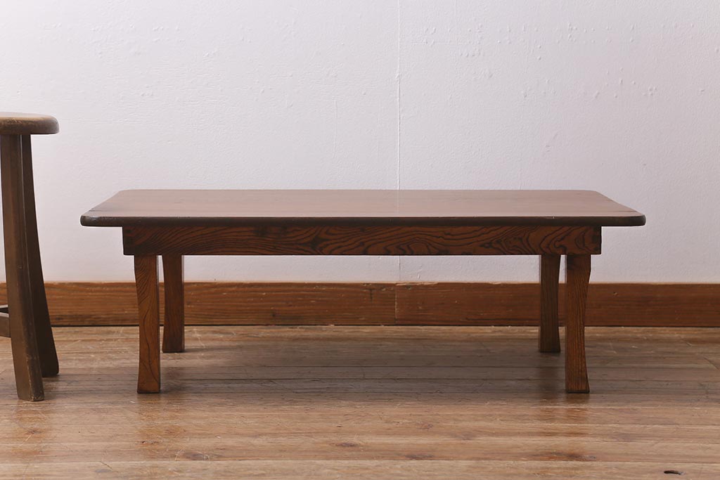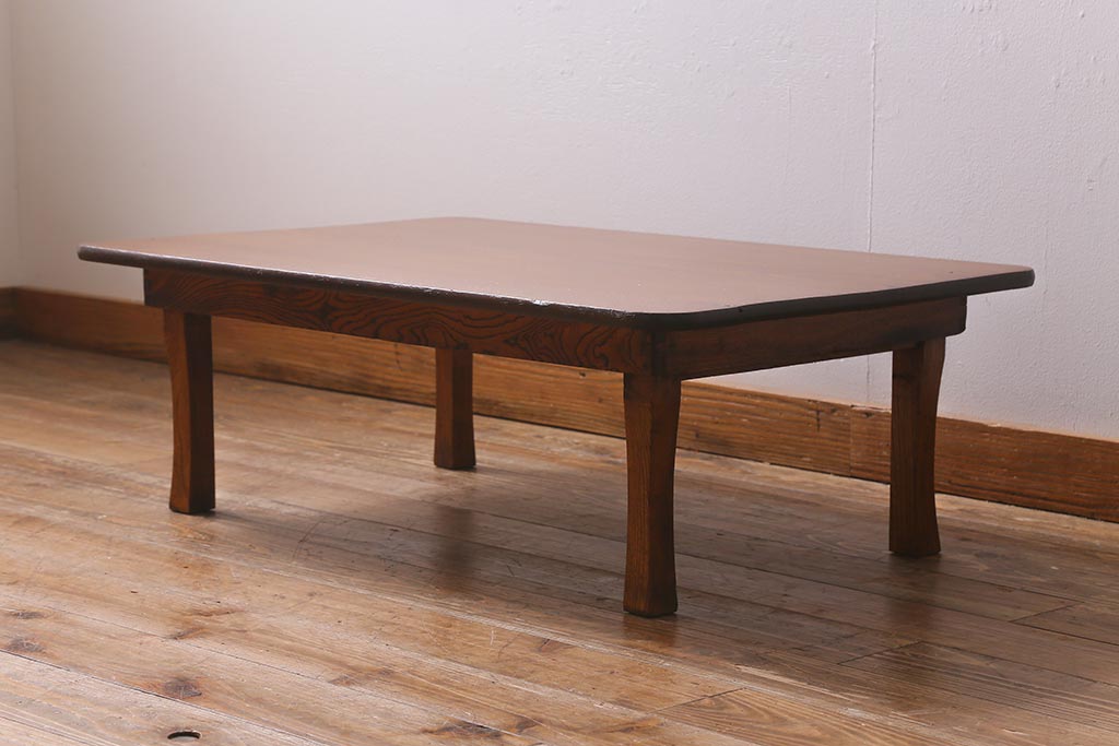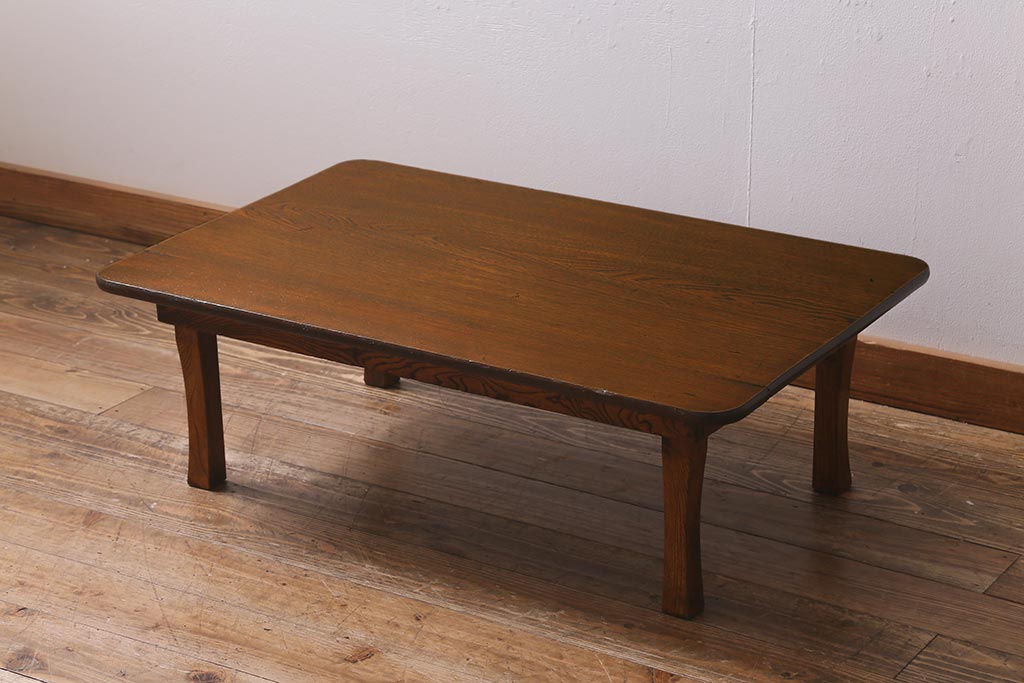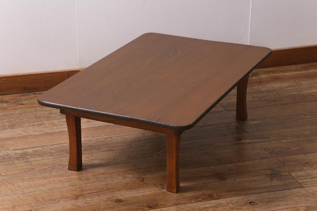 テーブル> 座卓 > レトロ家具 昭和中期 栓材 味わい深い木肌が魅力の角ちゃぶ台(折りたたみテーブル、座卓、ローテーブル)(R-040732)