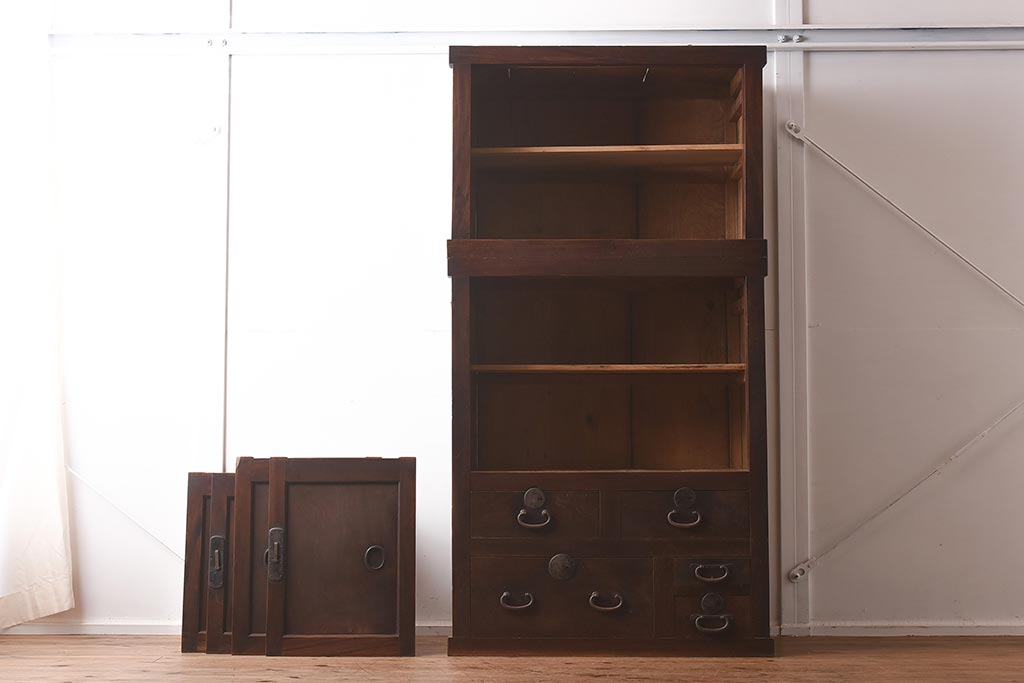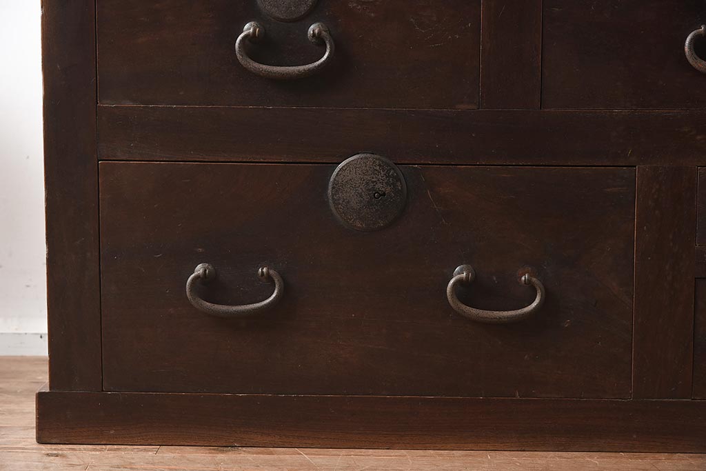 アンティーク家具 和製アンティーク 明治大正期 前面ケヤキ材 極太框 上手物 凛とした存在感が溢れる重ね帳場箪笥(重ね箪笥、収納棚)(R-040625)