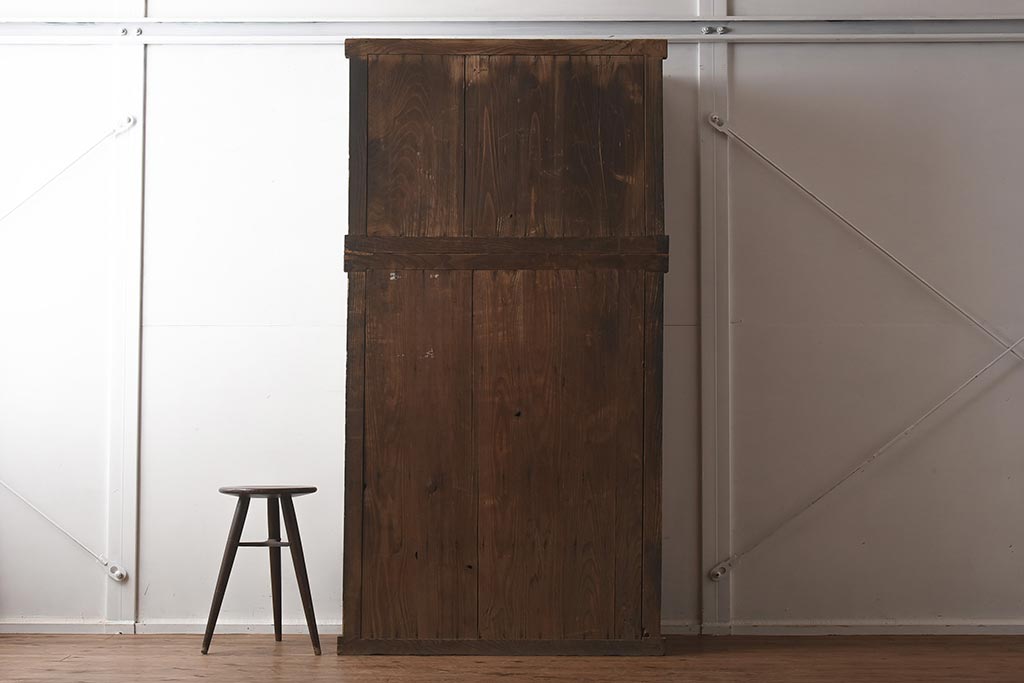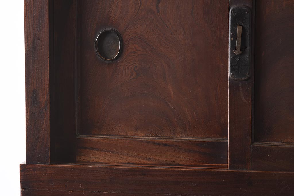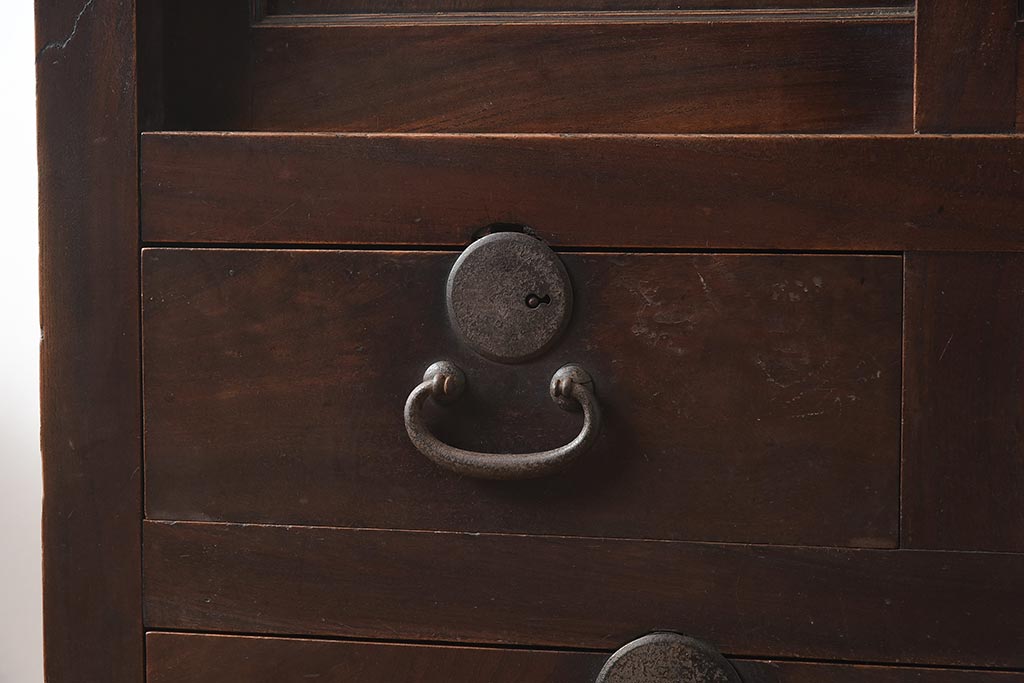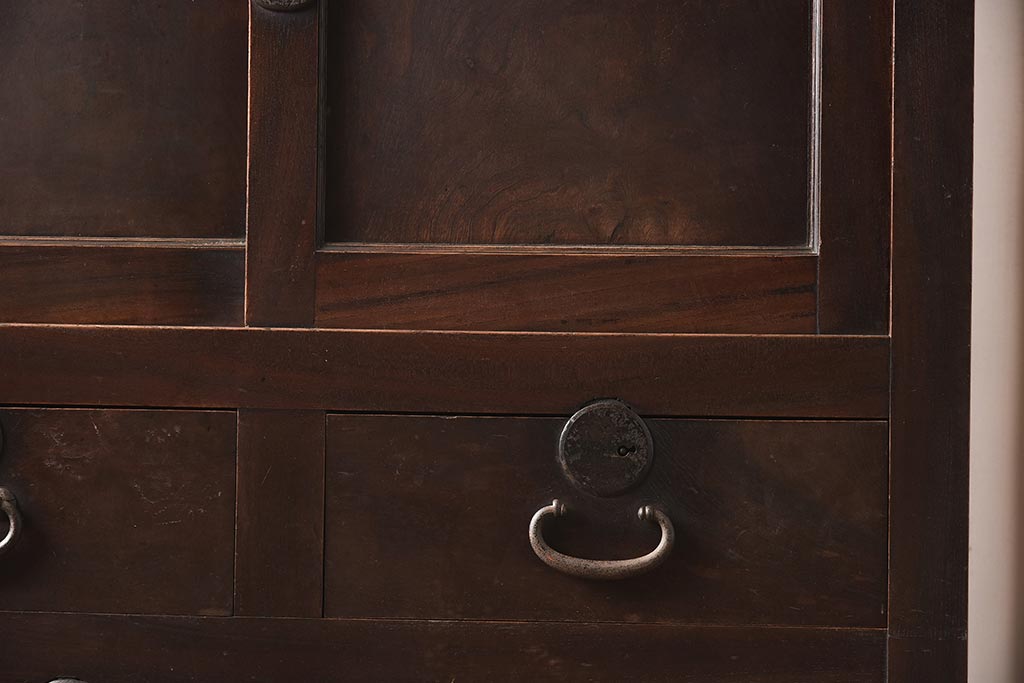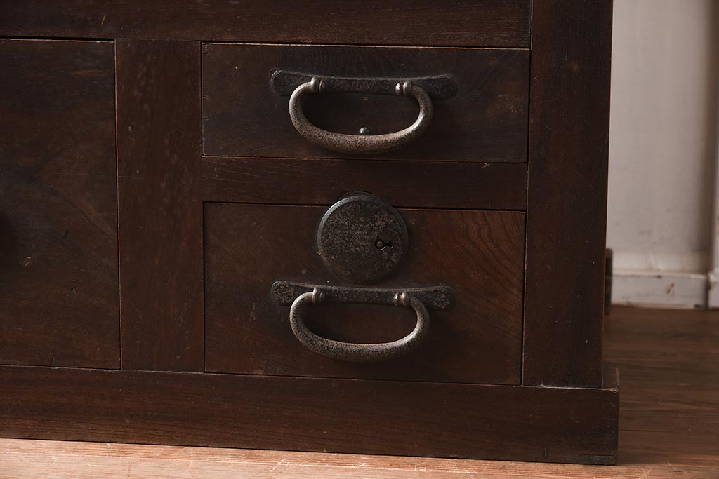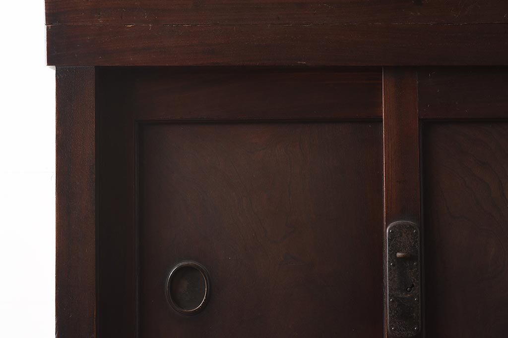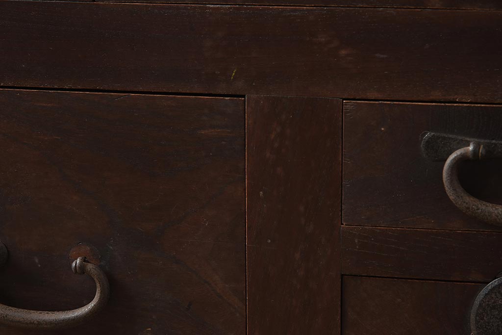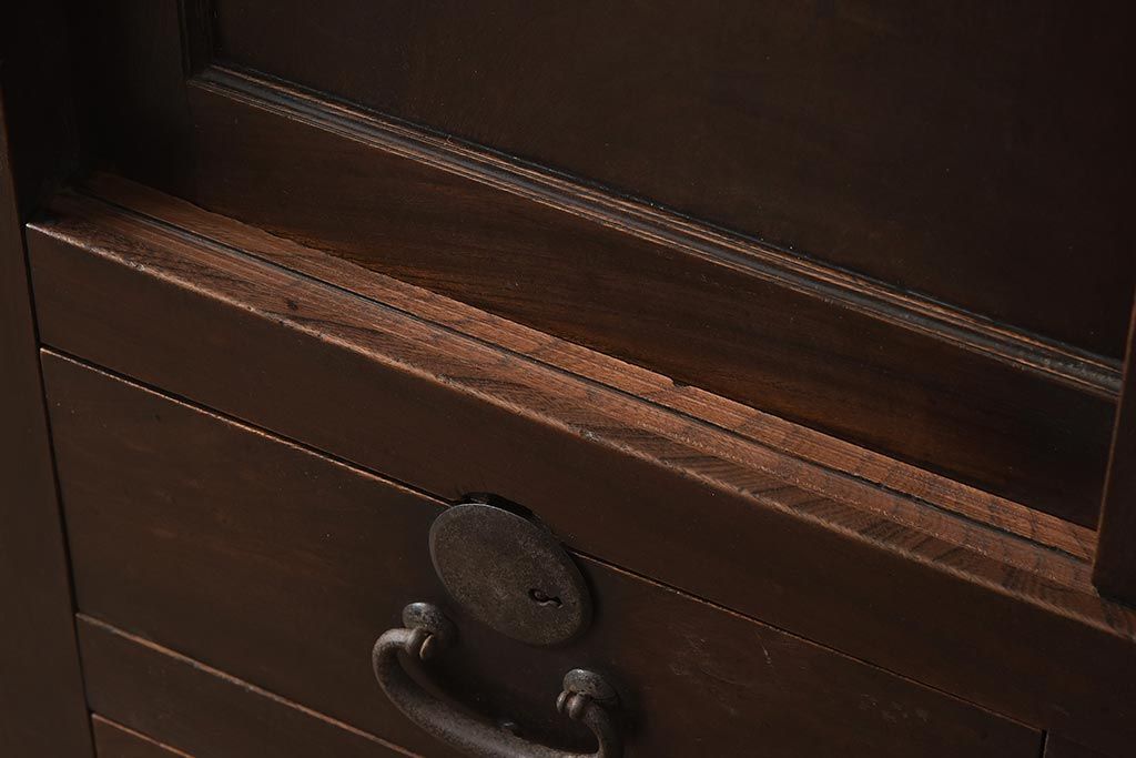和箪笥> 帳場箪笥 > アンティーク家具 和製アンティーク 明治大正期 前面ケヤキ材 極太框 上手物 凛とした存在感が溢れる重ね帳場箪笥(重ね箪笥、収納棚)(R-040625)