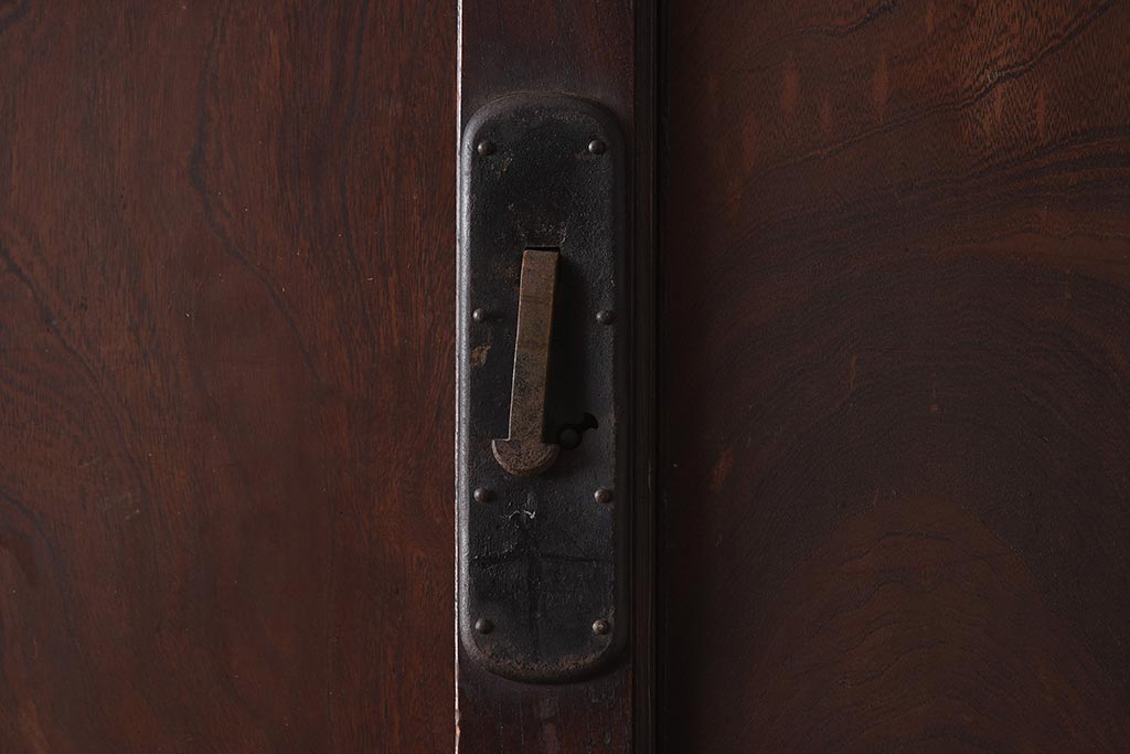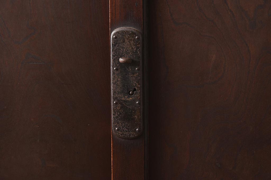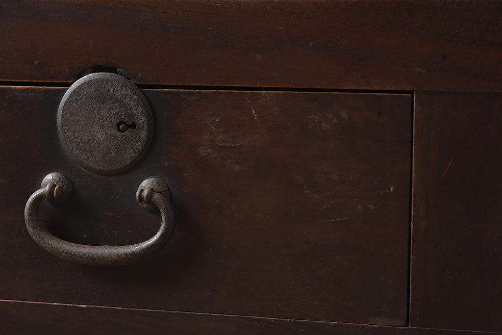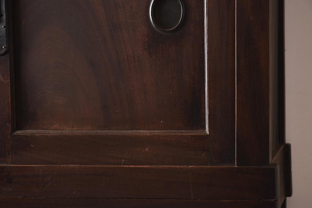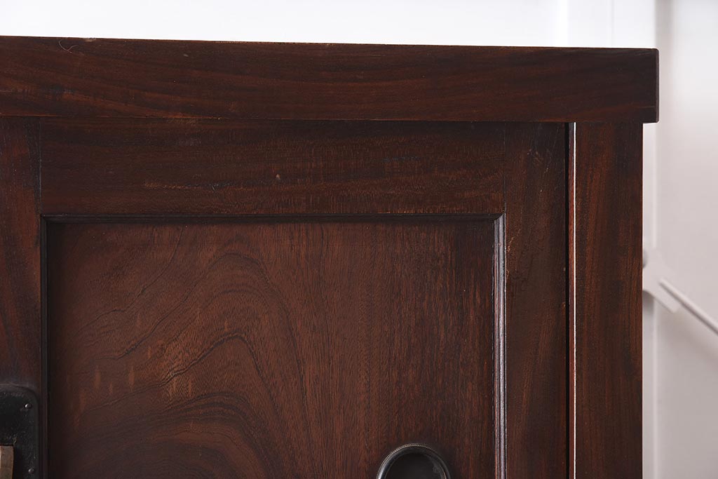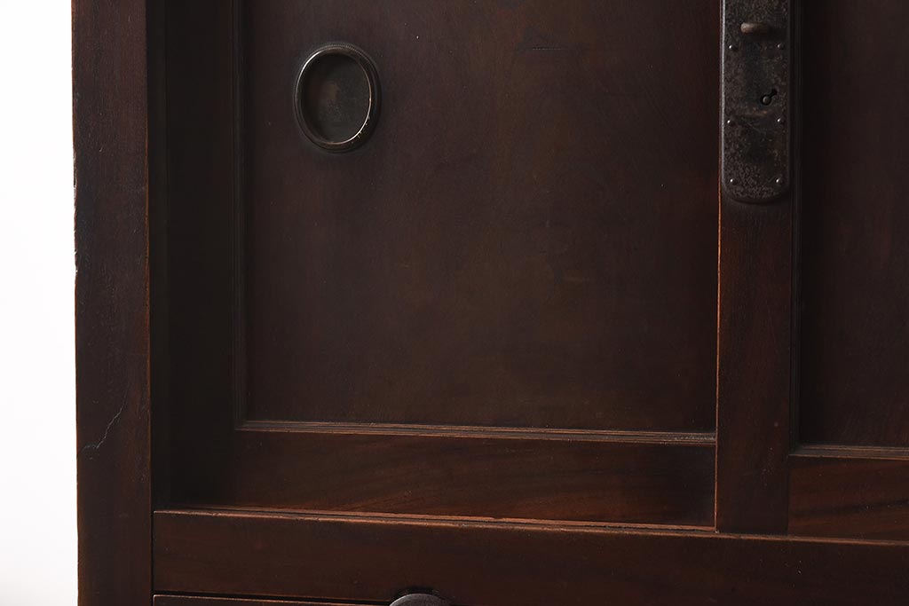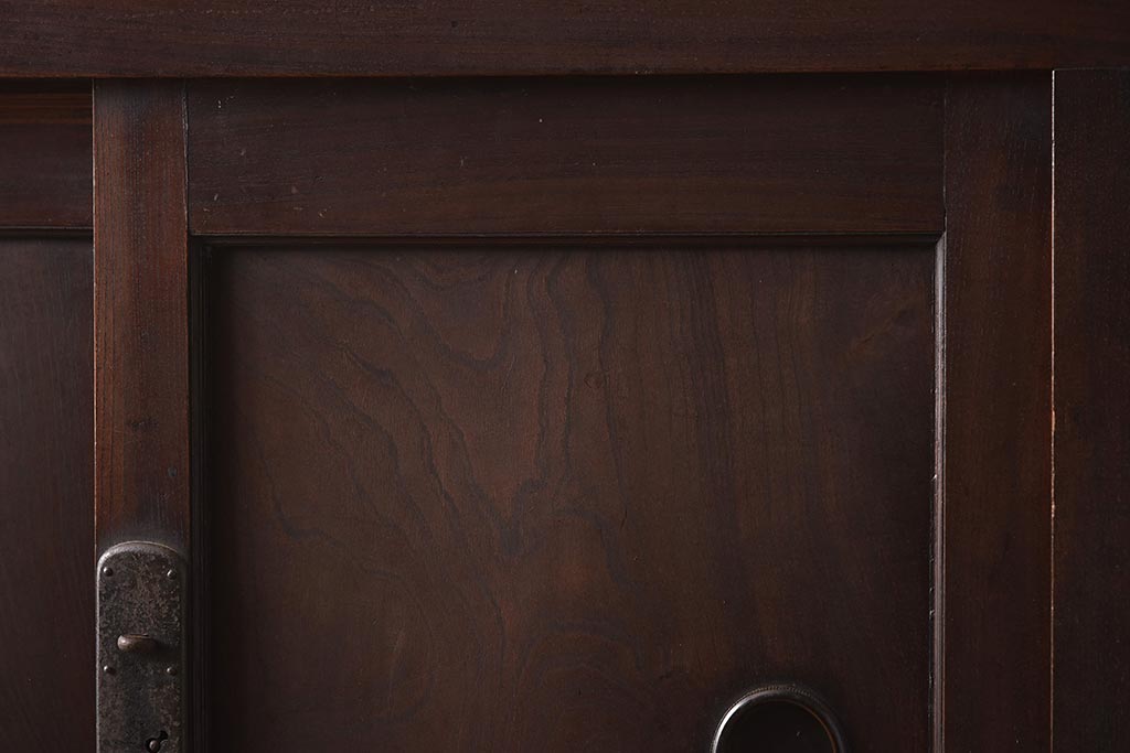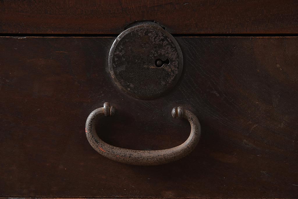 和箪笥> 帳場箪笥 > アンティーク家具 和製アンティーク 明治大正期 前面ケヤキ材 極太框 上手物 凛とした存在感が溢れる重ね帳場箪笥(重ね箪笥、収納棚)(R-040625)