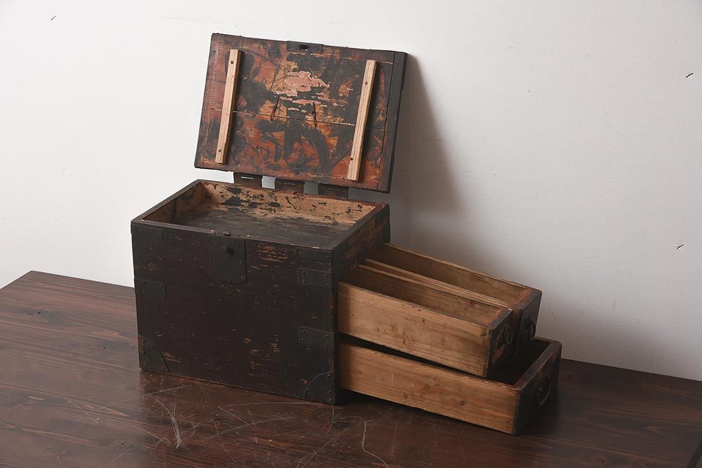 アンティーク家具 古民具 明治大正期 情緒あふれる硯箱(小引き出し)(R-040706)