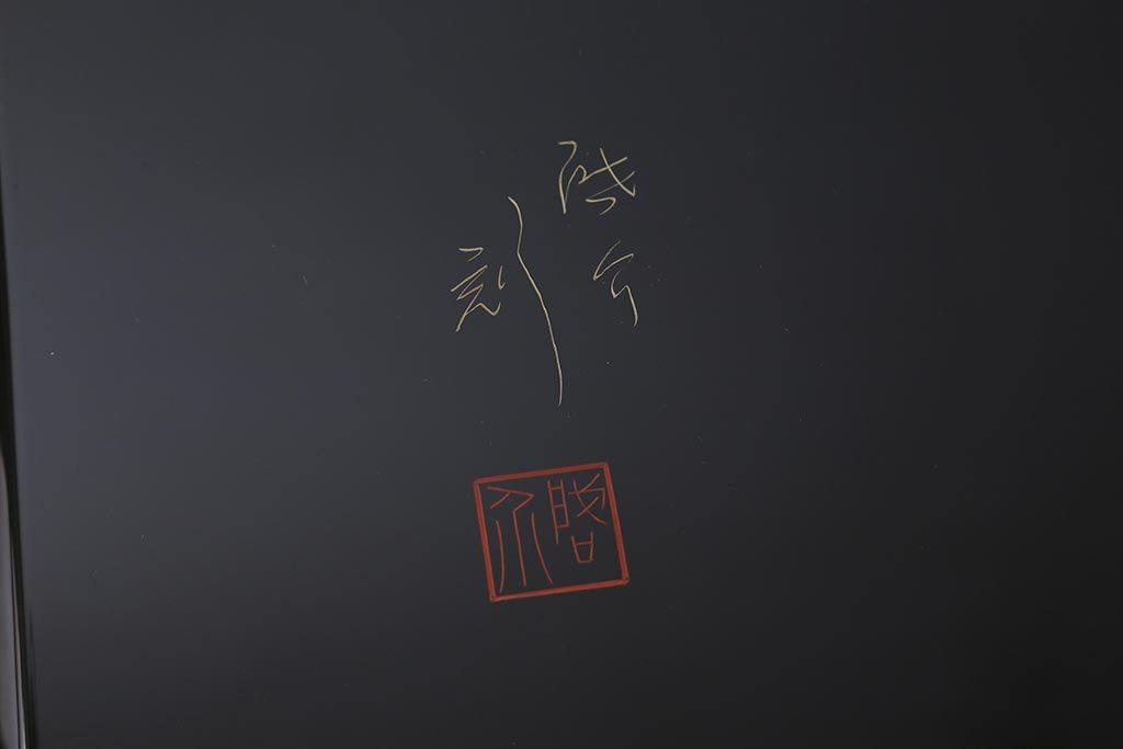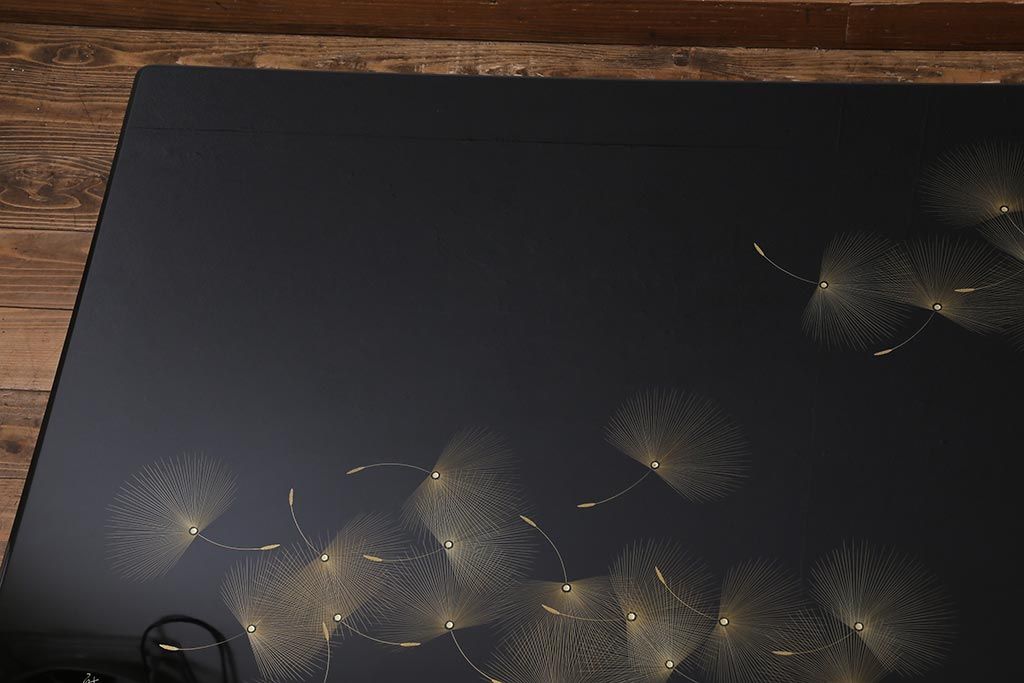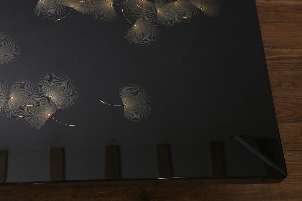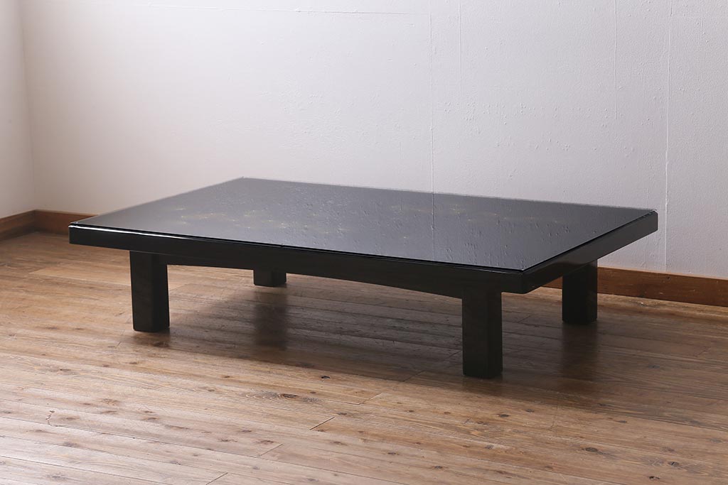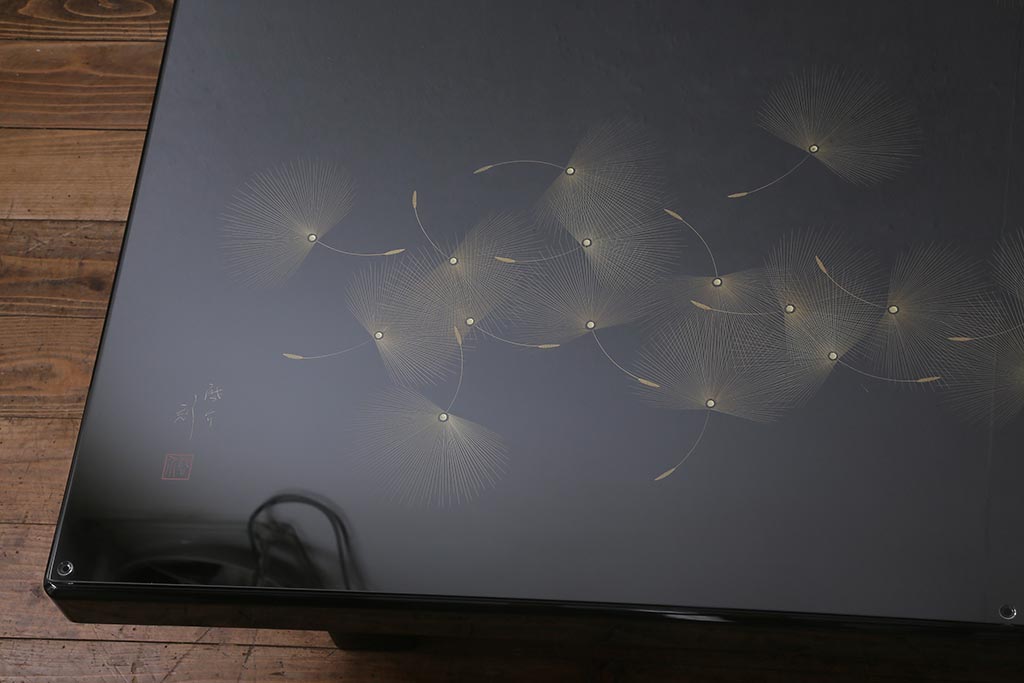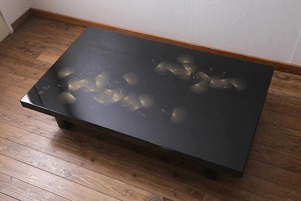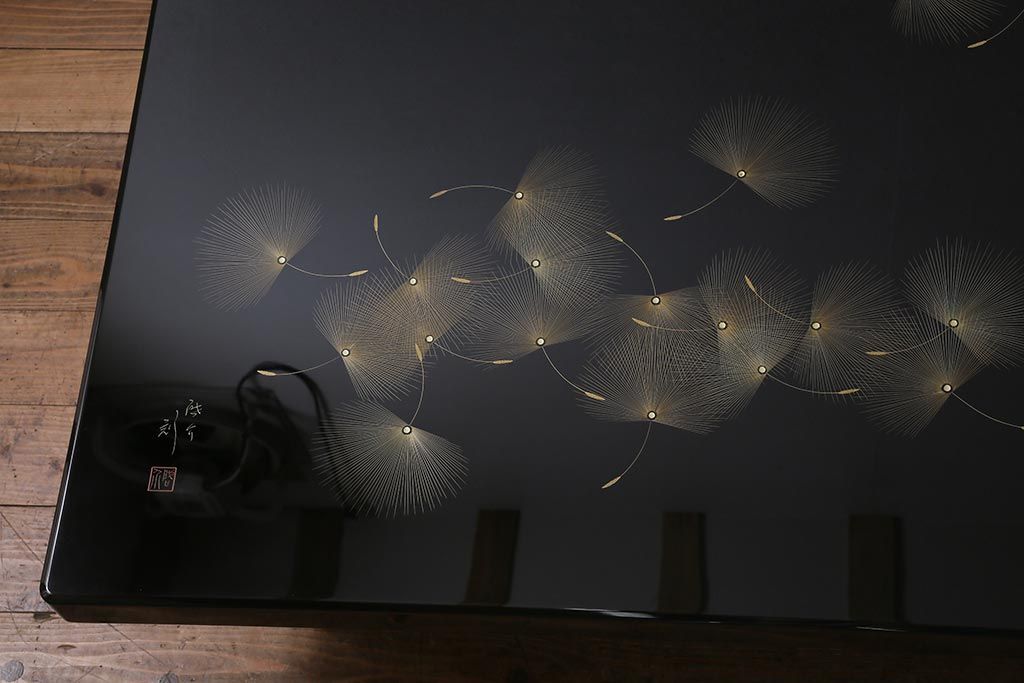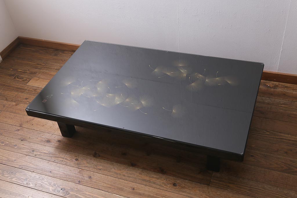 テーブル> 座卓 > 中古 輪島塗 小西啓介作 沈金 ふわふわと舞う種子が美しいガラス天板付きの座卓(定価約118万円)(ローテーブル)(R-040789)