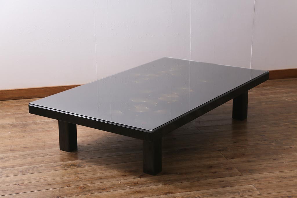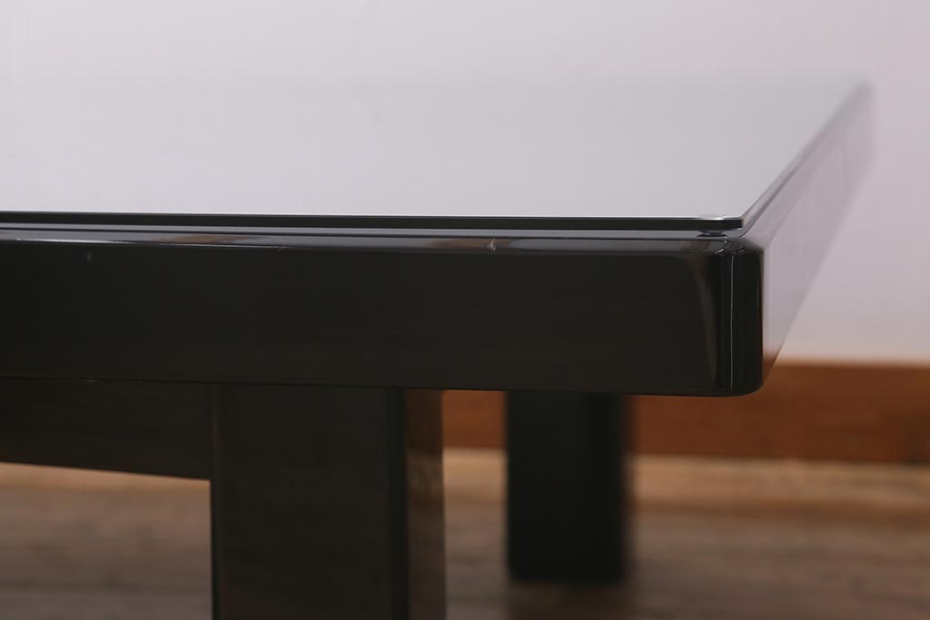中古 輪島塗 小西啓介作 沈金 ふわふわと舞う種子が美しいガラス天板付きの座卓(定価約118万円)(ローテーブル)(R-040789)です。