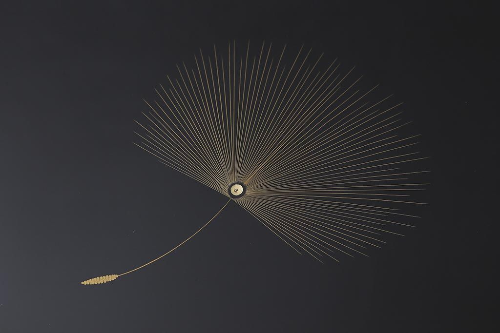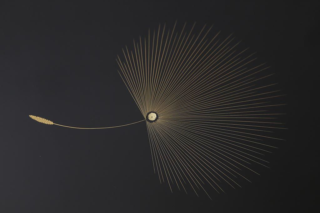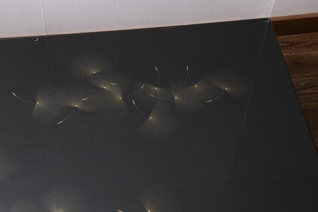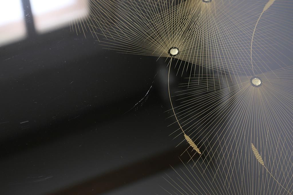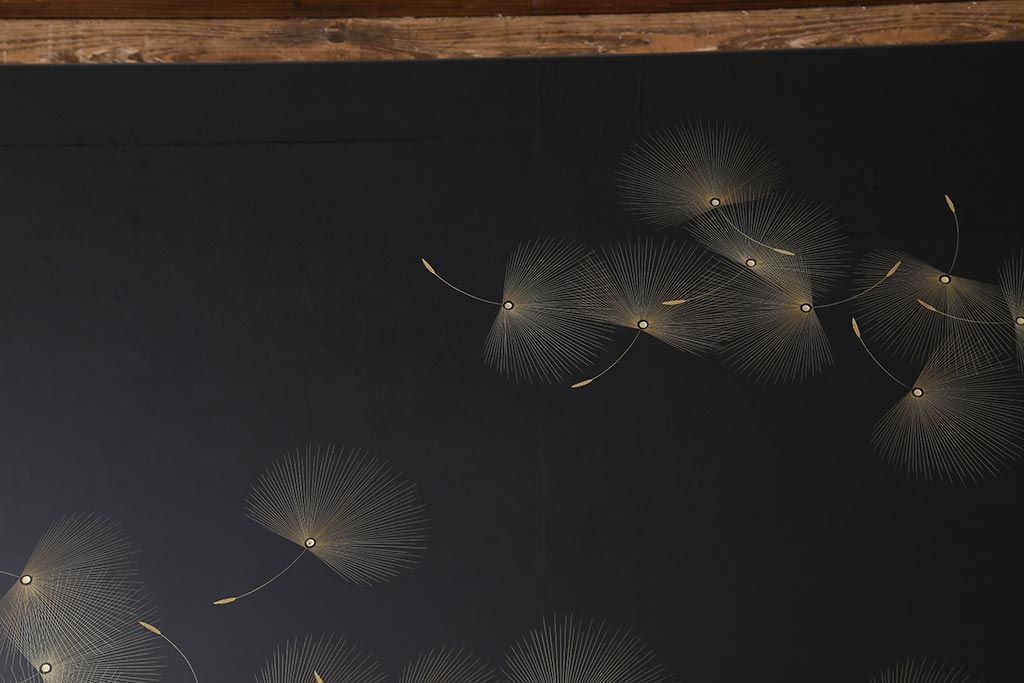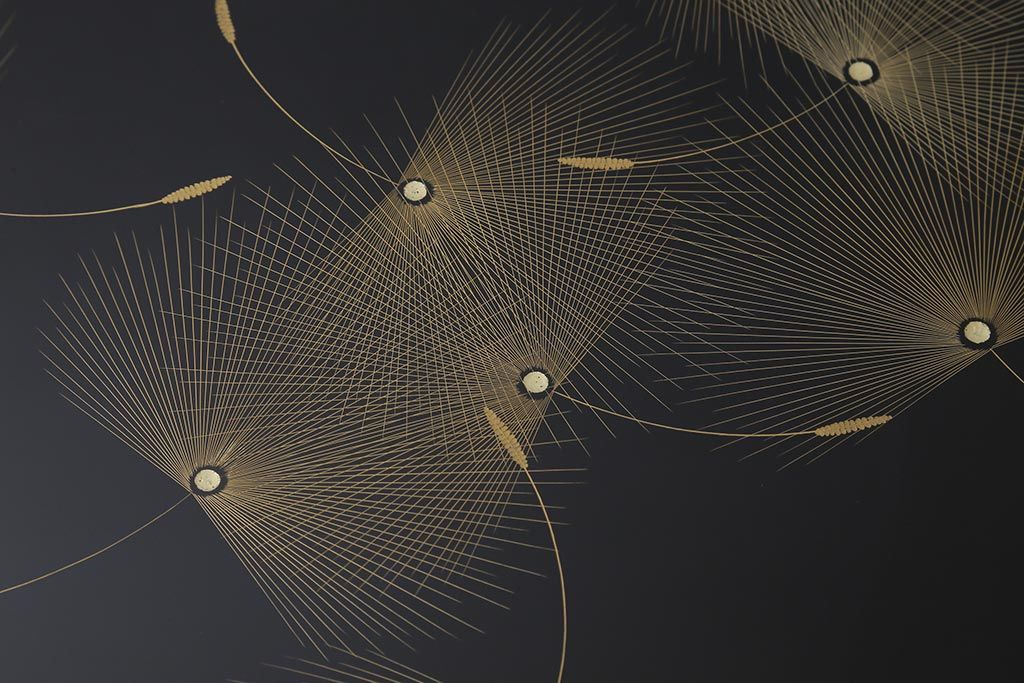 風に乗りふわふわと舞う様子を沈金で表現しています。