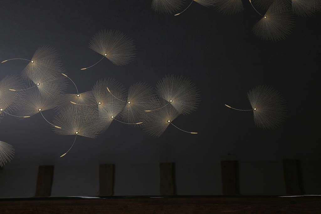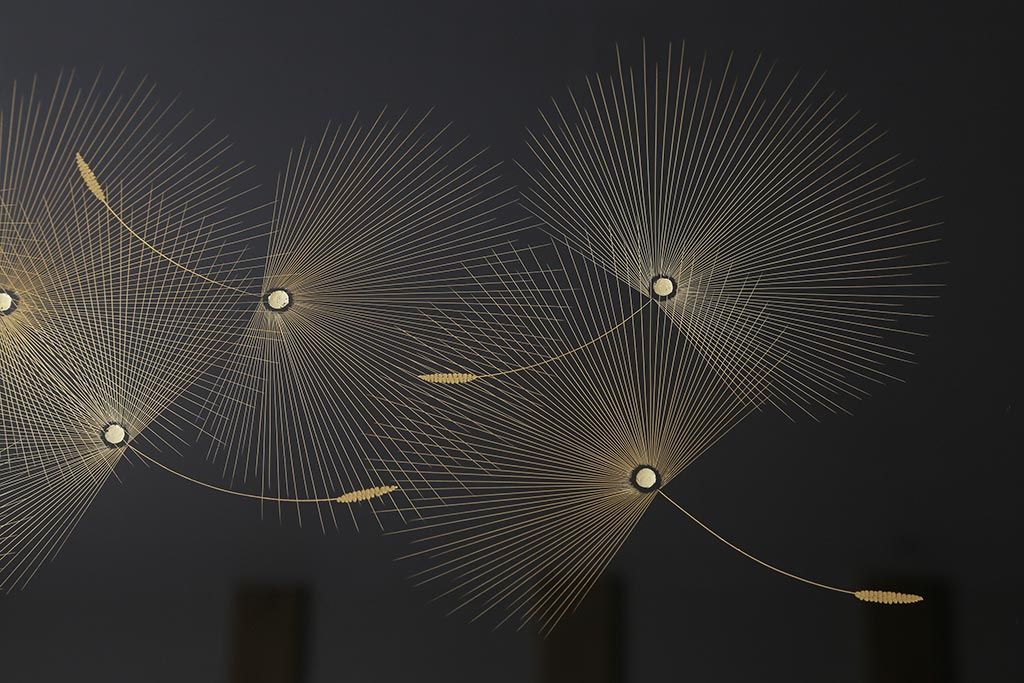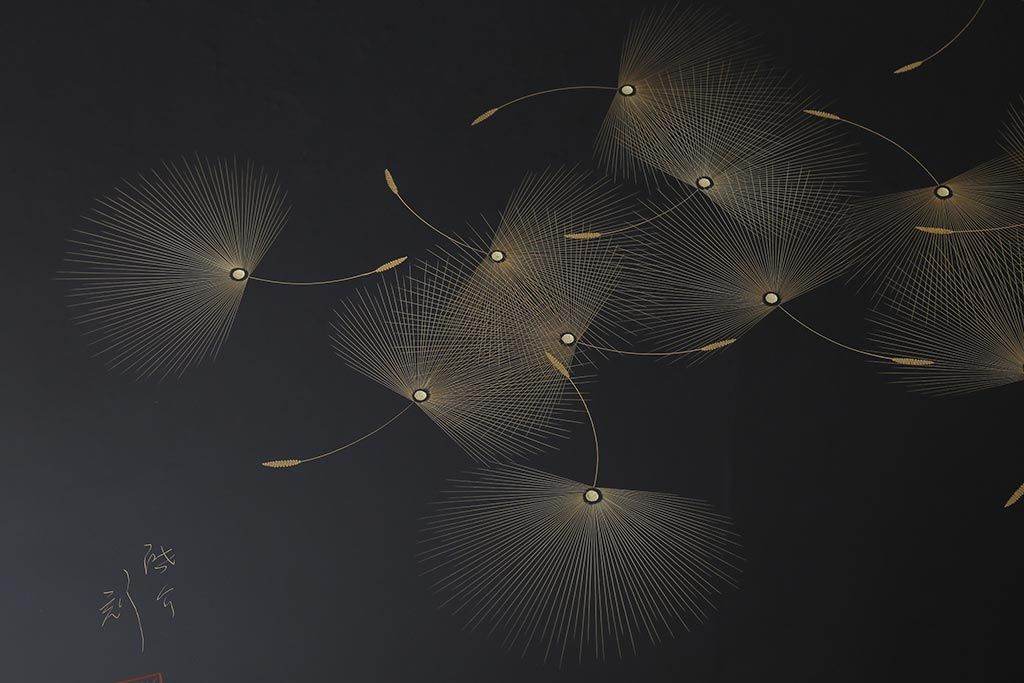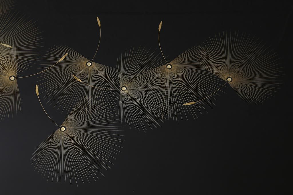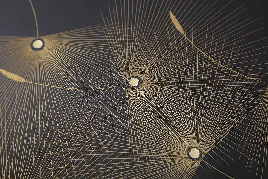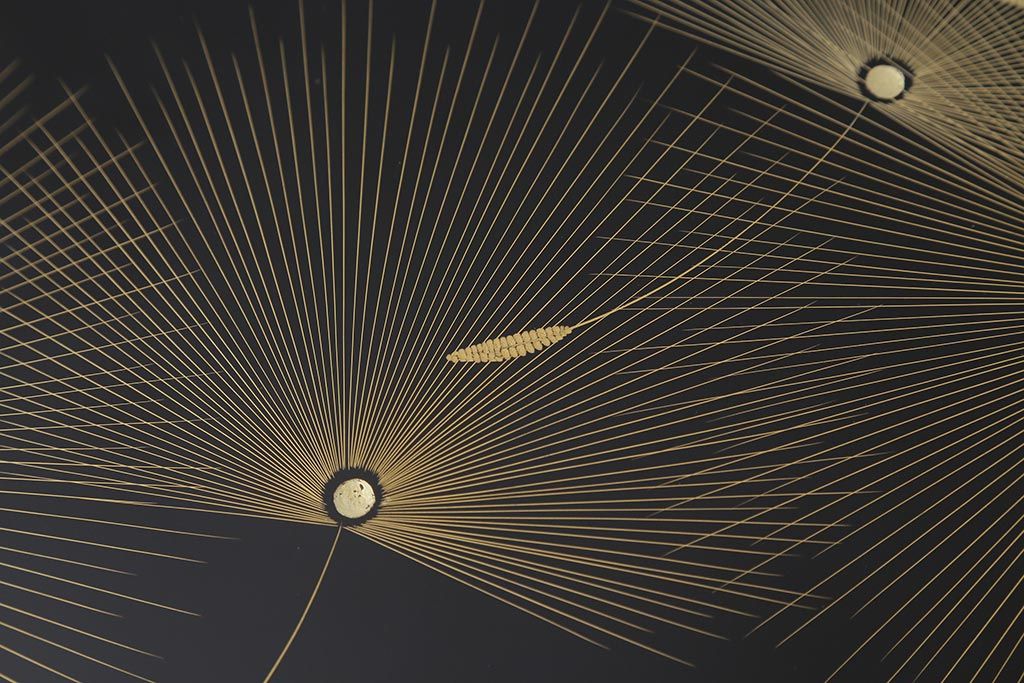 風に乗りふわふわと舞う様子を沈金で表現しています。