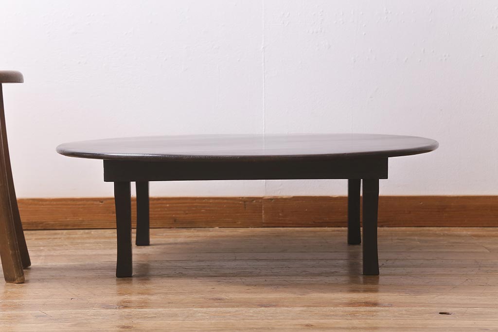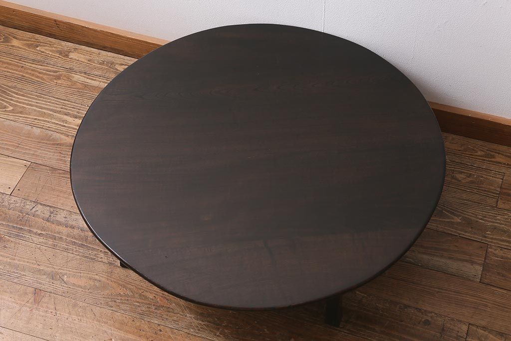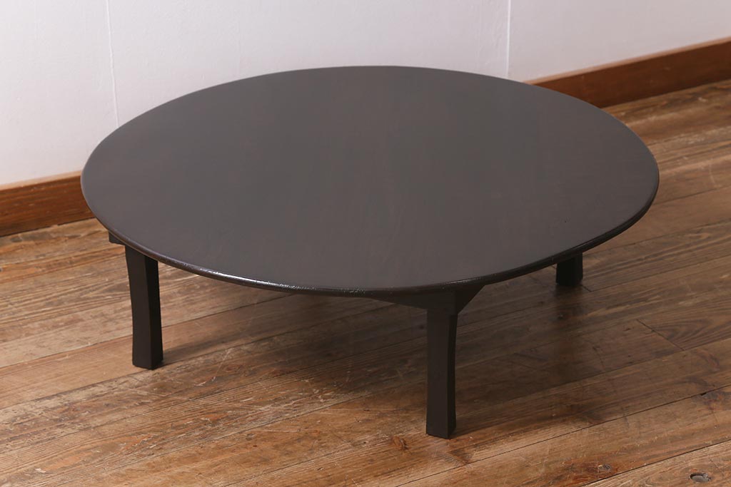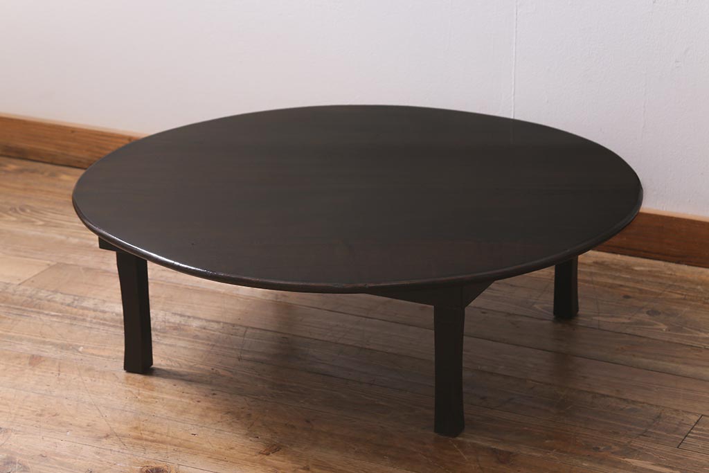 テーブル> ちゃぶ台 > レトロ家具 昭和中期 栓材 渋みのある色味が魅力の丸ちゃぶ台(折りたたみテーブル、座卓、ローテーブル)(R-040775)