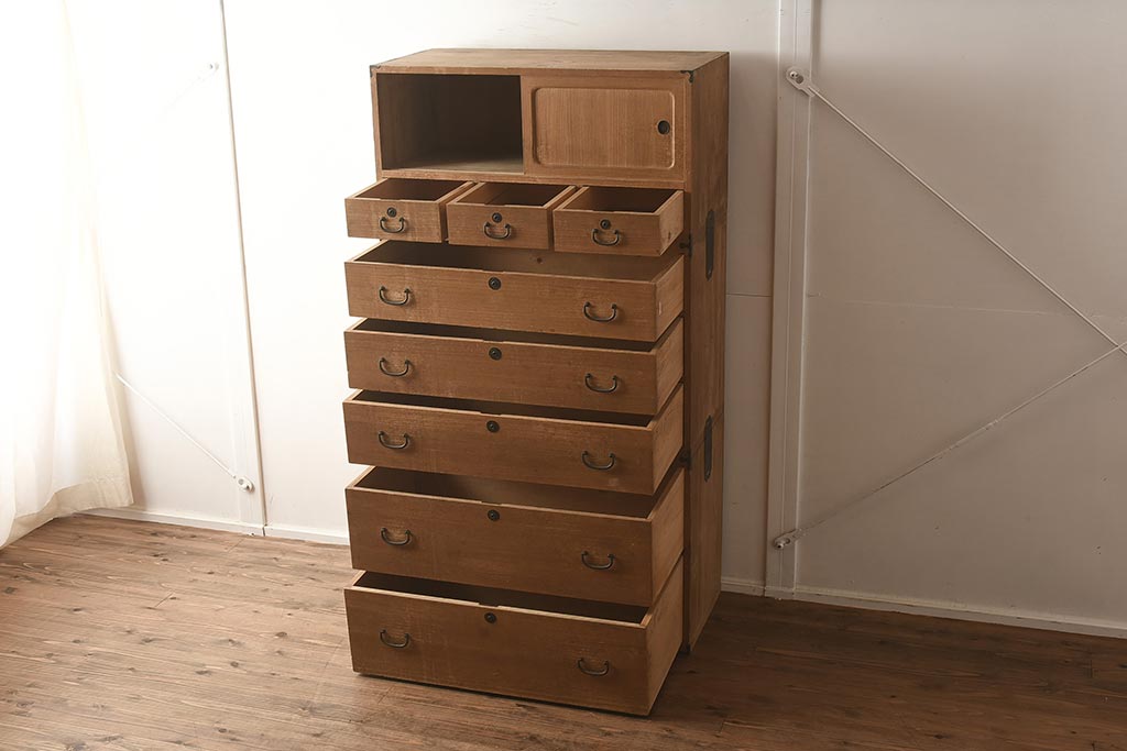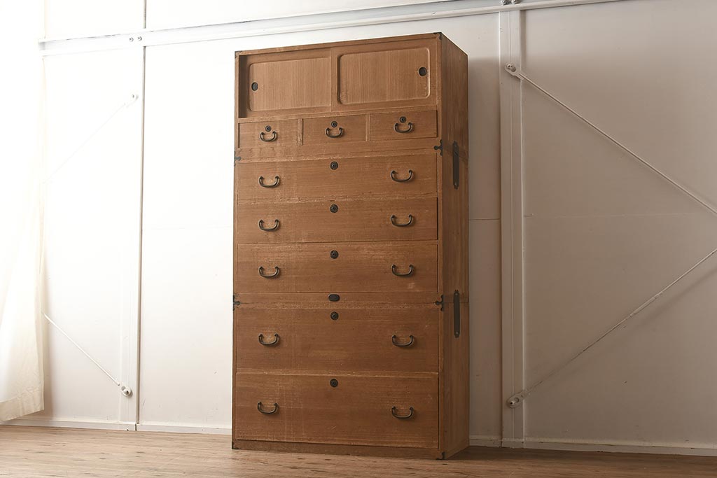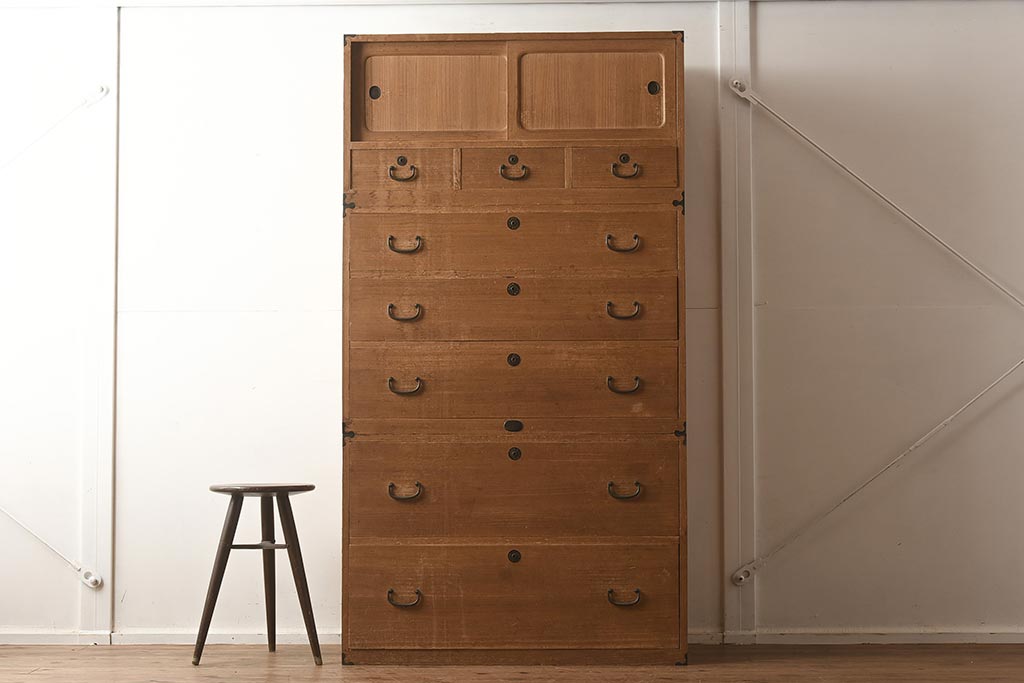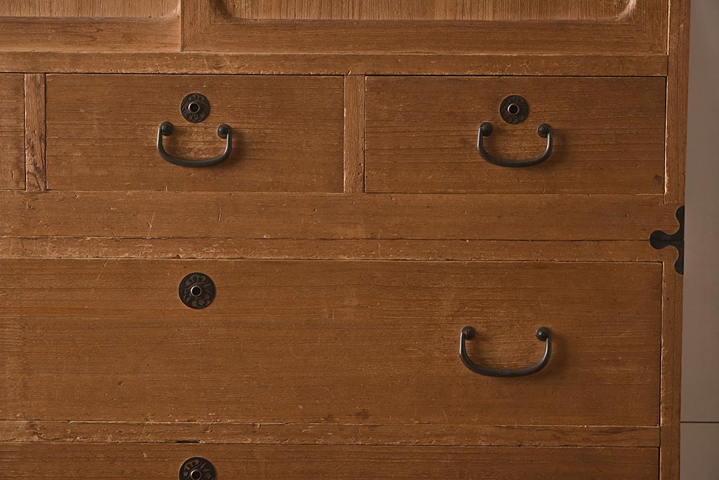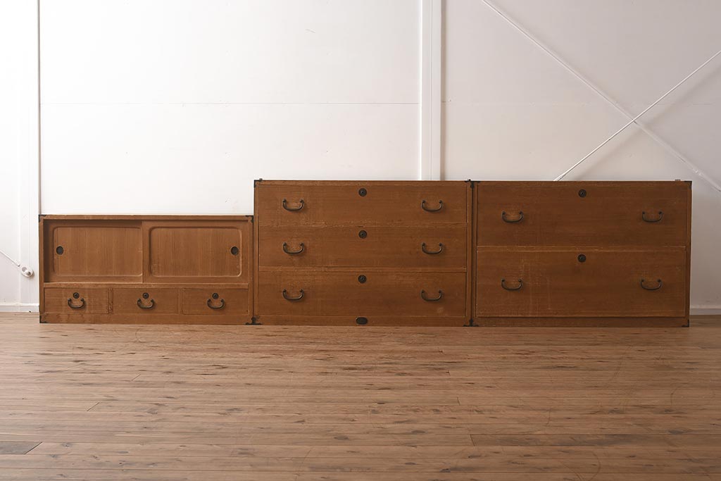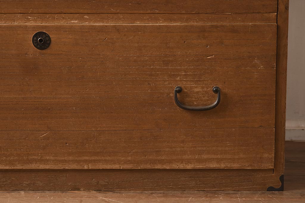 ラフジュ工房> 和箪笥 > レトロ家具 前面桐材 柔らかでレトロな雰囲気の三段重ね箪笥(和タンス、衣装箪笥、チェスト、桐箪笥、桐たんす)(R-040722)