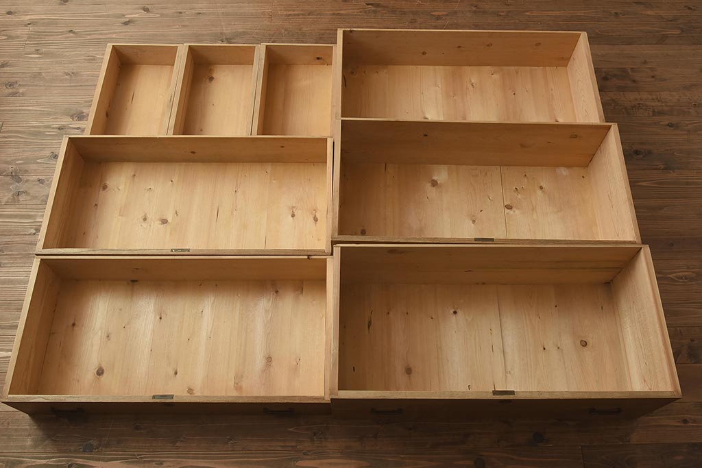 ラフジュ工房> 和箪笥> 衣装箪笥 > レトロ家具 前面桐材 柔らかでレトロな雰囲気の三段重ね箪笥(和タンス、衣装箪笥、チェスト、桐箪笥、桐たんす)(R-040722)
