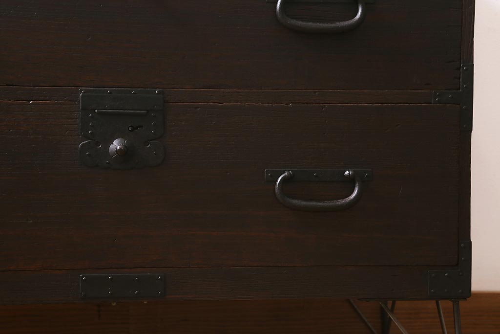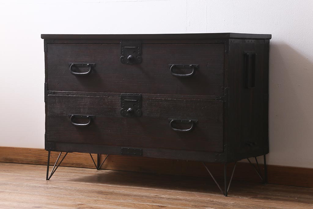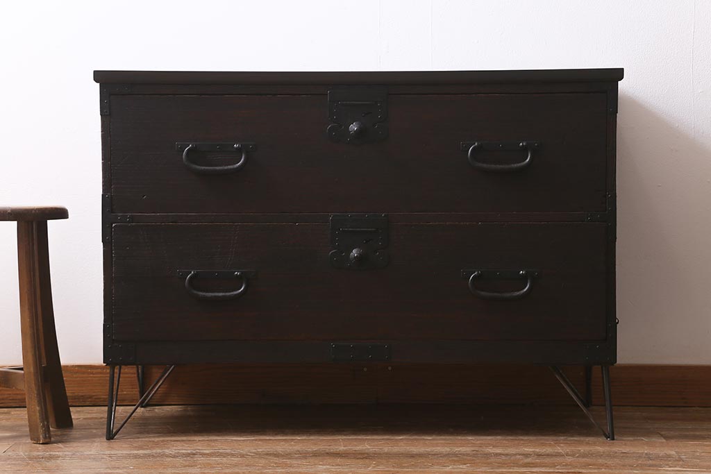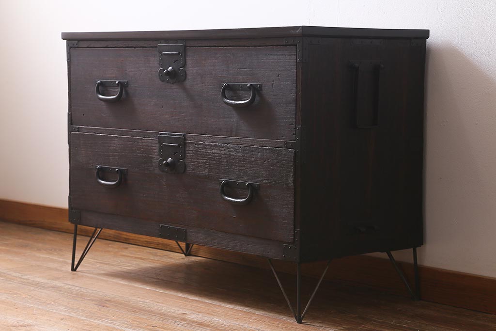 和箪笥> 衣装箪笥 > アンティーク家具 脚付きリメイク 味わい深い佇まいの箪笥ローボード(チェスト、引き出し、リビングボード、テレビ台)(R-040793)