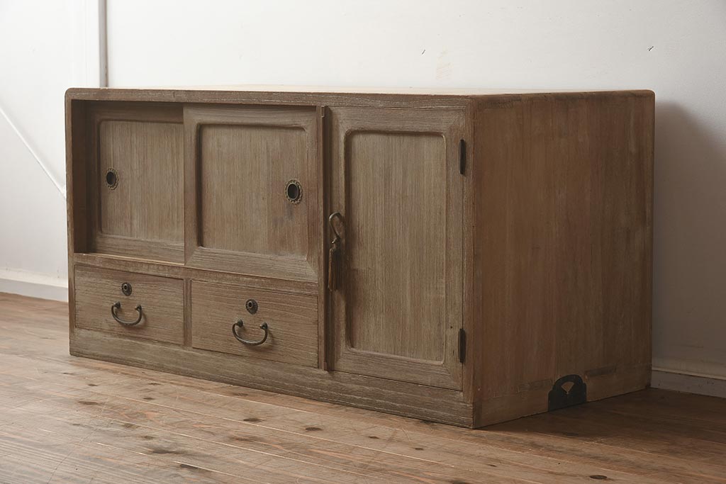 アンティーク家具 和製アンティーク 桐材 温かみのある木味の箪笥ローボード(戸棚、和タンス)(R-040720)