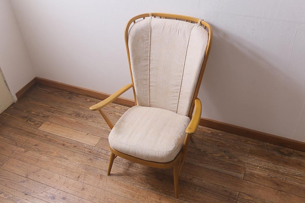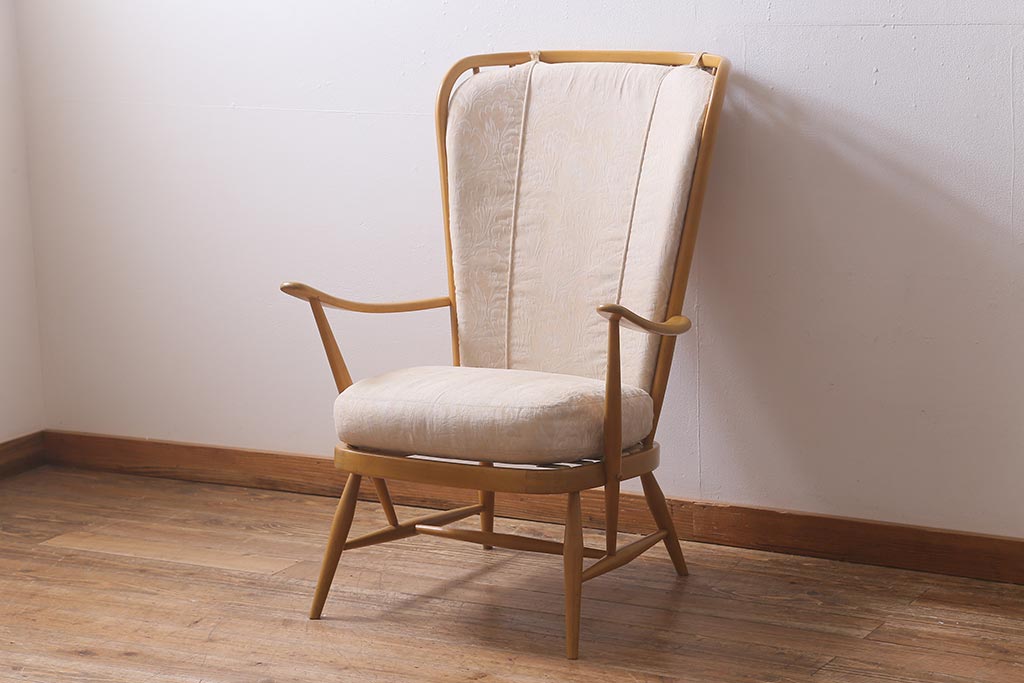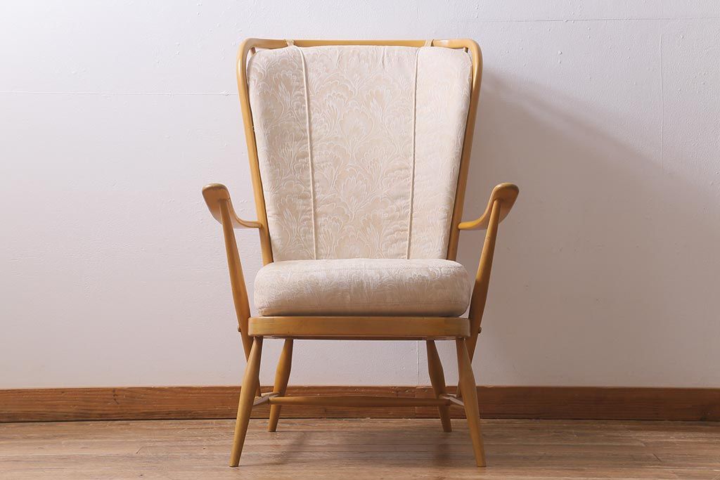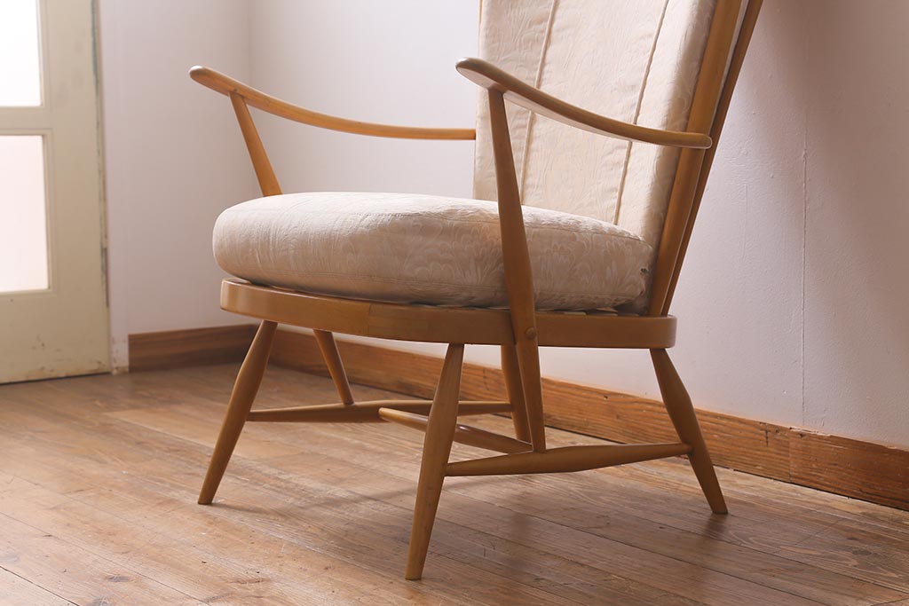 椅子・ベンチ> アームチェア > ヴィンテージ家具 ERCOL(アーコール) エバーグリーン 気品のある佇まいが魅力の1人掛けイージーチェア(ラウンジチェア、アームチェア、椅子、ソファ、ビンテージ)(R-040773)